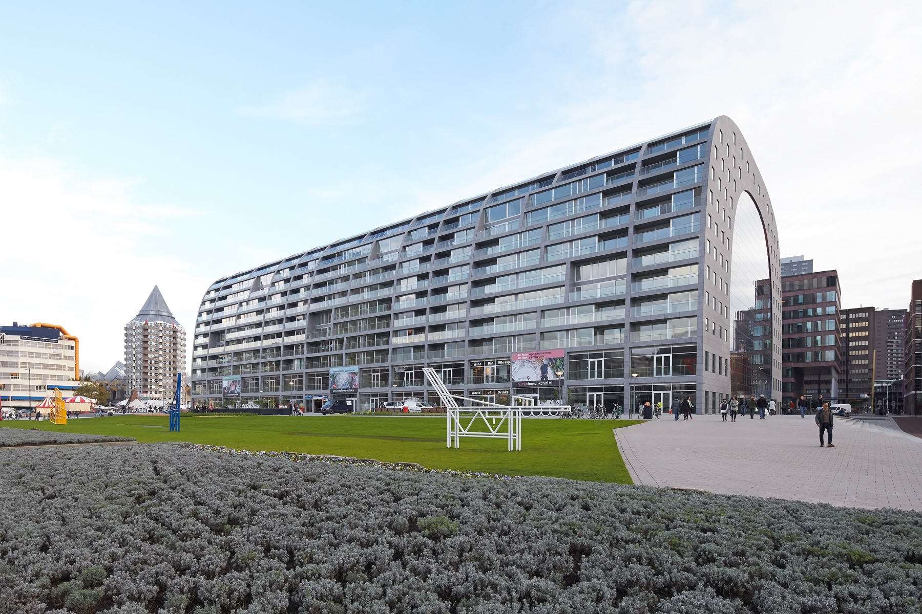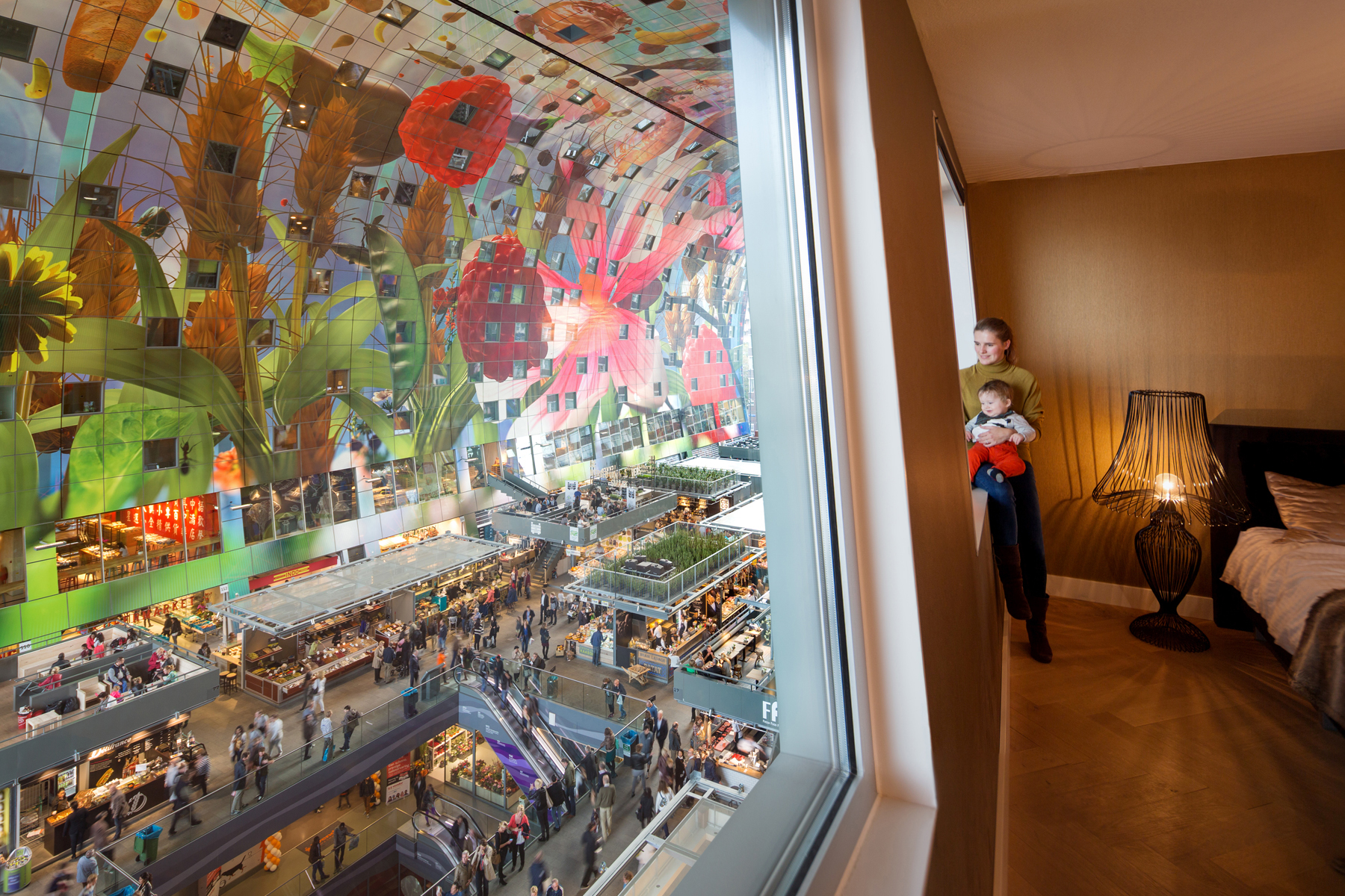 De Markthal bestaat uit een marktvloer met 96 kramen omringt door een boog met 228 appartementen en een ondergronds winkelcentrum en parkeergarage met 1200 plaatsen. De integratie van functies, de vorm en de kleurrijke binnenzijde maken de Markthal tot een bijzondere ervaring.