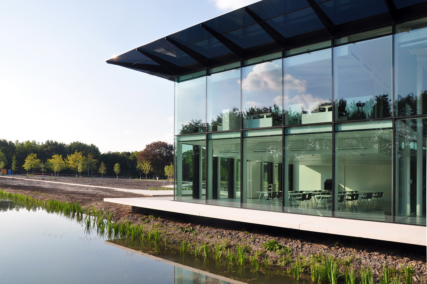 KWR Watercycle Research Institute ontwikkelt en ontsluit kennis over water(cycli) voor uiteenlopende organisaties. Het nieuwe onderkomen is ontworpen als transparant paviljoen in het groen, met een sterke interactie tussen binnen en buiten. Het gebouw met flexibele kantoor- en laboratoriumfuncties is daarnaast geheel gericht op kennisdeling.