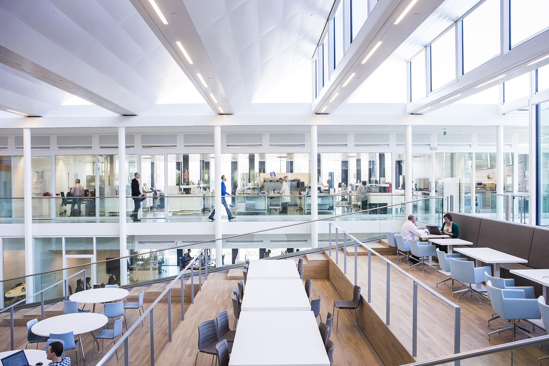Met Nederland als thuisbasis is KWR een hoogwaardig kennis- en onderzoeksinstituut met een Europese uitstraling. Hooggekwalificeerde wetenschappers werken er aan kennisintensieve projecten van aanzienlijk maatschappelijk belang. De voormalige huisvesting in een traditioneel cellenkantoor stond de ambities van de organisatie echter in de weg. Niet alleen was het vroegere gebouw functioneel en klimatologisch sterk verouderd, het was ook niet representatief meer én belemmerde nieuwe manieren van werken meer gericht op interactie, samenwerking en kennisdeling tussen de diverse expertgroepen. Uitgangspunten voor de nieuwbouw zijn van meet af aan vastgelegd in de planvorming; het nieuwe gebouw moest niet alleen functioneel en qua verblijfsklimaat een aangename, prettige werkomgeving voor de KWR-staf zijn. Ook moest het een atmosfeer van creativiteit, innovatie, dynamiek, kruisbestuiving en synergie ademen. De opzet en uitwerking van de nieuwe KWR-huisvesting beantwoorden volledig aan die doelen. Het gebouw kent een efficiënte en heldere structuur met kantoren en laboratoria die door doordachte oplossingen gemakkelijk in elkaar te veranderen en dus in een veelheid van configuraties te ordenen en organiseren zijn. De openheid en hoge mate van transparantie dragen bij aan een sterke relatie tussen de uiteenlopende plekken en functies in het gebouw, alsmede aan een sterke verbondenheid met de groene omgeving. Ook zorgen zij voor een hoge mate van daglichtontvangst. De getrapte en daglichtovergoten atriumvloer in het hart van het gebouw vormt een vanzelfsprekende plek voor samenkomst. Om te werken en overleggen, maar ook voor bijvoorbeeld ontspanning, lunch, bijzondere gelegenheden of de ontvangst van gasten. Meer nog dan gedacht en gehoopt is de ruimte veelvuldig in gebruik en draagt zij belangrijk bij aan de algehele ambiance van interactie, samenwerking en sociale cohesie. Het nieuwe KWR kent daarnaast tal van innovatieve maatregelen en ontwerpoplossingen die deels direct aansluiten op het vlak van water, watertechnologie en ecologie en het gebouw op die manier tevens tot showcase voor zijn gebruiker maken. Zo loopt langs weerszijden van de getrapte atriumvloer een waterbaan die bijdraagt aan zowel het KWR-imago als een goede vochthuishouding binnen het gebouw. Inmiddels ruim een jaar in gebruik is de productiviteit van KWR meetbaar sterk gestegen. Het gebouw past dan ook met recht in de categorie ‘stimulating environments’.