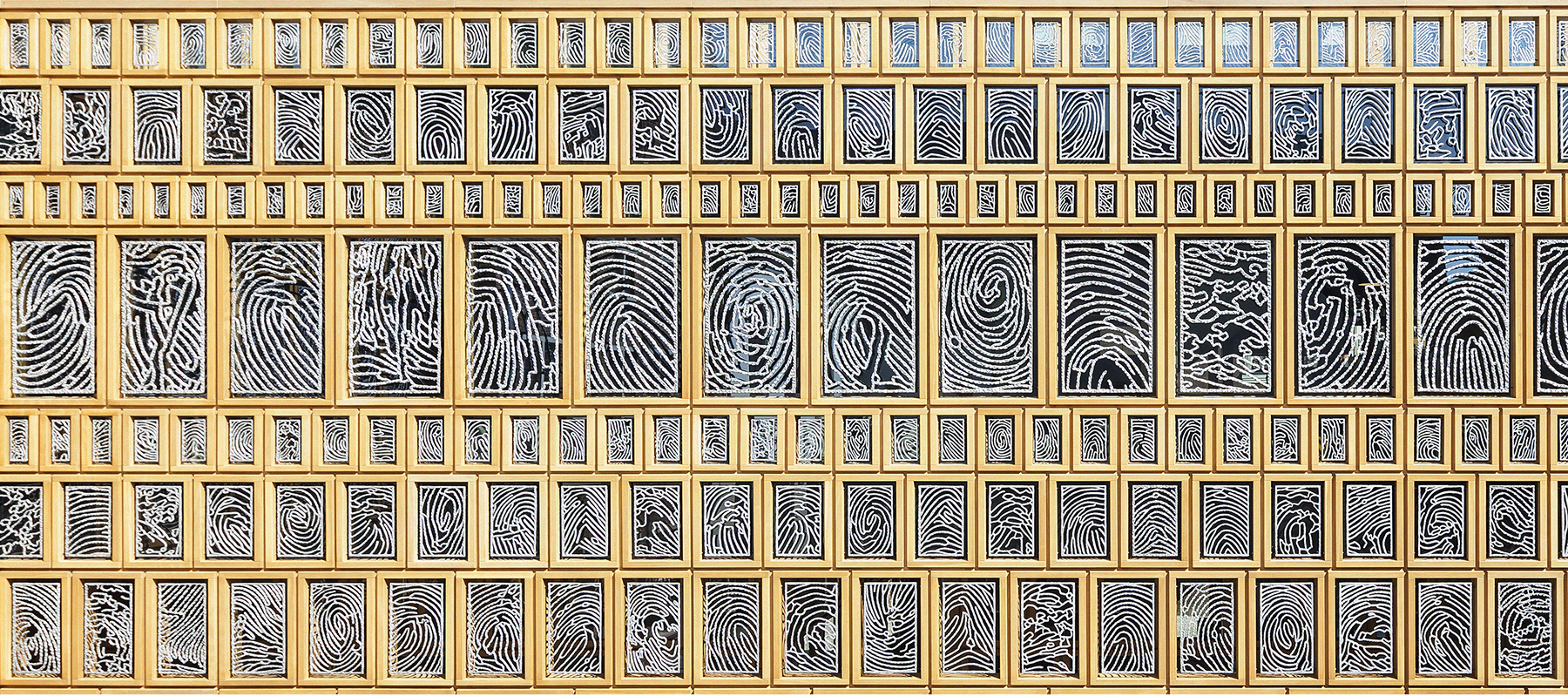 HEDENDAAGSE INPASSING IN HISTORISCHE OMGEVING Het ontwerp voor het stadhuiskwartier sluit aan bij de typische Deventer stedenbouwkundige structuur van tuinen en binnenpleinen die met elkaar verbonden zijn door paden, steegjes, gangen en poorten. Het gebouw is georganiseerd rond twee nieuw ontworpen hoven; een open hof rond het voormalige burgemeestershuis en een overdekt binnenhof, de centrale hal, waar inwoners, bezoekers en medewerkers van de gemeente elkaar kunnen ontmoeten. Op de begane grond loopt vanaf de Grote Kerkhof, één nieuwe doorgaande route, via de Burgemeestershof en de centrale hal naar het Burseplein, en vandaar naar de Brink. Haaks hierop ligt een tweede looproute die de binnenstad aansluit op de straatjes en steegjes naar de IJssel. Beide routes zijn publiek toegankelijk. De bezoekers en gebruikers van het Stadhuiskwartier brengen levendigheid terug naar een verlaten stukje binnenstad. GEVELS MET KUNST GEVEN IDENTITEIT AAN GEBOUW EN STAD In de gevels van het stadhuiskwartier wisselen gesloten baksteen delen en open filigrein houten delen elkaar af. De filigrein gevels bestaan uit een raster van eikenhouten kaders van verschillende afmetingen. Het eiken raamwerk biedt ruimte aan een geïntegreerde toepassing van kunst in de architectuur. In samenwerking met de kunstenares Loes ten Anscher zijn voor de eiken kaders een reeks van roosters ontworpen: 2.264 unieke vingerafdrukken van 2.264 Deventenaren zijn in aluminium gegoten. Verspreid over de buiten- en binnengevels van het gebouw vormen zij samen één groot kunstwerk. De zichtbare aanwezigheid van de Deventenaren in de gevel maakt het stadhuiskwartier tot het ‘Huis van de Burgers’. Met zijn iconische facade heeft het nieuwe gebouw de identiteit van Deventer opnieuw vormgegeven en de stad versterkt op de kaart gezet. MATERIAAL EN DETAILLERING Het stadhuiskwartier omvat publieke en besloten ruimtes die elk hun eigen materialisatie en detaillering hebben. Het gebouw presenteert het zich als een hedendaags palazzo met een klassiek gecomponeerde gevel. De publieke ruimtes hebben robuuste en solide materialen en details. De natuurstenen vloer leidt de bezoeker vanaf de verschillende hoofd- en zijingangen naar alle publieke gebieden zoals de centrale hal en burgermeestershof. De eiken filigrein gevel met aluminium vingerafdrukken is vanaf de straat doorgezet naar het interieur rondom de hof en centrale hal. Alle collonades leiden naar dit overdekte stadsplein toe: Deventers eigen Forum
