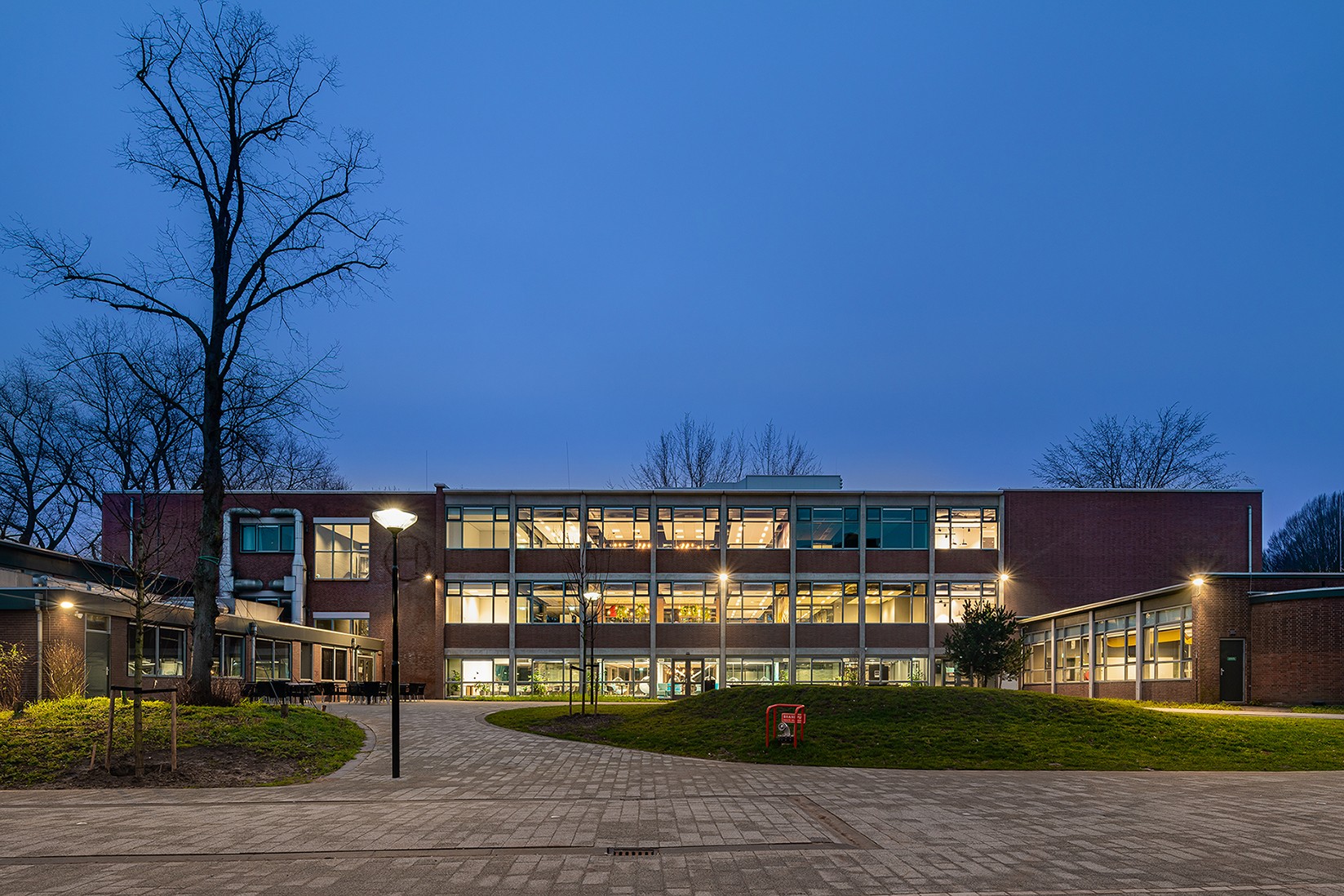 De drie gebouwen gaven we dezelfde kwaliteit, met veel openheid en transparantie.