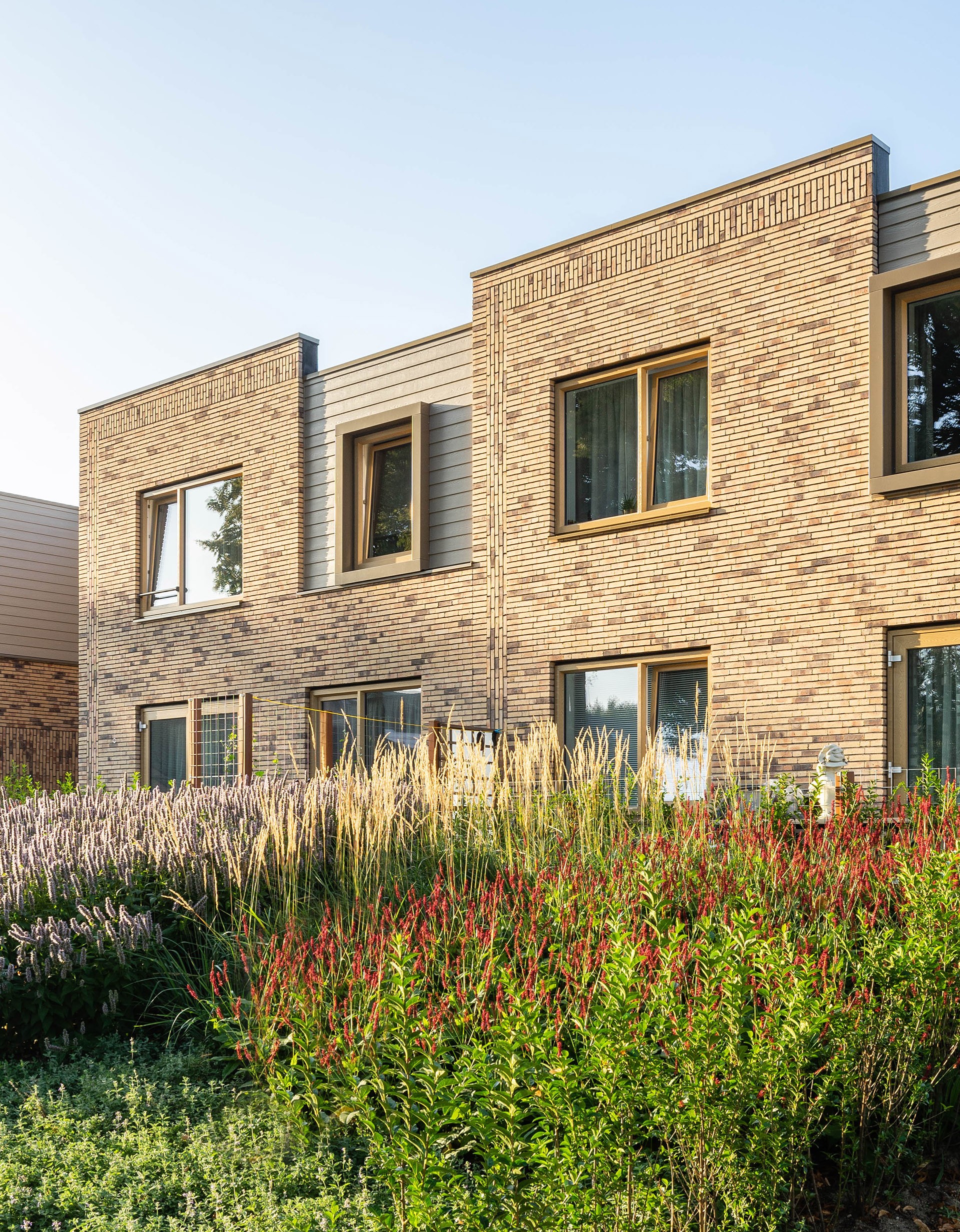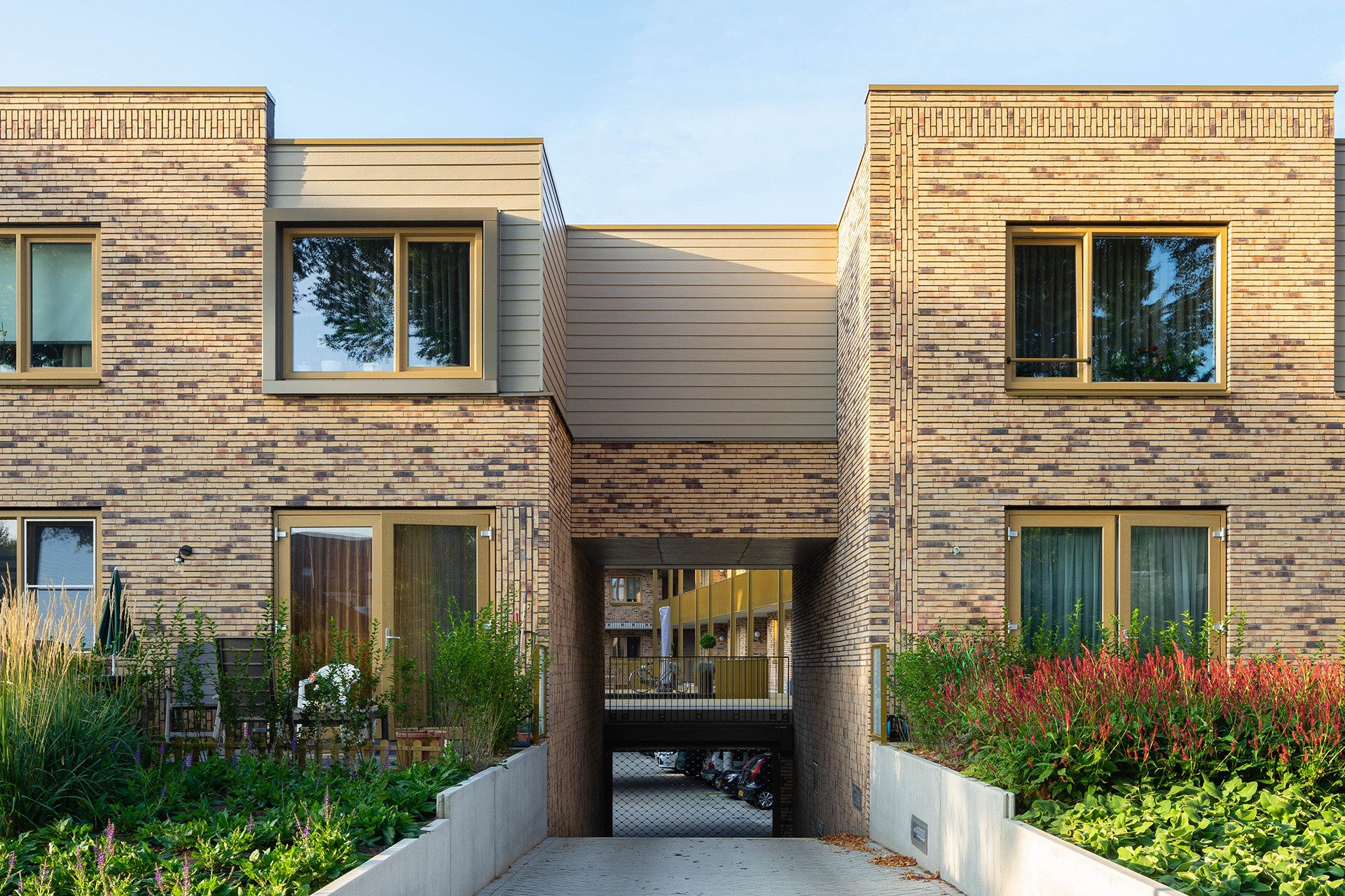 De gevels aan de buitenzijde van het complex zijn pandsgewijs opgebouwd en ingesnoerd, zodat een mooie vriendelijke ritmering ontstaat. Er zijn drie kleuren metselwerk toegepast, van donkerrood, naar terra, naar beige. Op de koppen zijn nestkasten voor zwaluwen en vleermuizen toegepast. Aan de binnenzijde is het lichte beige metselwerk doorgezet en wordt een groene woonsfeer gecreëerd door ruime dekken en galerijen met frames, waarlangs het groen vanuit het souterrain omhoog kan groeien. Hier is ruimte voor de bewoners om elkaar informeel te ontmoeten.