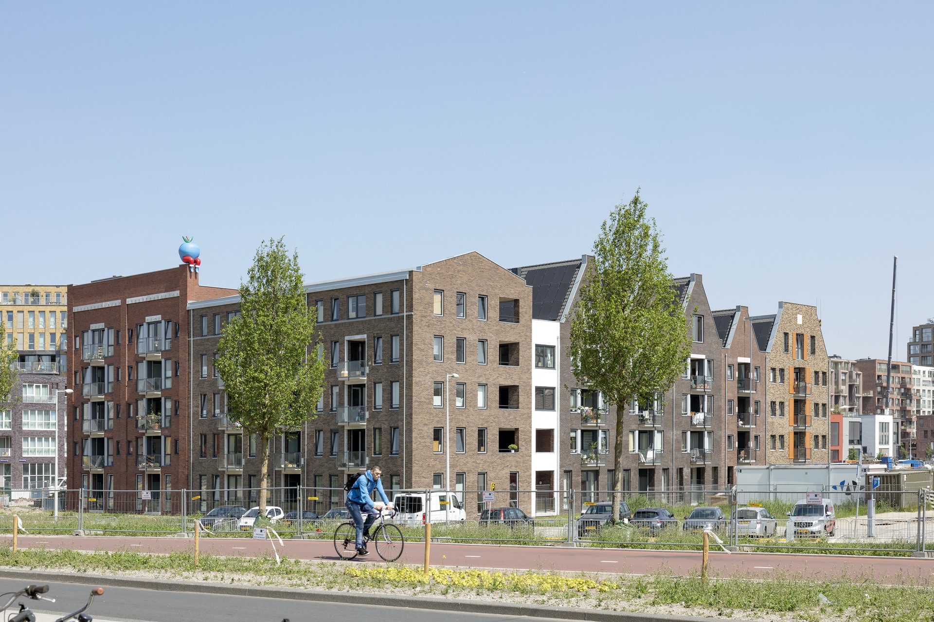 Dit project betreft een sociaal-woningbouwblok op de dure Houthavenlocatie in Amsterdam. Doordat het programma in een compact volume is gerealiseerd, veel kleiner dan de footprint in voorgeschreven in het stedebouwkundig plan, is een openbaar pleintje gecreëerd, een cadeau voor de Houthavens met zijn hoge dichtheid. Tegelijkertijd is het woningbouw