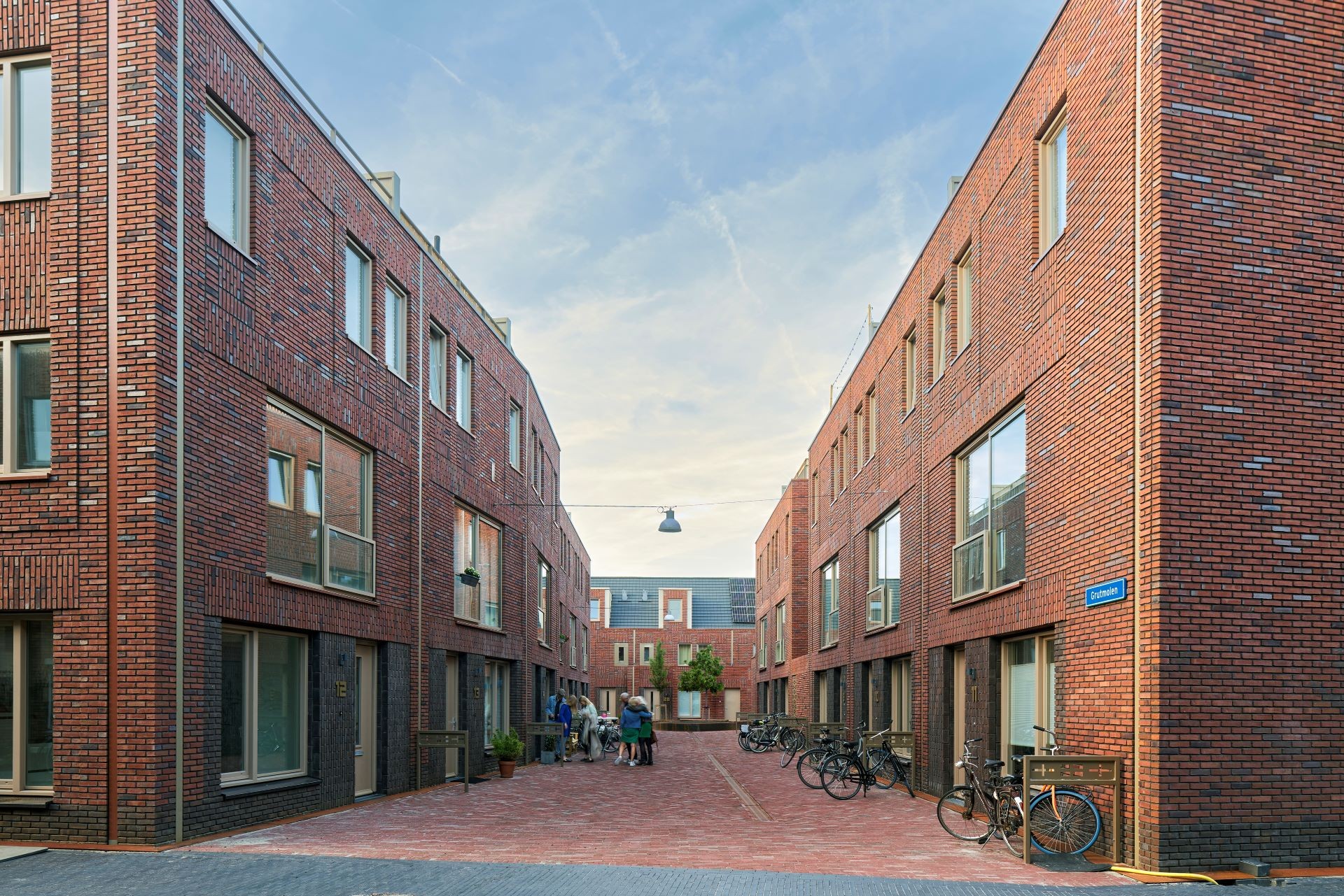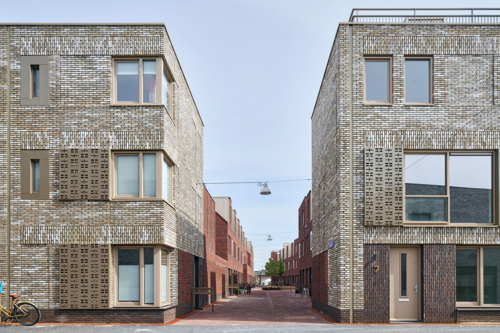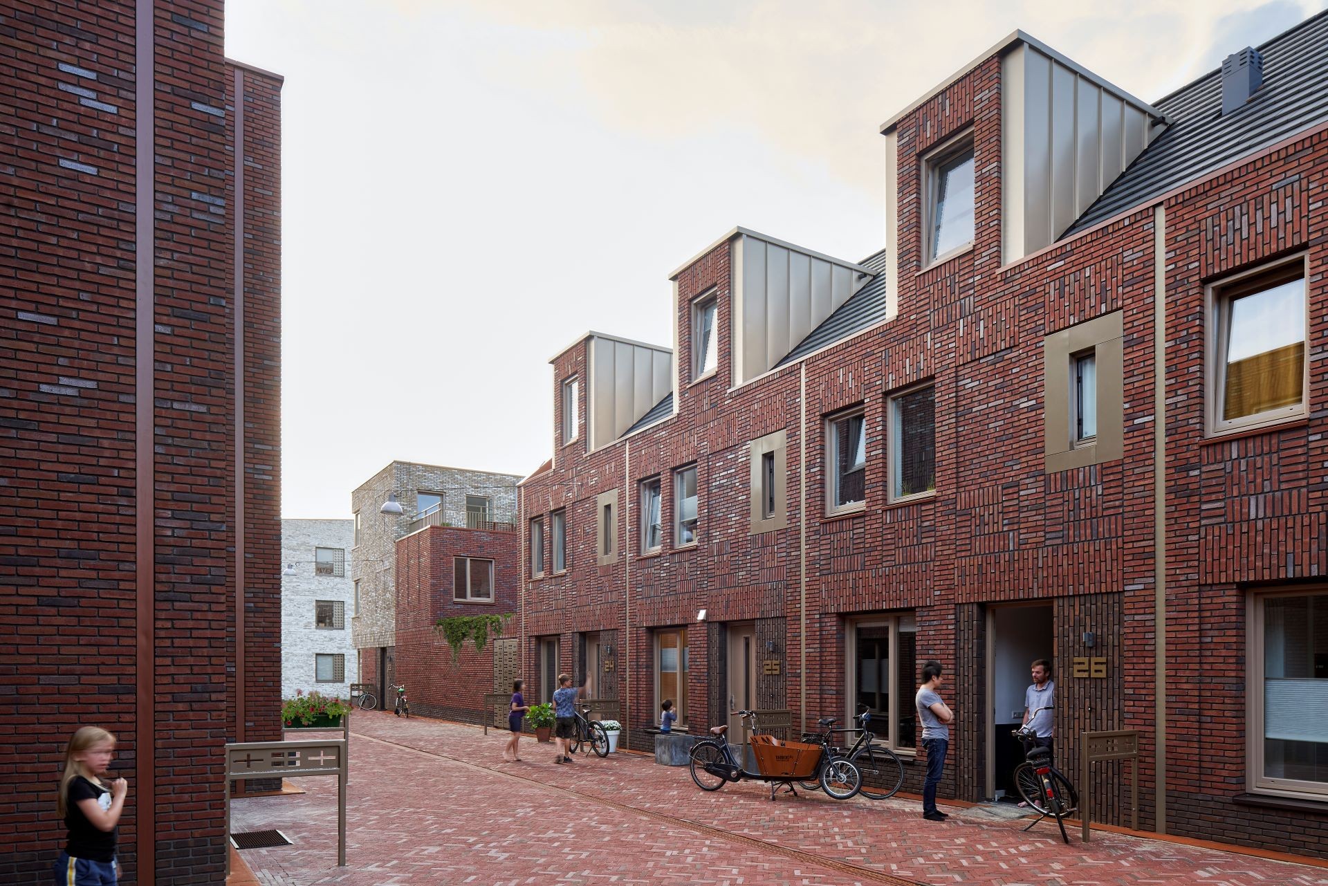 Het woonprogramma is - ook al bevindt de locatie zich midden in de stad - naar de straat gericht. Het ontwerp kent geen gesloten gevels. Door de grote ramen met lage vensterbanken heb je ook wanneer je binnen op de bank zit, contact met buiten. Gedetailleerde hekjes scheiden de voorzones die de overgang van privé naar openbaar markeren. De zones bieden als hedendaagse geveltuintjes plek aan bloembakken of een tuinbank en faciliteren het voor de bewoners gemakkelijk een praatje te maken met elkaar. Ook de groene pleintjes in de hofjes versterken de onderlinge verbinding. De geïntegreerde bankjes in de verhoogde pleinrand zijn een fijne plek om van de zon te genieten, elkaar te ontmoeten en een oogje op de spelende kinderen te houden. Omdat de woningen gebouwd zijn op een bestaande parkeergarage zijn de binnenstraten van de woonbuurt autoluw. Kinderen kunnen er – midden in de stad - veilig naar buiten.