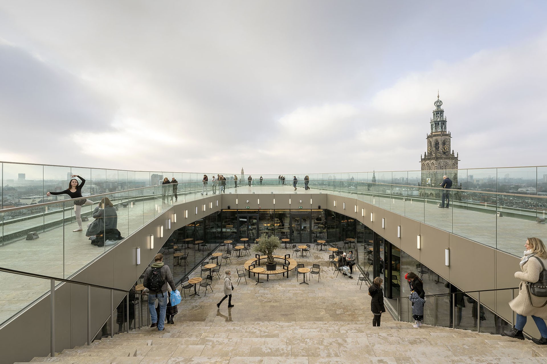 De sequentie van gestapelde ‘pleinen’ vervolgt het voor Groningen kenmerkende netwerk van open ruimtes en pleinen. De pleinen zijn vrij toegankelijk en bieden toegang tot de verschillende activiteiten waarvoor een entreebewijs nodig is. Het verspringende interieur biedt steeds wisselende perspectieven op de omringende stad en culmineert uiteindelijk in het dakterras met verbluffend uitzicht: de ‘Hoge Markt’.