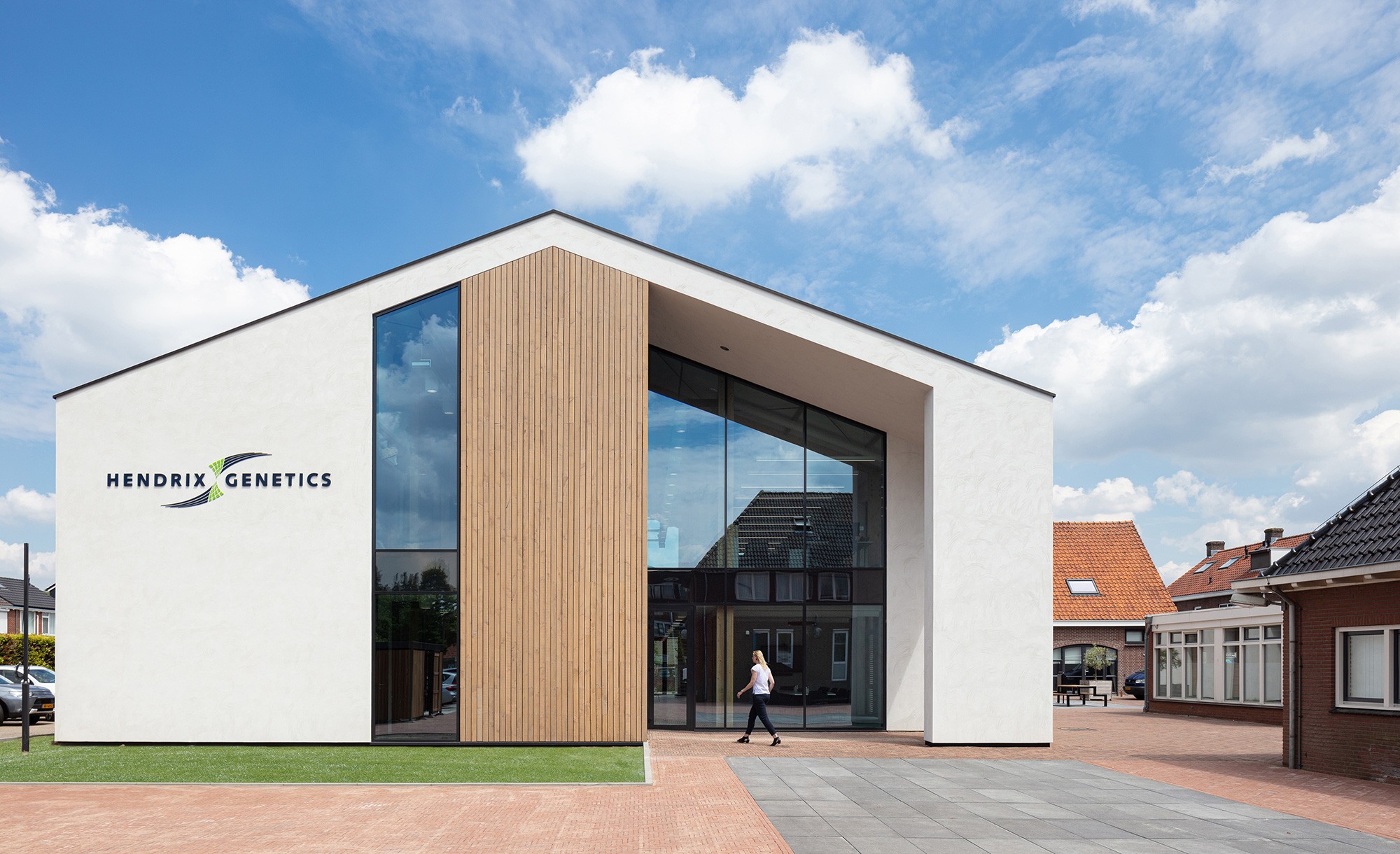 Openheid, verbinding en duurzaamheid. In Boxmeer hebben Wiegerinck en Studio id+ de visie van opdrachtgever Hendrix Genetics en de behoefte aan meer werkplekken weten te vertalen in een inspirerend gebouw. Een werkomgeving die het onderlinge contact tussen de medewerkers stimuleert in een bouwvolume dat zich eigentijds in de context voegt.