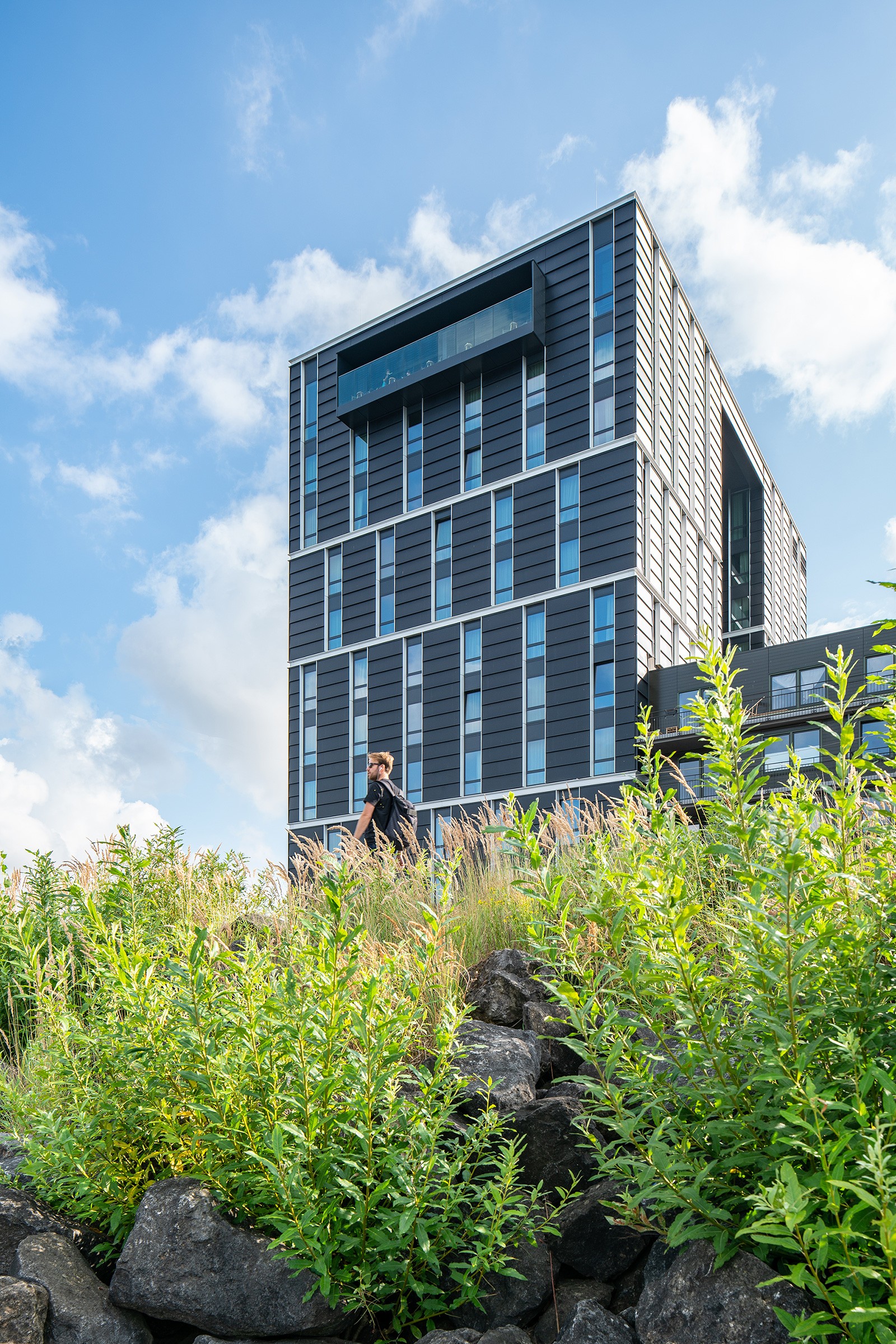 Het vier sterrenhotel Breeze is ’s werelds eerste innovatieve nearly zero-energy hotel. Door de toepassing van grensverleggende ecotechniek is het ontwerp een primeur in Nederland. Samen met het duurzame verantwoorde karakter van het restaurant en de panorama skybar is Hotel Breeze een welkome aanvulling op de voorzieningen in IJburg. Het interieur, naar ontwerp van het Zweedse bureau Doos Architects, is stijlvol en heeft een kosmopolitische uitstraling. Restaurant en skybar zijn toegankelijk voor iedereen. Ook de service van de skybar ligt in lijn met de filosofie van Hotel Breeze: ‘lokaal geproduceerd, een zero-waste beleid, circulair en gericht op het gebruik van verse en natuurlijke producten’. Dit en het fenomenale uitzicht maken hotel Breeze de nieuwe place to be op IJburg!