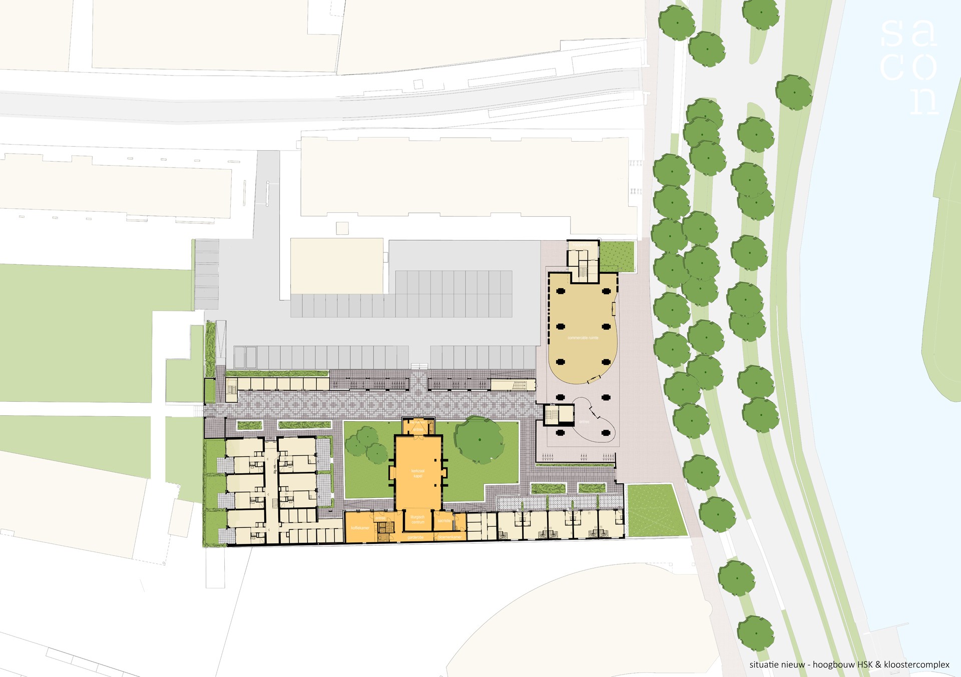 Aan de Zwolse stadsgracht lag, verscholen achter een verzorgingsflat uit de jaren 60 een klooster uit de jaren 30. SACON architecten heeft het complex getransformeerd tot een gevarieerde woonomgeving waarin de geschiedenis van de plek zichtbaar is gebleven. De kapel heeft hierbij een prominente plek gekregen.