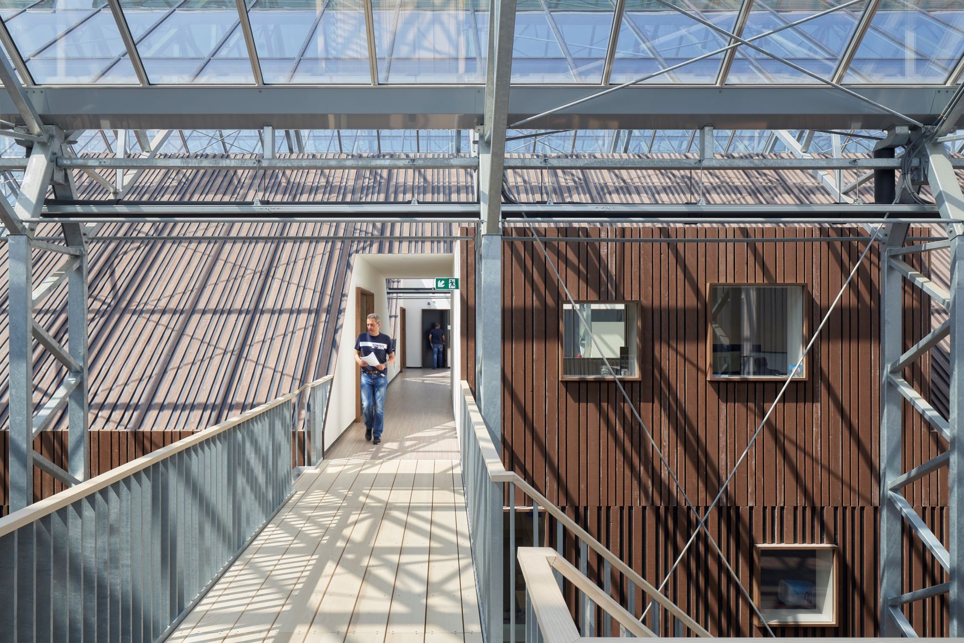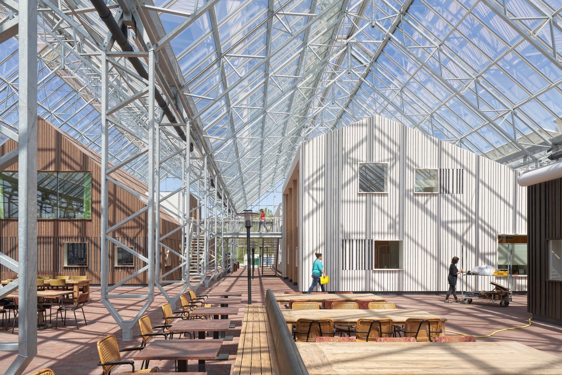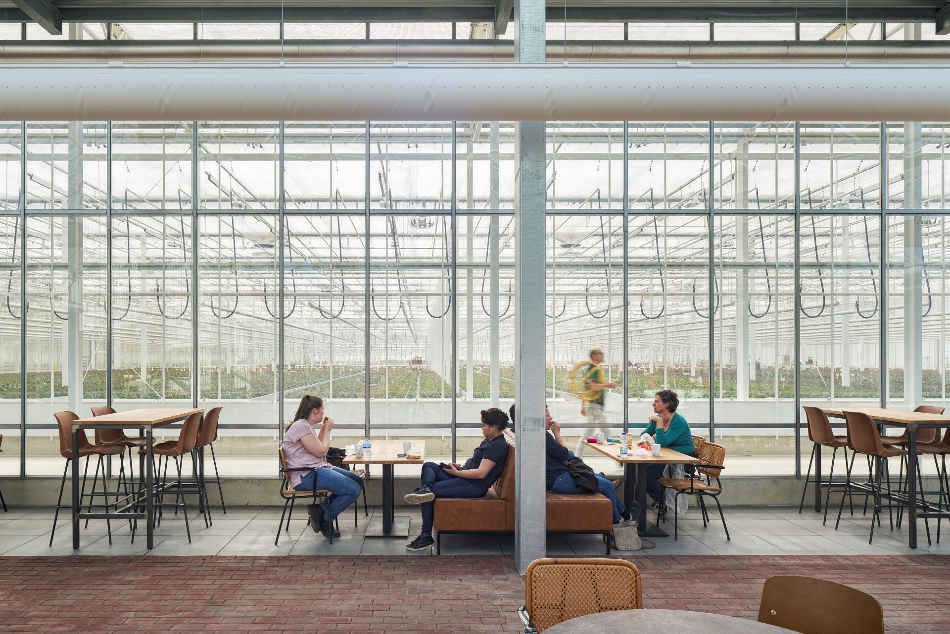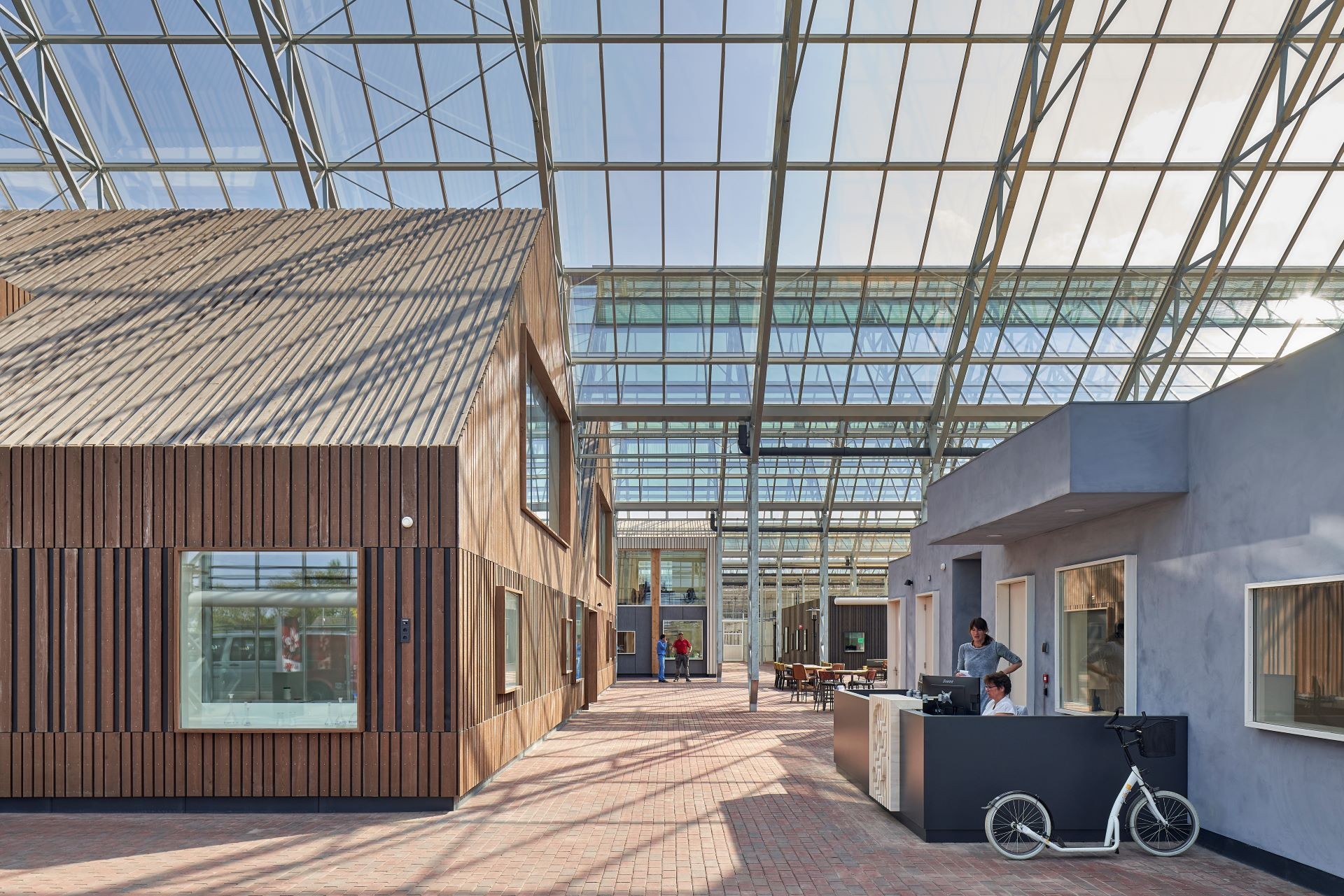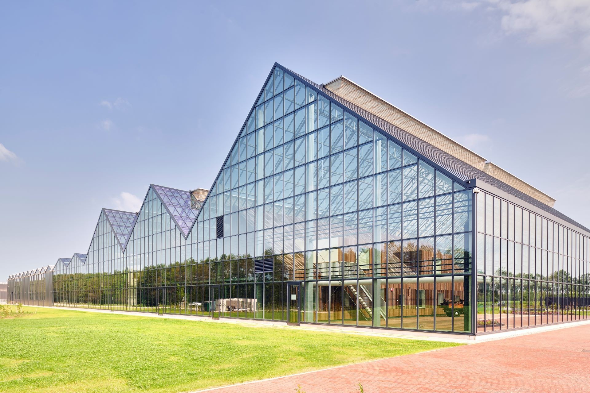 De PlantXperience van veredelaar Schoneveld Breeding in Wilp brengt ontwikkeling, innovatie, samenwerking, educatie en een inspirerende werkomgeving samen onder één transparant dak. Geïnspireerd op de boerderijen uit de omgeving vormen de gebouwen waarin de verschillende functies zijn gehuisvest, een eigentijds boerenerf onder een glazen stolp.