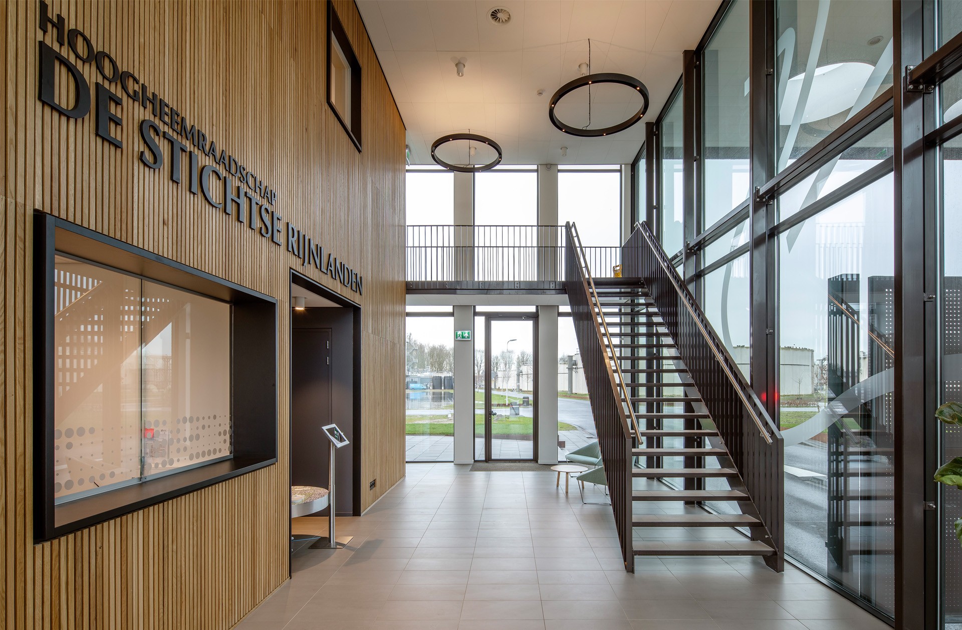 Het Poortgebouw typeert zich als een gebouw dat tegelijkertijd streng en speels is. De bakstenen penanten zijn op een streng grit ontworpen en geven daarmee body aan het gebouw. Hiermee geeft het invulling aan het formele karakter van de opdrachtgever, het Hoogheemraadschap de Stichtse Rijnlanden. Het speelse karakter van het gebouw staat symbool voor de vrijheid van de natuur rondom en het water van de zuivering. Dit karakter is in een aantal details terug te vinden. Zo verloopt het metselwerk dat terug ligt ten opzichte van de penanten van open naar dicht. Dicht waar privacy gevoelige functies liggen zoals kleedkamers, open waar representatieve ruimtes liggen als de entreehal en excursieruimte. De grote dakkoepels in de poort zorgen voor licht en transparantie en het perforatiepatroon in de poort zelf is een beeld van kabbelend water, refererend aan de hoofdfunctie van de rioolwaterzuivering. Dit grafisch patroon komt ook terug in het interieur.