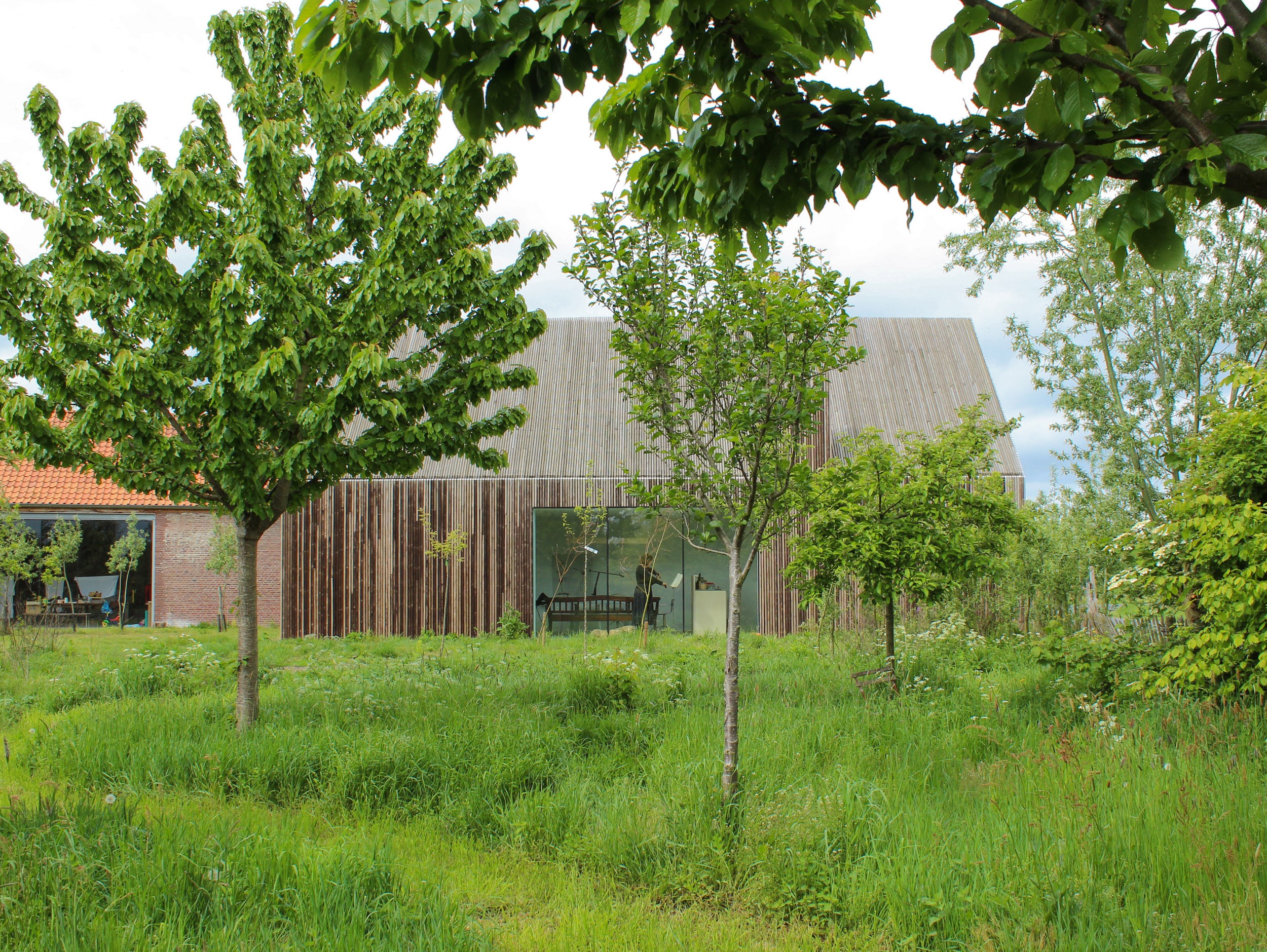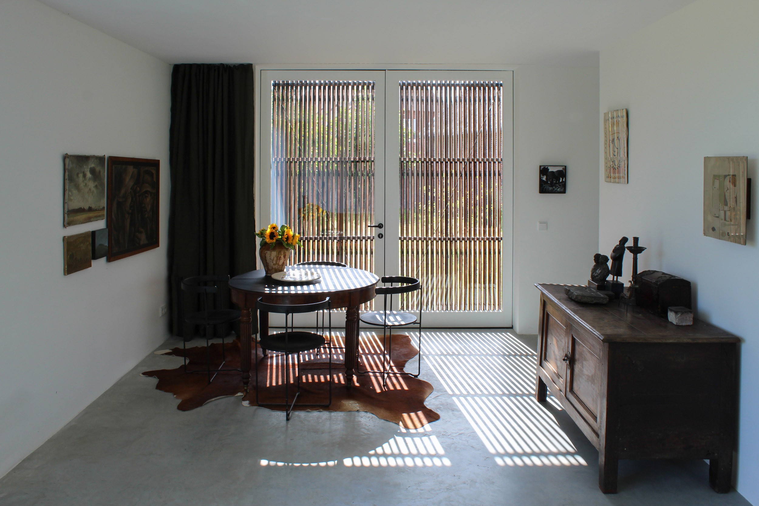 Een aantal jaar geleden besloten opdrachtgevers tot de aankoop van het boerderijcomplex. Opdrachtgevers waren verliefd geworden op de landelijke setting bestaande uit een ensemble van; een rijksmonumentale boerderij-woning (AD 1747), een paardenstal en een koeienstal. De kwaliteit van het ensemble was dat deze nauwelijks was veranderd en zeer sober en eenvoudig is gebleven. Het voelde als het naar binnen stappen in het schilderij “De aardappeleters” van Vincent Van Gogh. Deze kwaliteit van soberheid en eenvoud wilden we behouden en vormde het “leitmotiv” voor het hele project. De wens was daarnaast om optimaal te kunnen genieten van het omliggende landschap en de natuur. Om de voormalige rijksmonumentale woning te veranderen aan de eisen van de opdrachtgevers en de eisen van nu zou de rijksmonumentale kwaliteit volledig verloren gaan. Daarom hebben we samen met de opdrachtgevers besloten om de koeienstal te transformeren en renoveren tot de nieuwe woning. De woning moest wel ondergeschikt blijven aan het rijksmonument en een schuur uitstraling krijgen. In de nieuwe schuurwoning zijn grote sculpturale en minimalistische openingen gecreëerd die uitzicht bieden naar het prachtige landschap. Binnen en buiten versmelten en opdrachtgevers genieten van de landschappelijke vergezichten in de 4 seizoenen van het jaar.