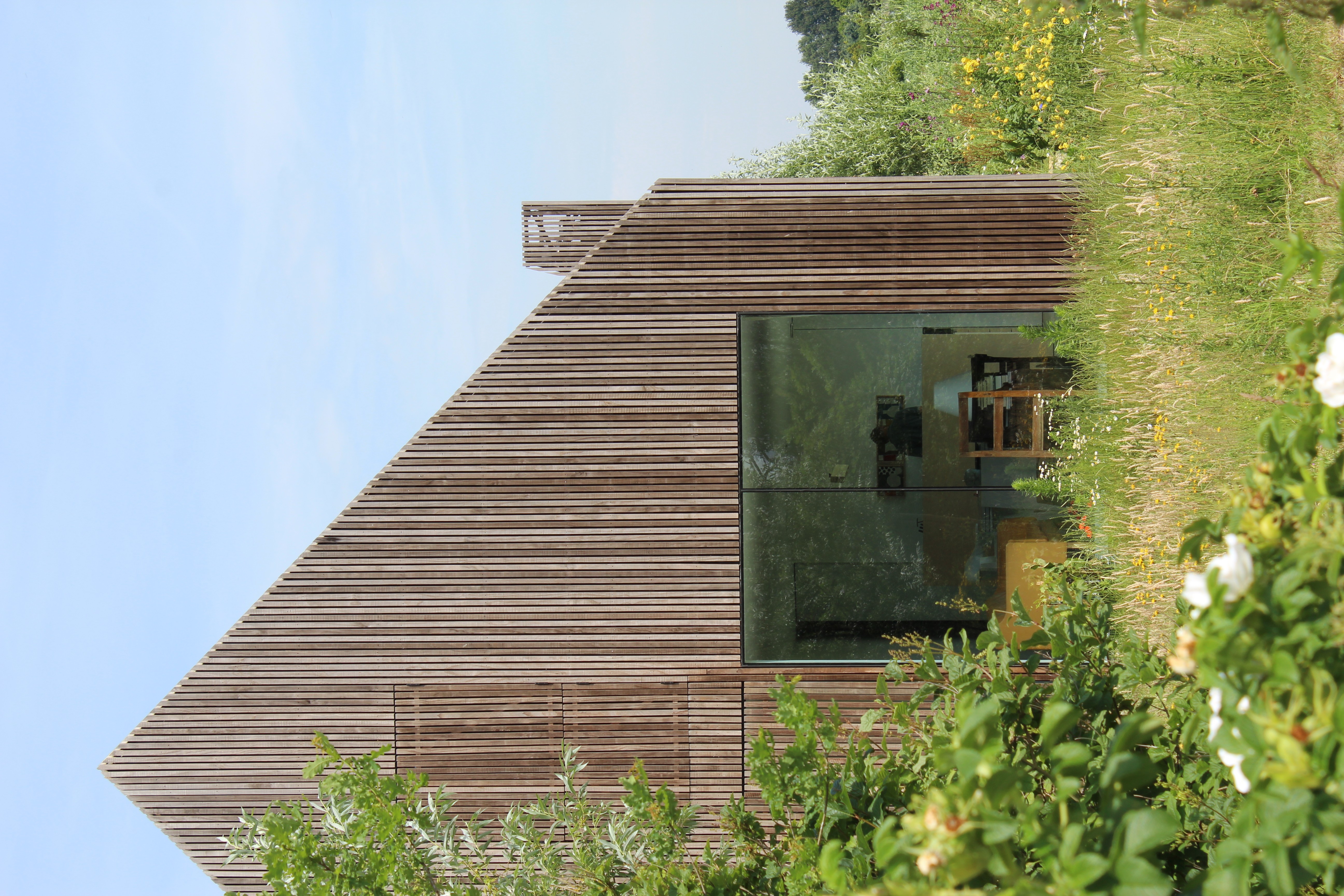 Vanaf de straatzijde oogt de schuurwoning gesloten. Echter achter de open gevelbekleding zitten verborgen ramen en in de gevelbekleding zijn daarnaast luiken geïntegreerd. De gevel is open waardoor licht en lucht door de kieren tussen de latten naar binnen kan. In de zomer kan het hele huis open worden gezet zonder dat er ongenodigde gasten (dieren en mensen) binnen kunnen treden. Daarnaast zorgt de open gevelbekleding voor een mooi lichtspel.