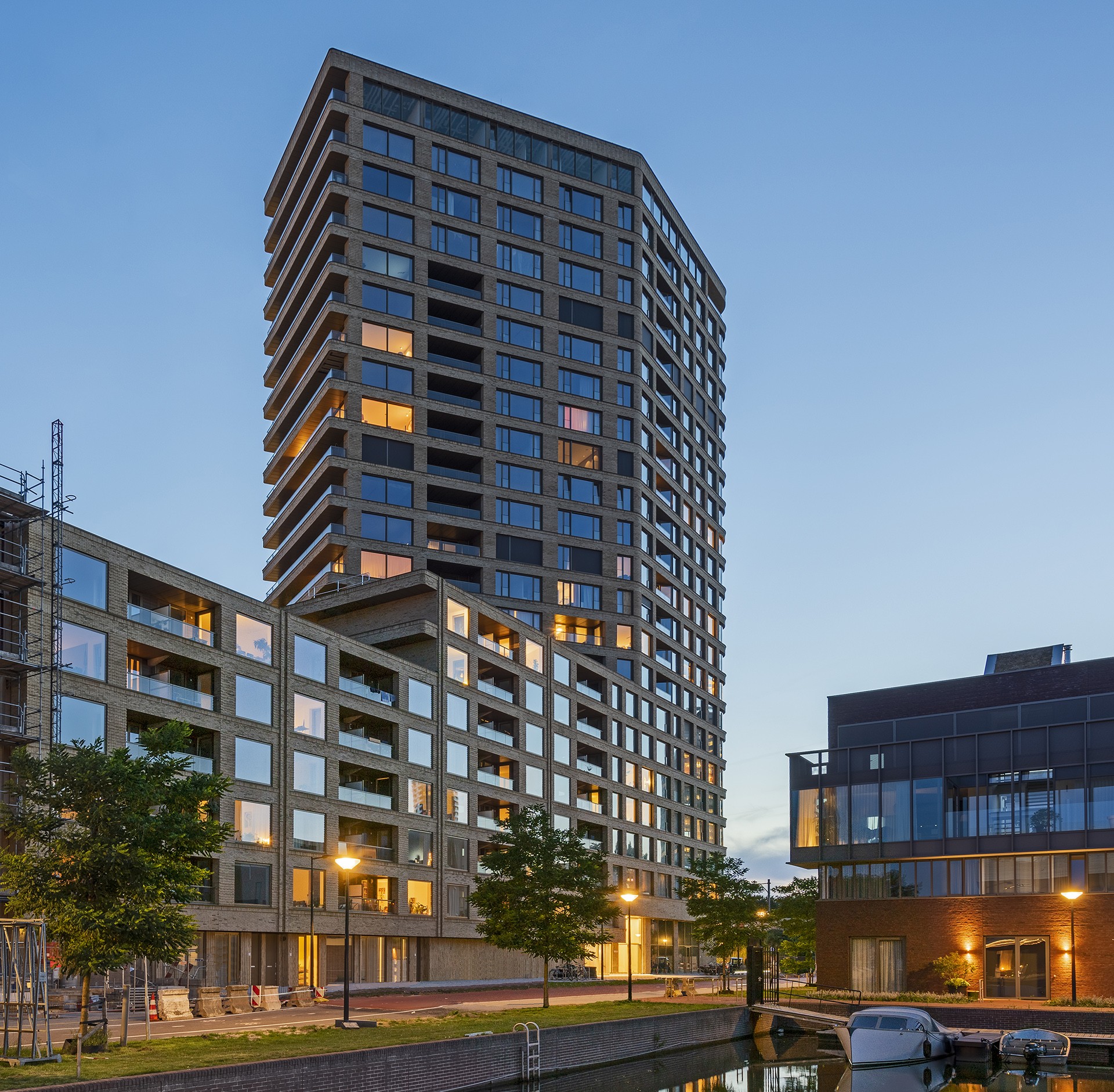 Deze bijzondere zichtbare locatie dwong een markant gebouw af. STATE is met z'n 74 meter Amsterdams nieuwste landmark. De schuin toelopende vorm van de stedenbouwkundige context werd ingezet om een om ranke en herkenbare toren te maken. Zowel de toren als de laagbouw zijn uitgevoerd in bijzondere baksteenverbanden en voorzien van riante buitenruimtes en schitterende erkers.