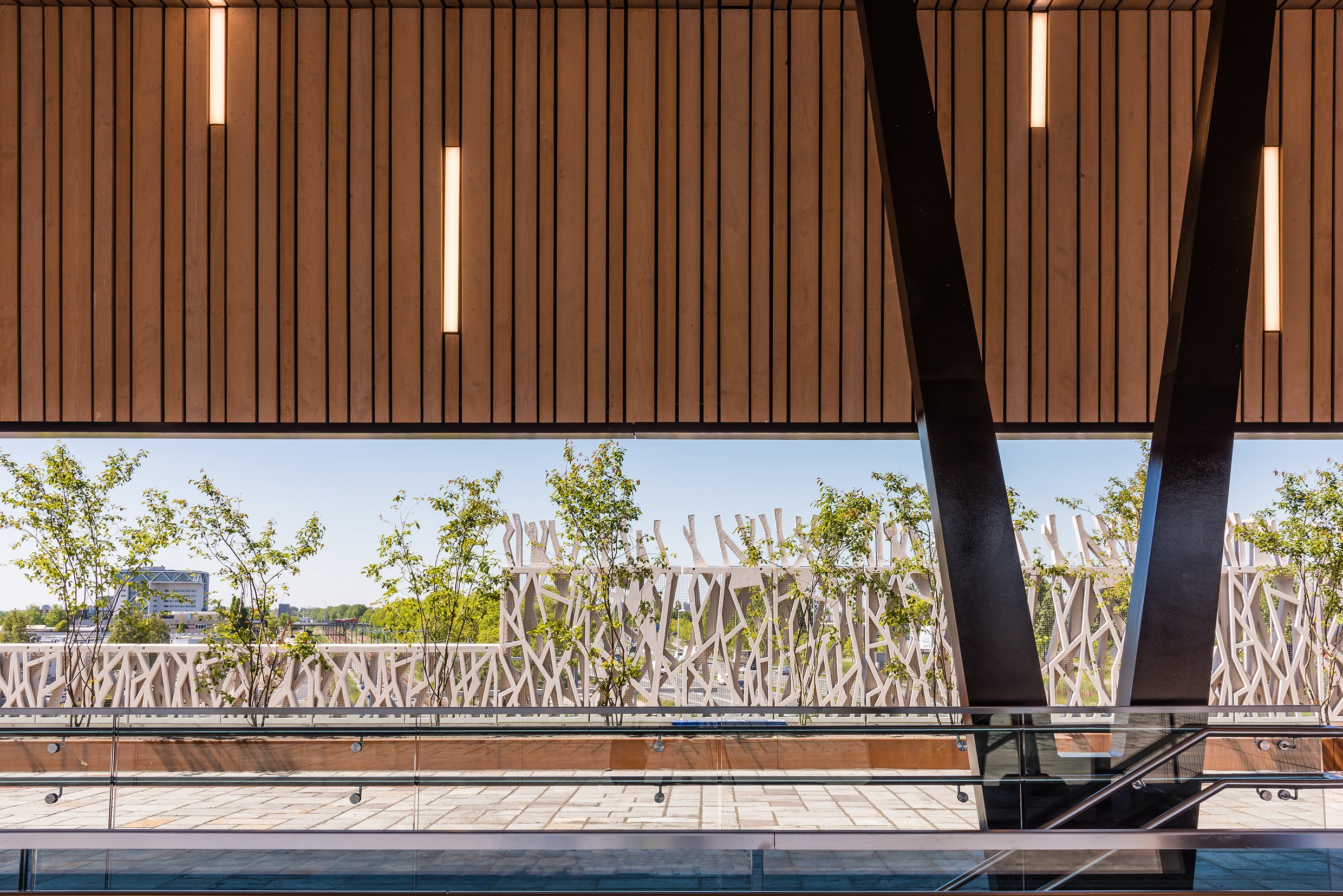 Het hoofdconcept van het station is de creatie van een groene stedelijke ruimte op hoogte, een parkachtige laan boven de spoorlijn Utrecht-Den Haag en de snelweg A12. Hierdoor is een vervoersknooppunt ontstaan die verschillende modaliteiten met elkaar verbindt. Het is in de omgeving van Den Haag niet ongebruikelijk dat de tram door een lommerrijke laan rijdt met de rails in het gras. Daarom zijn veel bomen en struiken op het brugdek geplaatst en is de afscherming rondom uitgevoerd in een origineel takkenpatroon. Deze hekwerken zijn vervaardigd in zeer hoge-sterkte beton en speciaal voor dit project op ingenieuze wijze ontwikkeld. Het mag immers niet gebeuren dat de beton afbrokkelt en op de snelweg of het spoor terecht komt.