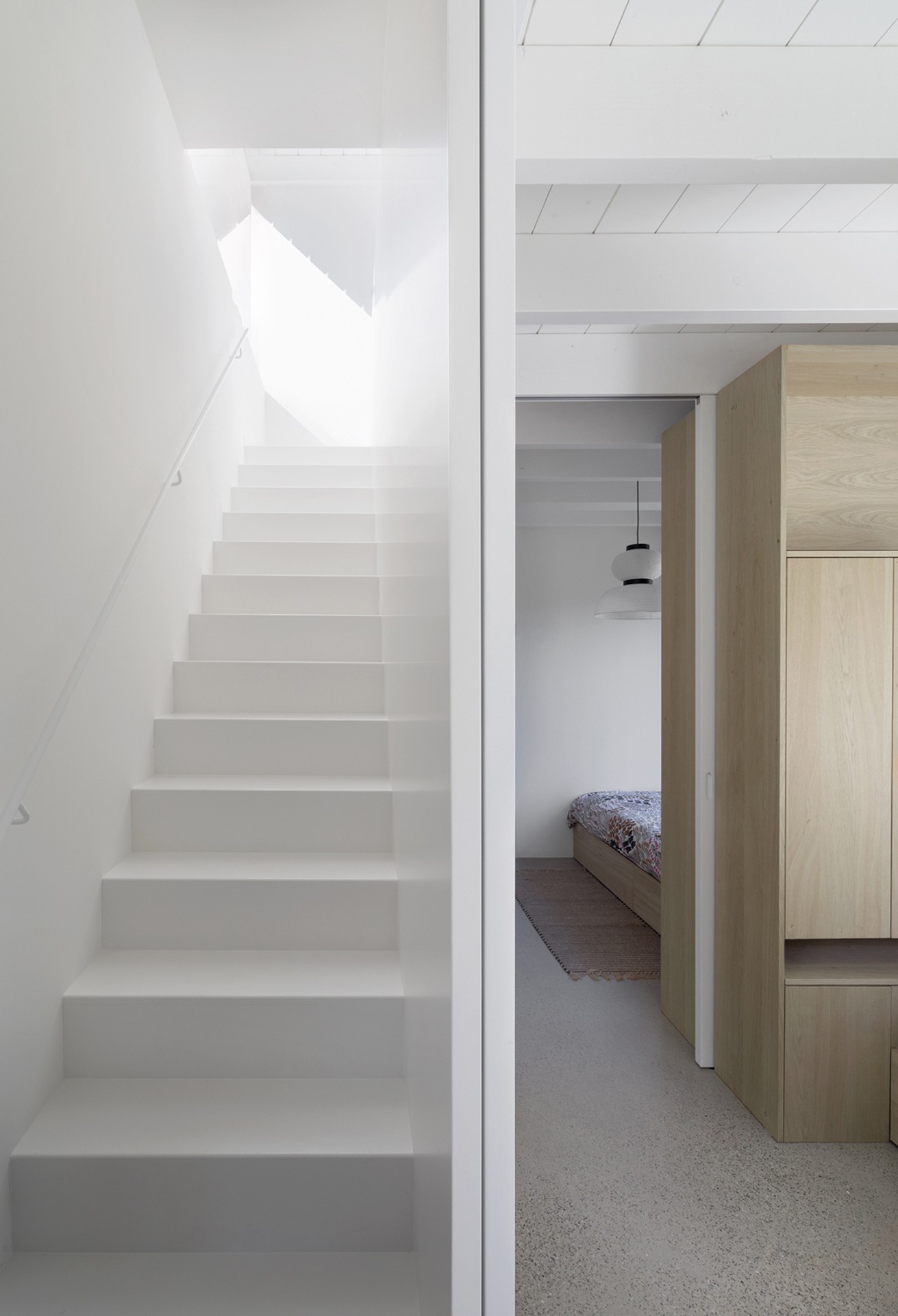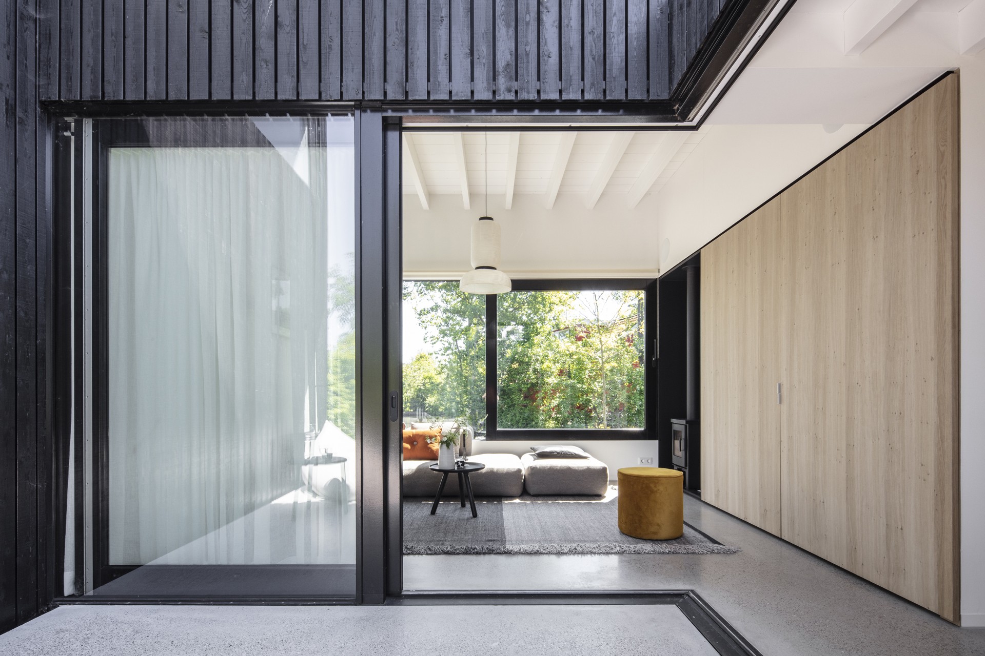 De recreatiewoning is compleet ontworpen als een maatpak. Op de wensenlijst van het opdrachtgeverskoppel stond een sterke relatie tussen binnen en buiten, niet alleen qua indeling maar ook wat betreft kleur- en materiaalgebruik. De uitstraling moest modern en sober, maar niet te streng zijn. Het moest wel een warm familiehuis worden. En omdat het zo klein is, wilde het opdrachtgeverskoppel veel opbergruimte.