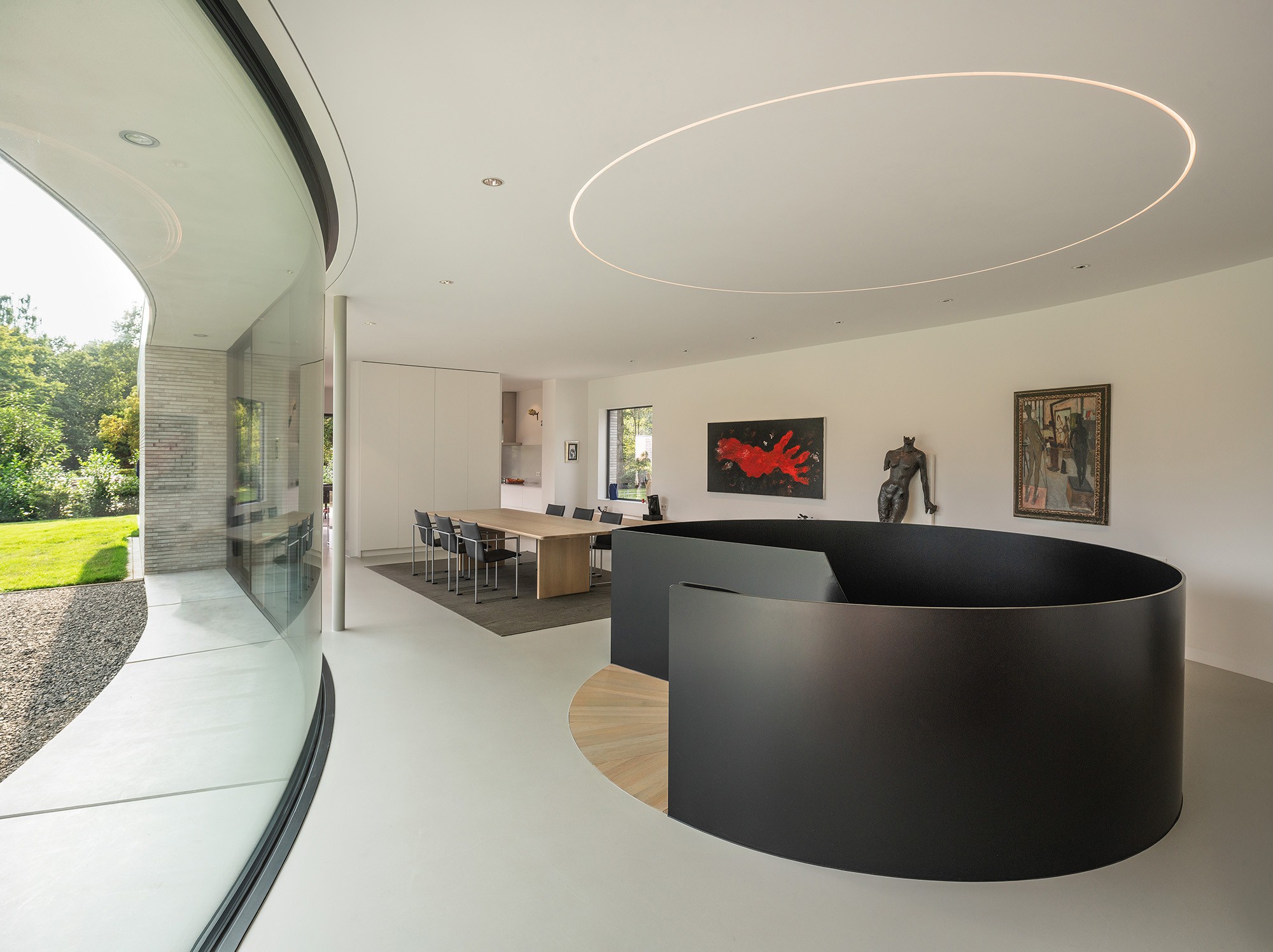 Voor opdrachtgevers met een voorliefde voor kunst ontwierp HofmanDujardin een genereuze villa. Geïnspireerd door de veelzijdige kwaliteiten van het landschap, combineert het ontwerp een ruimtelijk open plan met meer intieme en geborgen ruimten. Villa Veluwe is grotendeels gelijkvloers en vormt voor de opdrachtgevers een op maat gesneden huis.