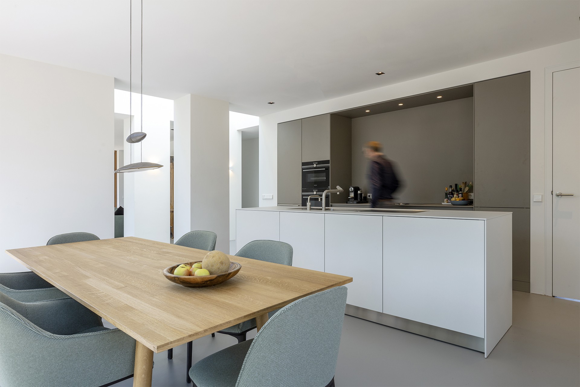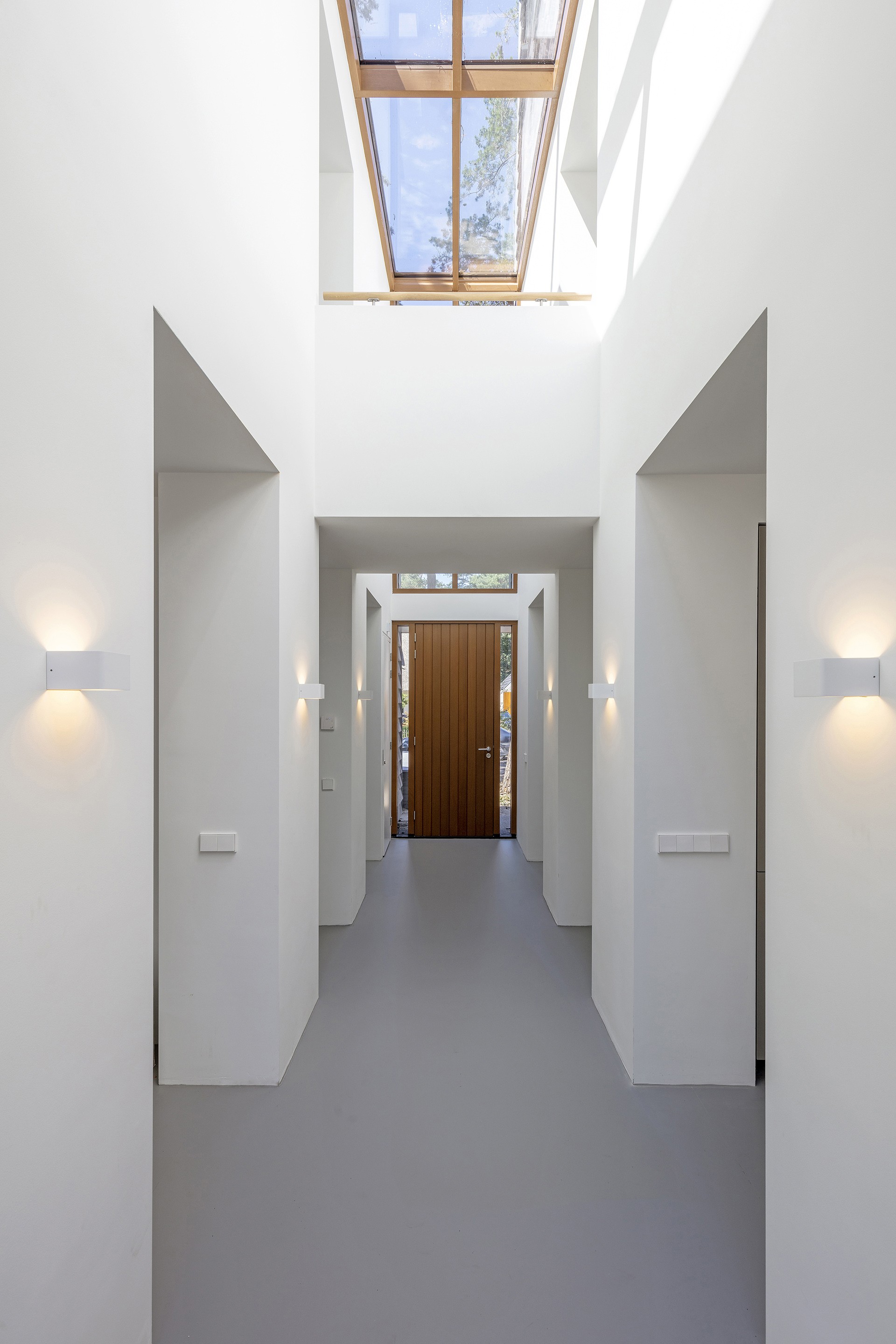 De woning is het resultaat van verschillende contradicties. Zo moest de woning licht zijn en een sterke visuele verbinding met de tuin hebben, en tegelijkertijd een gesloten gevoel creëren waarbij de privacy van de gebruikers gewaarborgd blijf. Daarnaast is er getracht de verschillende functies een geborgen karakter te geven, zonder ze fysiek en visueel af te schermen van de naastgelegen ruimtes.
