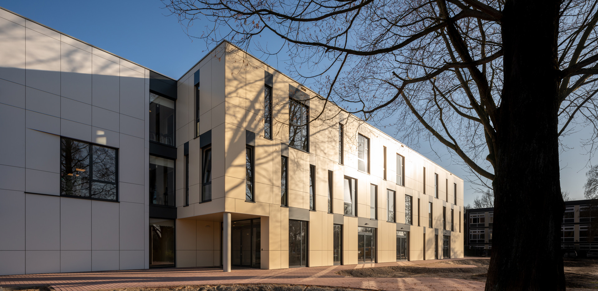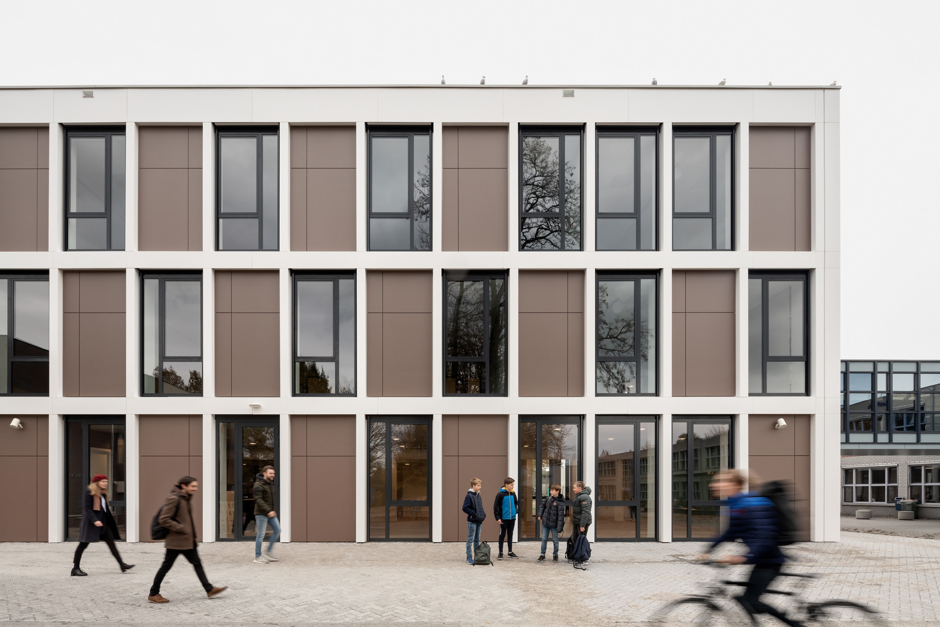 Wij beschouwen de school als een maatschappelijk gebouw waar het goede voorbeeld gegeven moet worden; een fijne plek waar verbinding centraal staat. Daarom vertelt het gebouw een belangrijk verhaal door respectvol en liefdevol om te gaan met wat al bestaat, en door ruimte te bieden voor ontmoeting, waarbij het eigen karakter van de school voelbaar blijft.