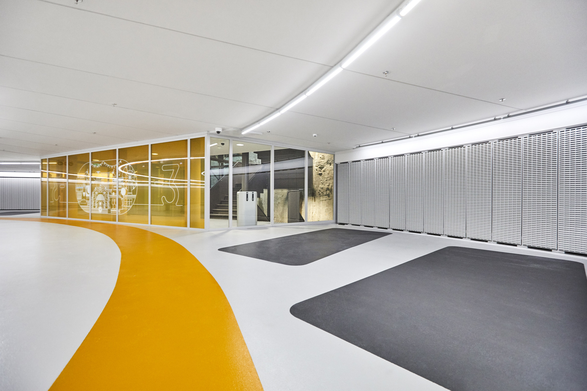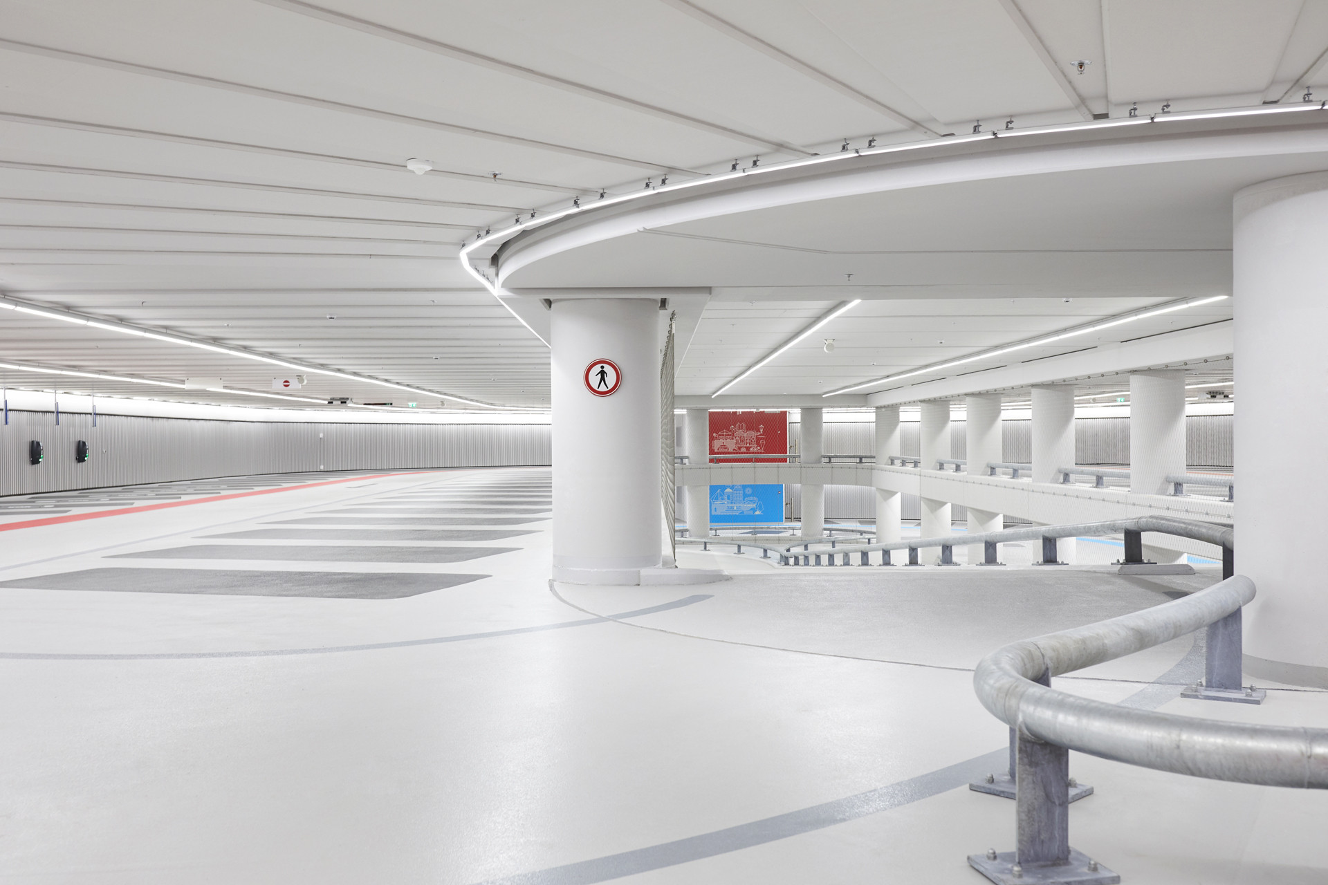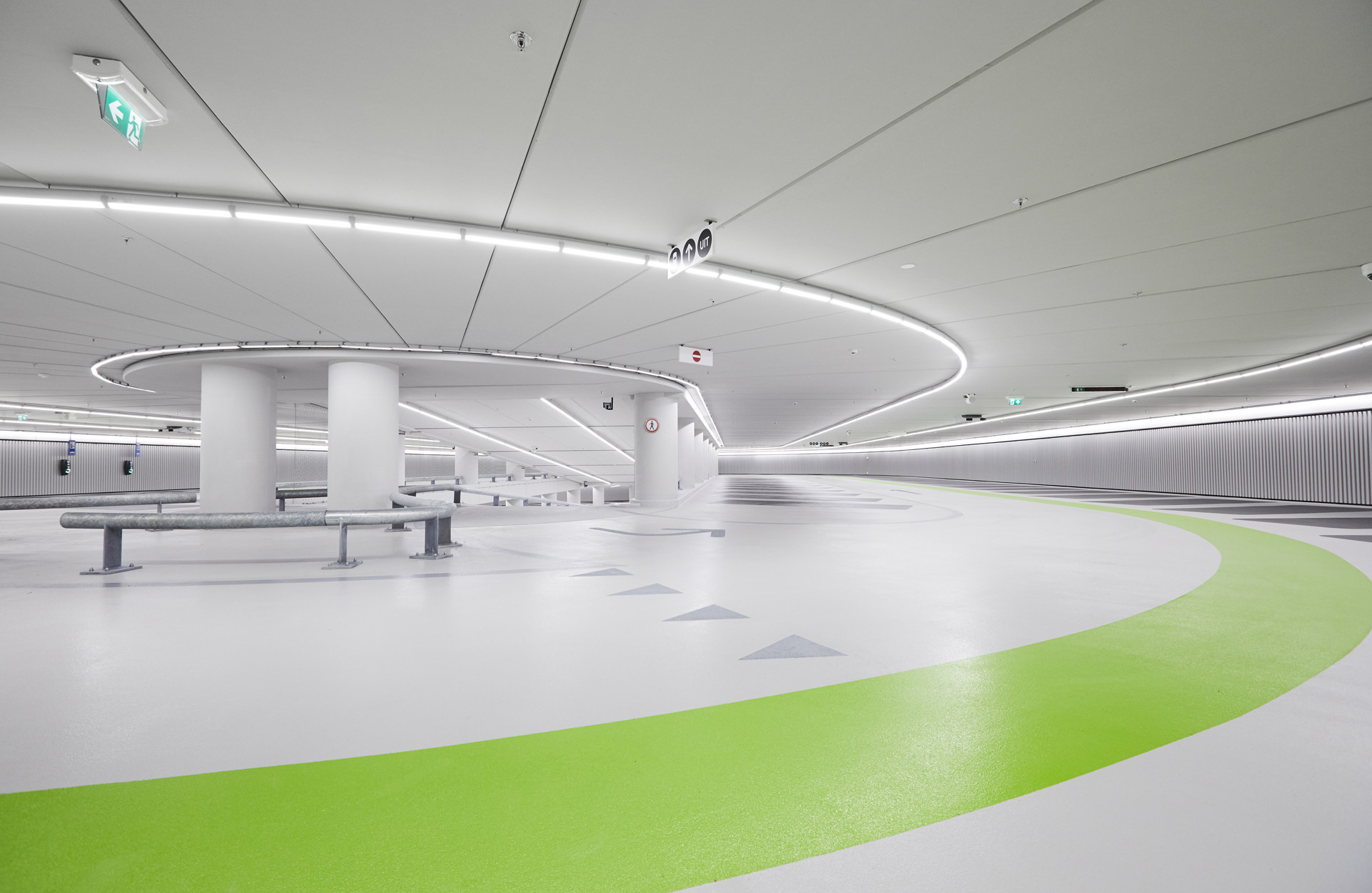 In de parkeergarage aan de Garenmarkt voelen bezoekers zich direct welkom in Leiden. De garage is, ondanks de diepte van circa 17 meter, aantrekkelijk, ruim en licht en heeft een heldere, herkenbare routing. Afdalen in de garage is ontworpen als een beleving. In de glazen liften is de schil van de garage zichtbaar gehouden; door het zicht op de grove betonwanden wordt de diepte van de garage ten volle ervaren. Dit vormt een contrast met de zeer lichte wereld van de garage zelf, waar de grove betonwanden uit het zicht zijn onttrokken door metalen voorzetwanden, alle installaties zijn weggewerkt en de parkeervakken vrij van kolommen zijn. De lifthallen staan middels een vide in rechtstreeks contact met het paviljoen op het plein. Langs de grove betonnen wanden valt het daglicht tot diep in de ondergrondse garage naar binnen. De afwerking van de garage is eenvoudig en effectief. In basis is alles lichtgrijs - de plafonds, vloeren en wanden - waar een paar frisse tinten aan zijn toegevoegd ter oriëntatie van de bezoeker. De verlichting bestaat uit doorgetrokken led-lijnen die de rijroutes volgen. De parkeervakken zijn donkergrijs. De looppaden op de 5 parkeerdekken hebben ieder een afwijkende kleur, rood (-1), blauw (-2), geel (-3), groen (-4) en paars (-5). In dezelfde kleur als het looppad is op iedere verdieping een kunstwerk, een grafische illustratie van Hakijk, aangebracht van 5 thema’s kenmerkend voor Leiden, zoals Leidse straatjes, grachten en oevers, feesten en festivals, buitenspelen en monumenten en musea. De inrit van de parkeergarage heeft gemetselde wanden. Langs de inrit ligt bestrating die past bij de historische binnenstad. Dit geldt eveneens voor het Belgisch hardsteen waarmee de gemetselde wanden zijn afgedekt. Het paviljoen met voetgangersentree is transparant vormgegeven en heeft een expressief stalen dak met sedum. Installaties zijn weggewerkt achter metselwerk. Bij de herinrichting van het plein, 'het dak van de garage', heeft Studio VVKH de omwonenden geholpen om hun wensen en schetsen om te zetten in ruimtelijke modellen die de weg hebben vrijgemaakt voor een groen en autoloos stadsplein. Het pleinontwerp zelf is door de gemeente Leiden gemaakt; het groene karakter van het plein sluit goed aan bij de historische binnenstad en kan worden ingezet als evenementenplein. In de avonduren zorgen de ledlichtlijnen naast de looppaden voor een sfeervolle uitstraling. Het paviljoen is integraal onderdeel van het plein geworden.