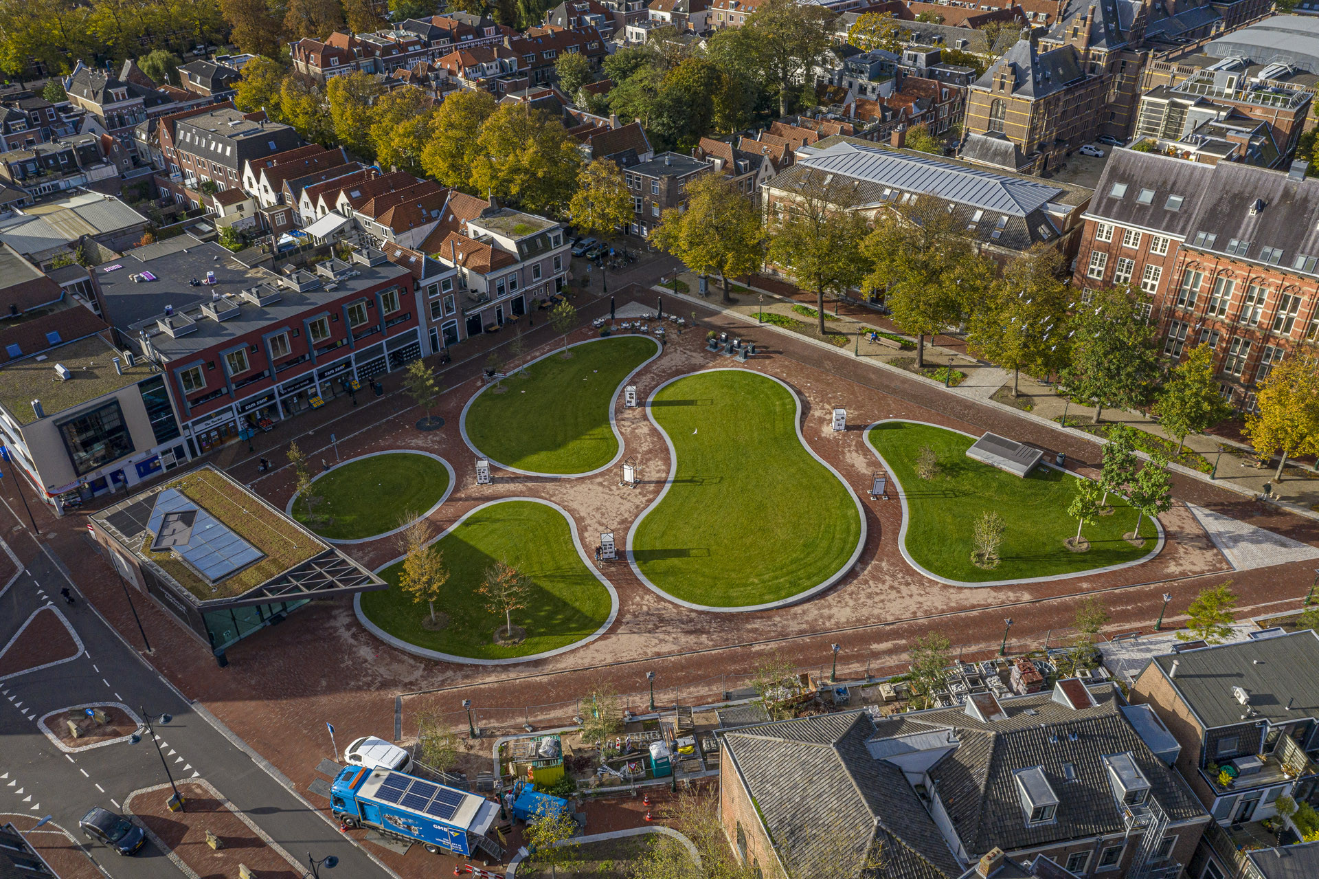 De Garenmarkt in Leiden was sinds jaar en dag een kaal, verhard parkeerplein zonder goede pleinwanden. Met de voltooiing in 2020 van een moderne, comfortabele ondergrondse parkeergarage met bovengelegen groen, autoloos stadsplein is de Garenmarkt getransformeerd naar een aantrekkelijke entree voor de historische binnenstad van Leiden.