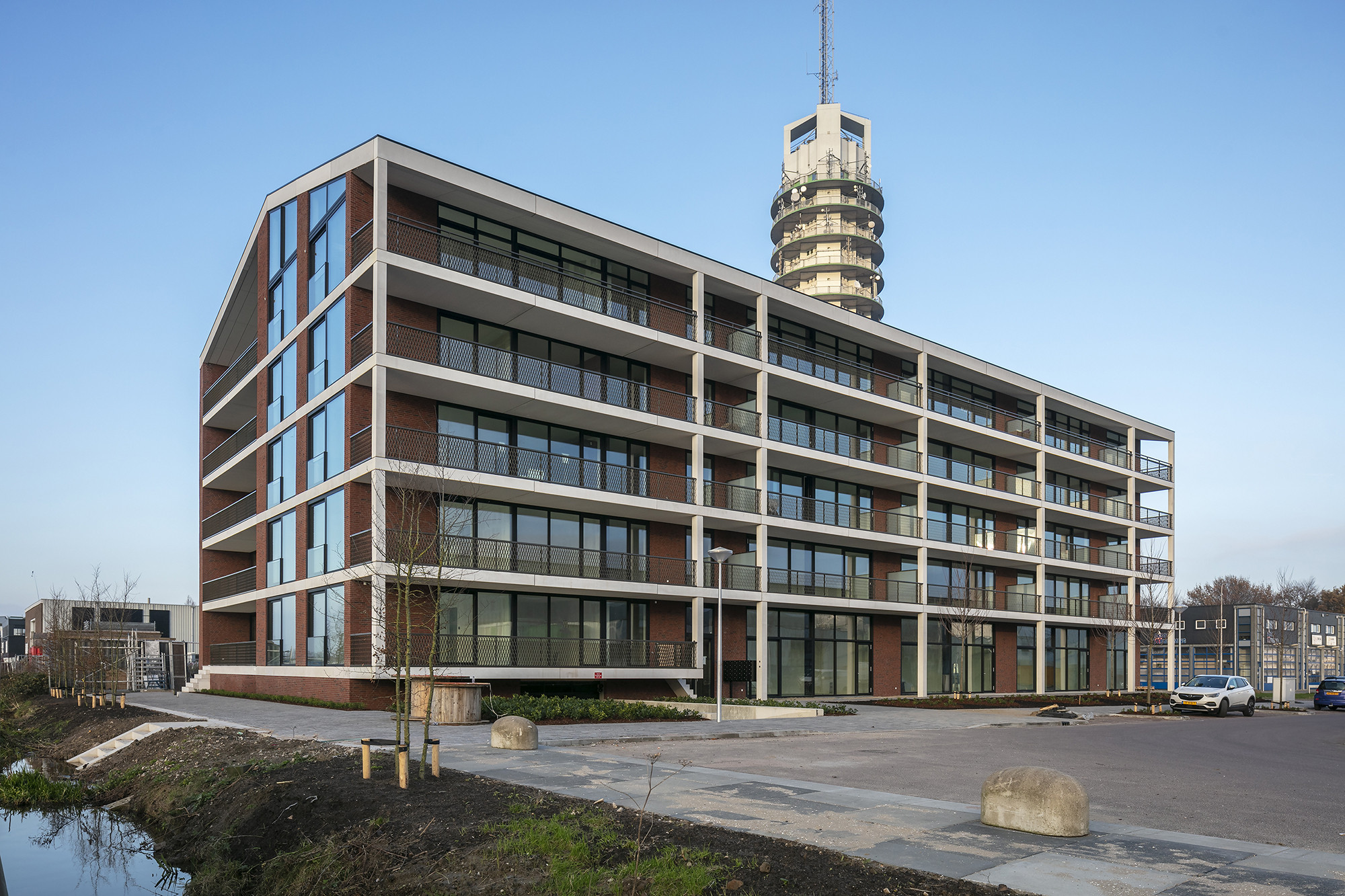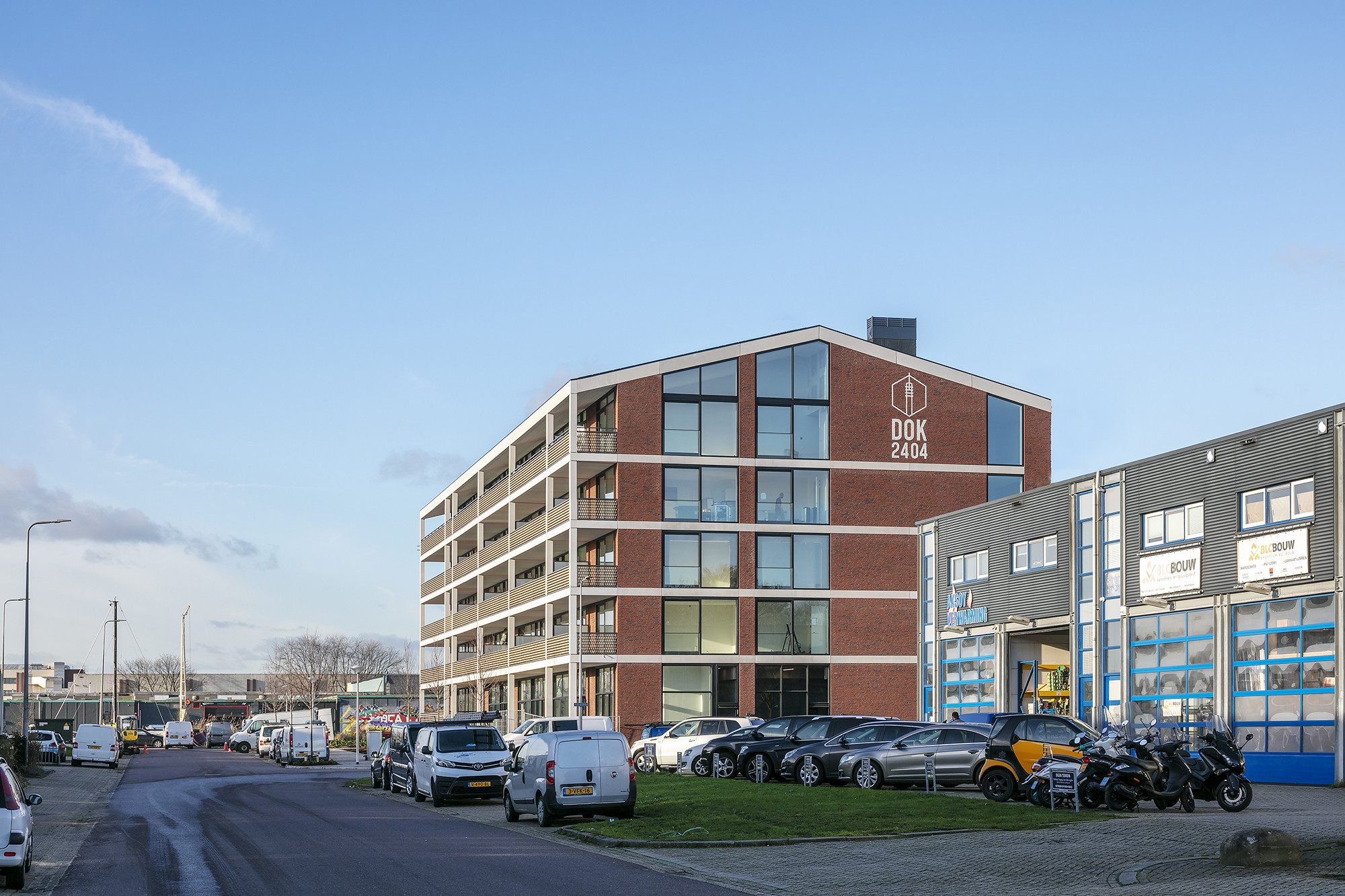 De Rijnhaven in Alphen aan den Rijn transformeert van een verlaten bedrijventerrein naar een levendige woon- werkwijk. DOK2404 is het eerste gebouw dat hier wordt opgeleverd. Het zal nog even duren voor de rest van de wijk is opgeknapt. De 29 woningen combineren daarom de stoerheid van de haven met het comfort van een woongebouw.