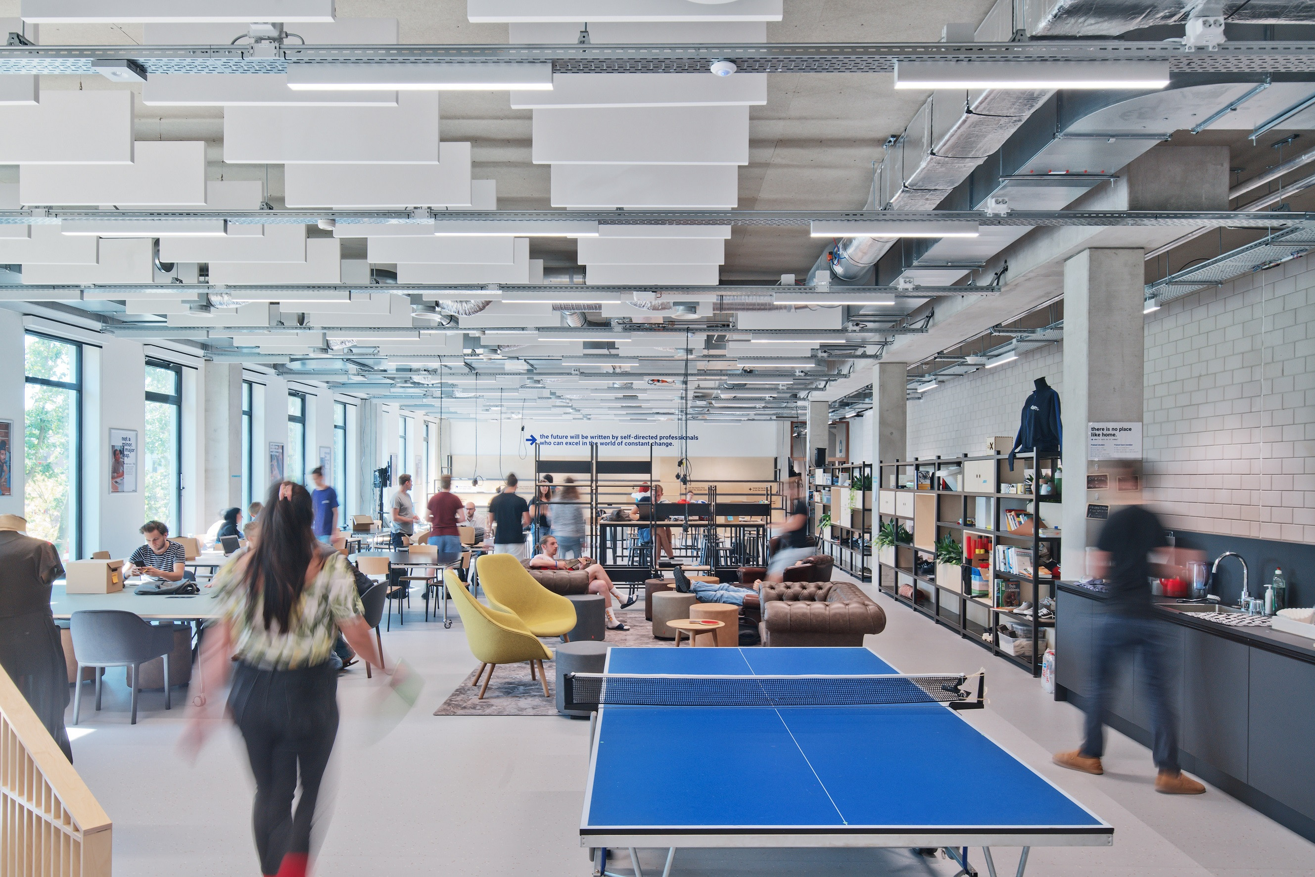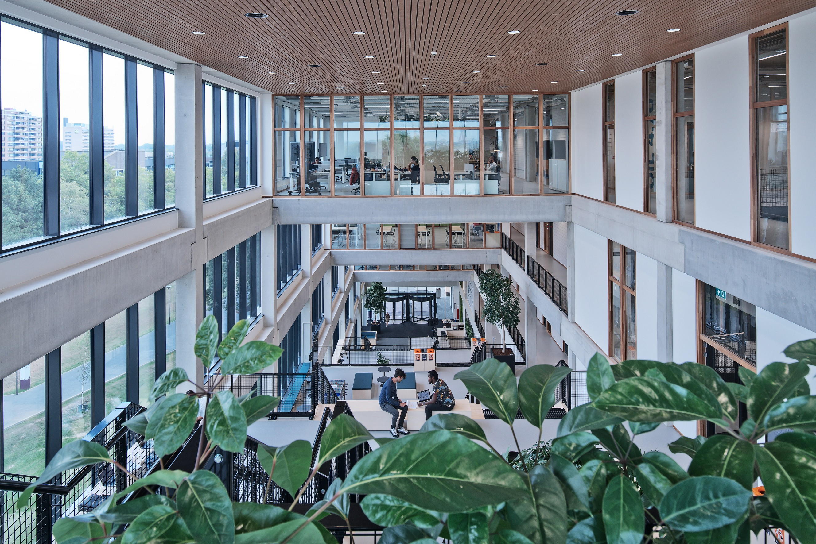 Onderwijsvernieuwing vertaald in huisvesting: het succesvolle onderwijs met individuele leertrajecten wordt gestimuleerd door de open labs, diagonale binnenstraat met maximale ontmoeting en uitwisseling, gevarieerde & adaptieve indeling en de gezonde leeromgeving met groen, daglicht en buitenruimte. Een fantastisch gebouw om in te studeren.