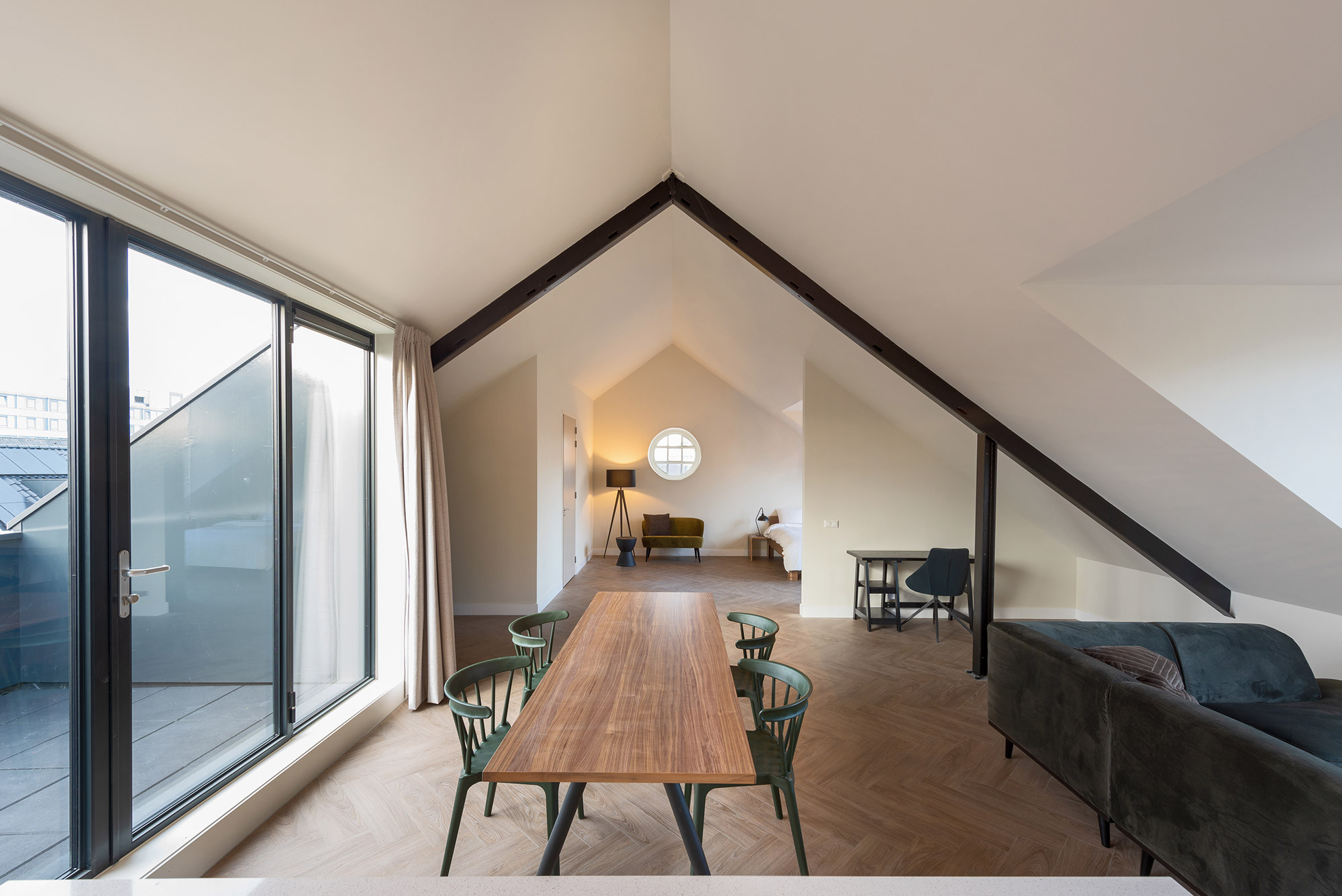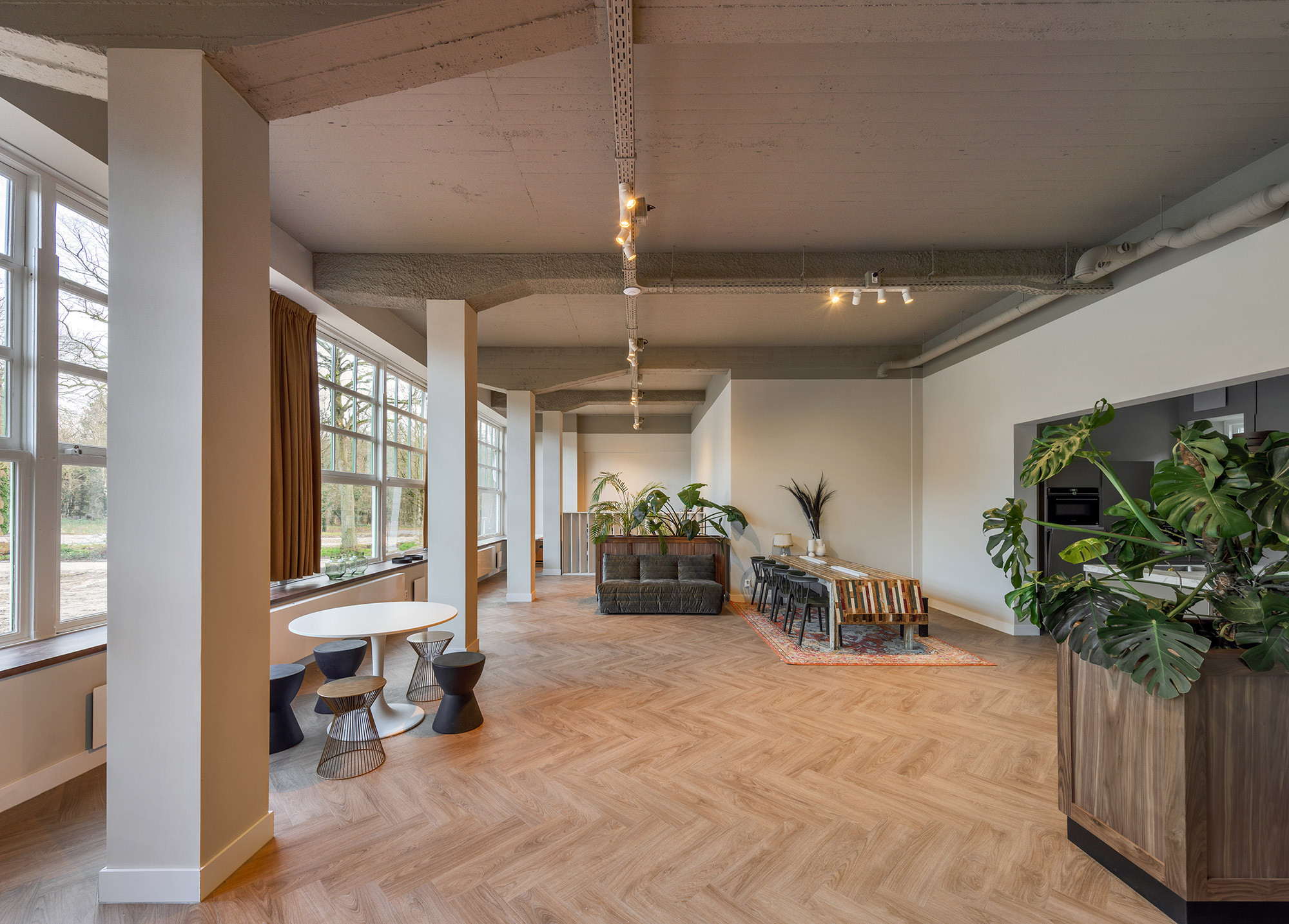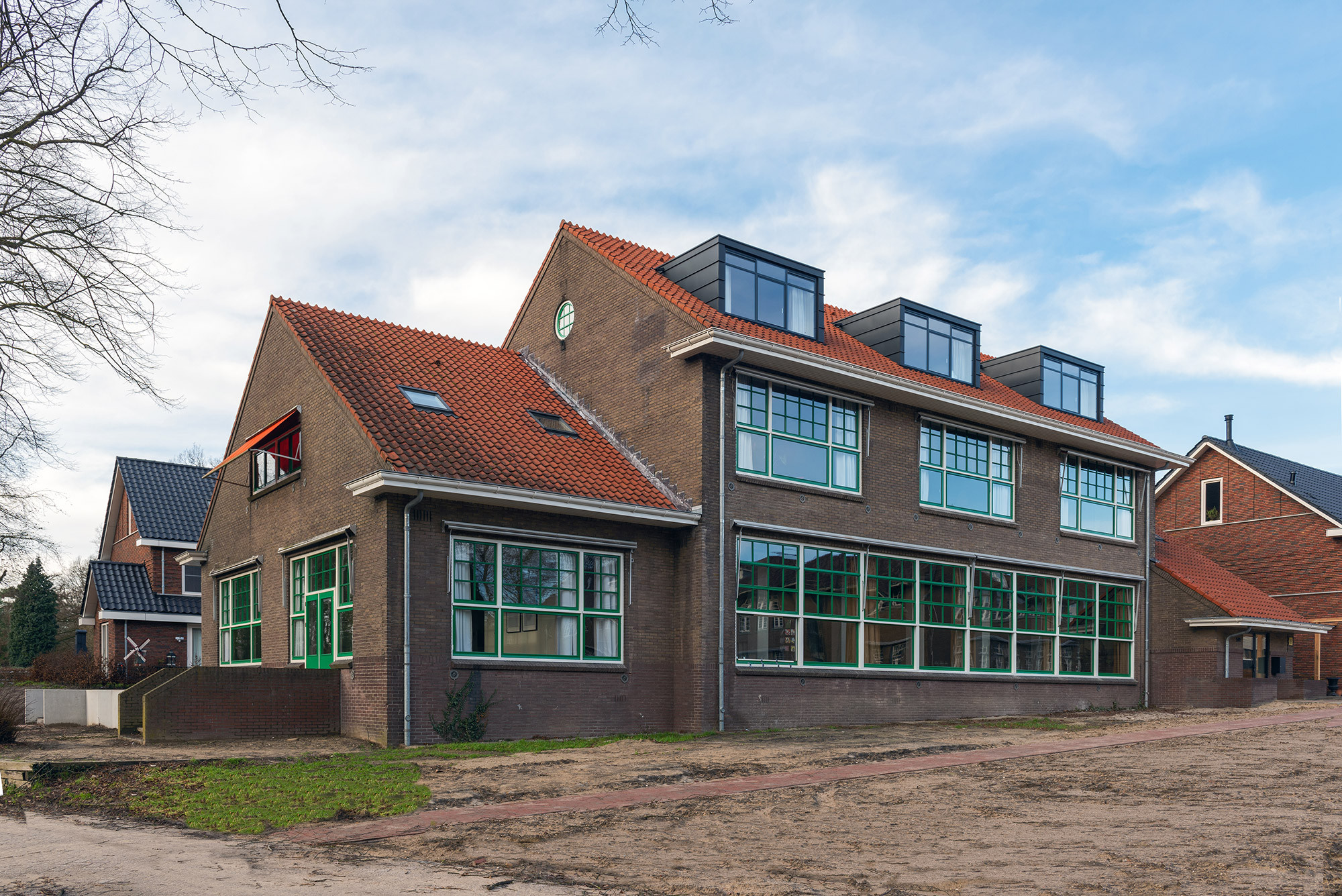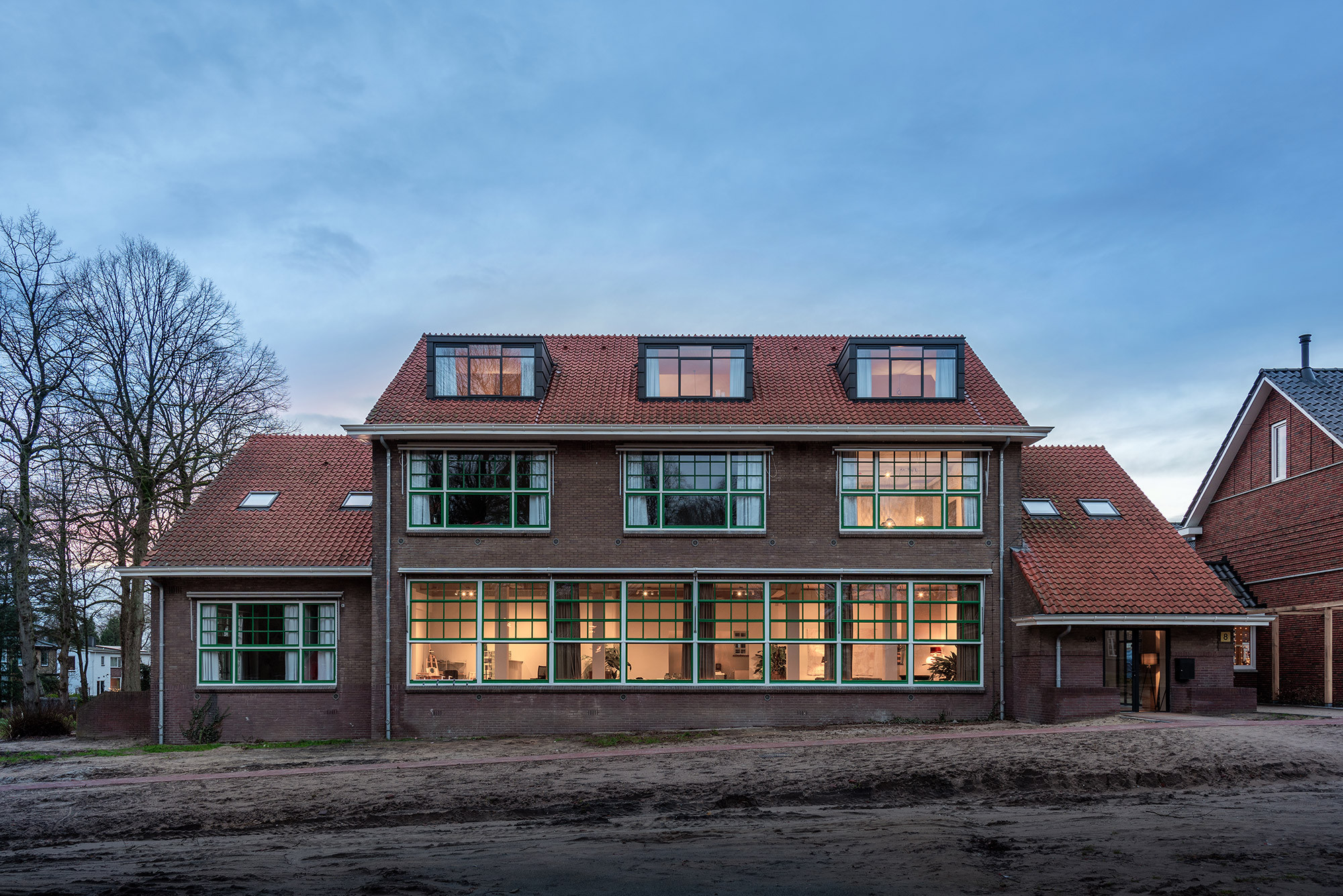 Het ontwerp heeft het gebouw zo veel mogelijk terug gebracht naar het originele ontwerp uit de jaren ‘50. De gemeente had de aanbouw uit 1969 al gesloopt voor wij het plan in handen kregen. Dit bracht het gebouw weer in zijn oorspronkelijke hoofdvorm terug. De transformatie van de oude legerkantine naar commerciële ruimte en woningen is zo veel mogelijk ingepast in de bestaande structuur. Daarnaast is aan de voorzijde van het gebouw de originele entree hersteld inclusief de plantenbakken. Ook zijn er zo veel mogelijk van de oude details behouden en materialen hergebruikt, zoals bijvoorbeeld de tegelvloer op de eerste verdieping.