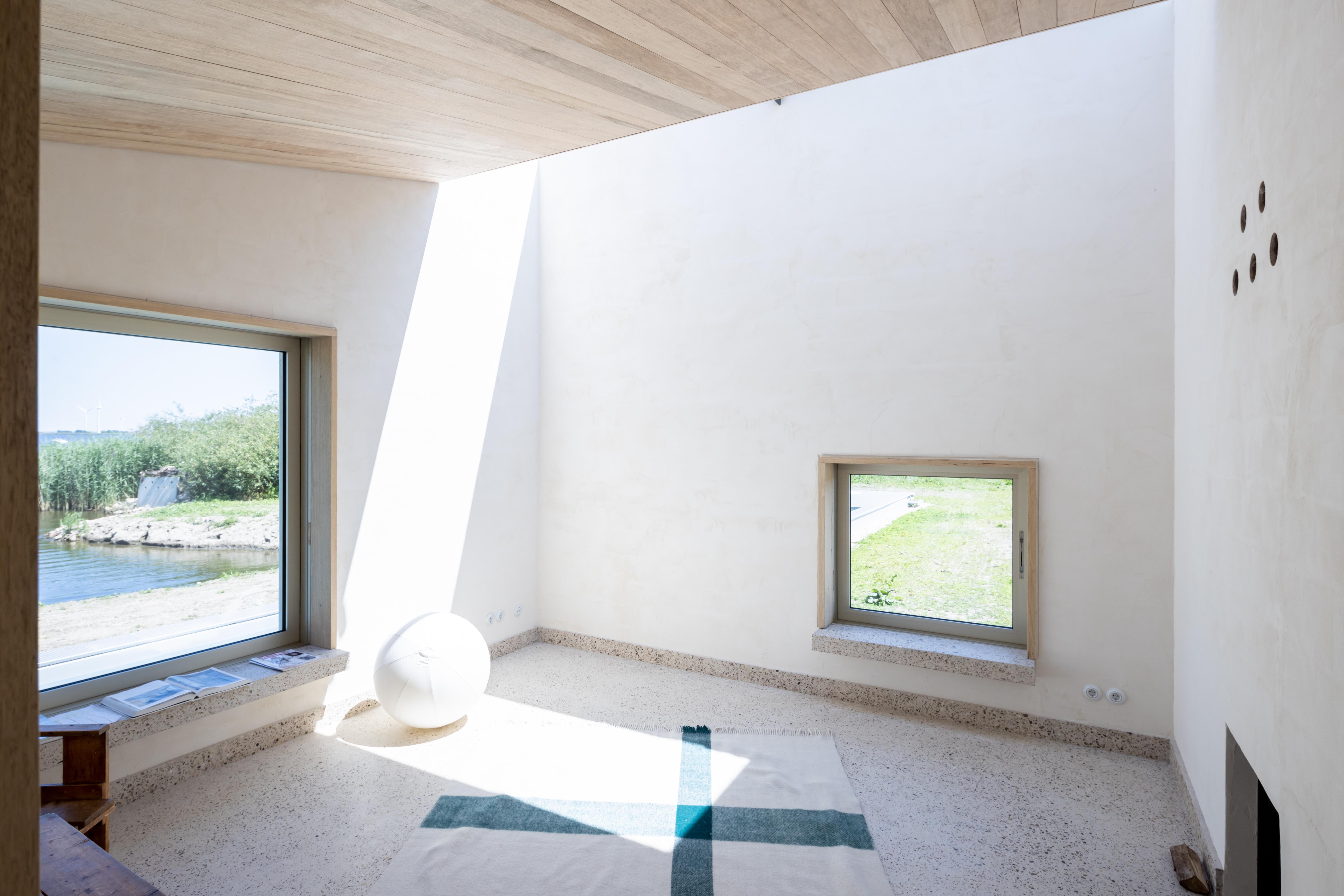 Op de plek waar de Eem uitmondt in het Eemmeer ontwierp De Kort Van Schaik een buitenverblijf als een toevluchtsoord. Het huis laat zijn bewoners het omliggende polderlandschap ten volle beleven, maar biedt ook een omgeving om je in terug te trekken.