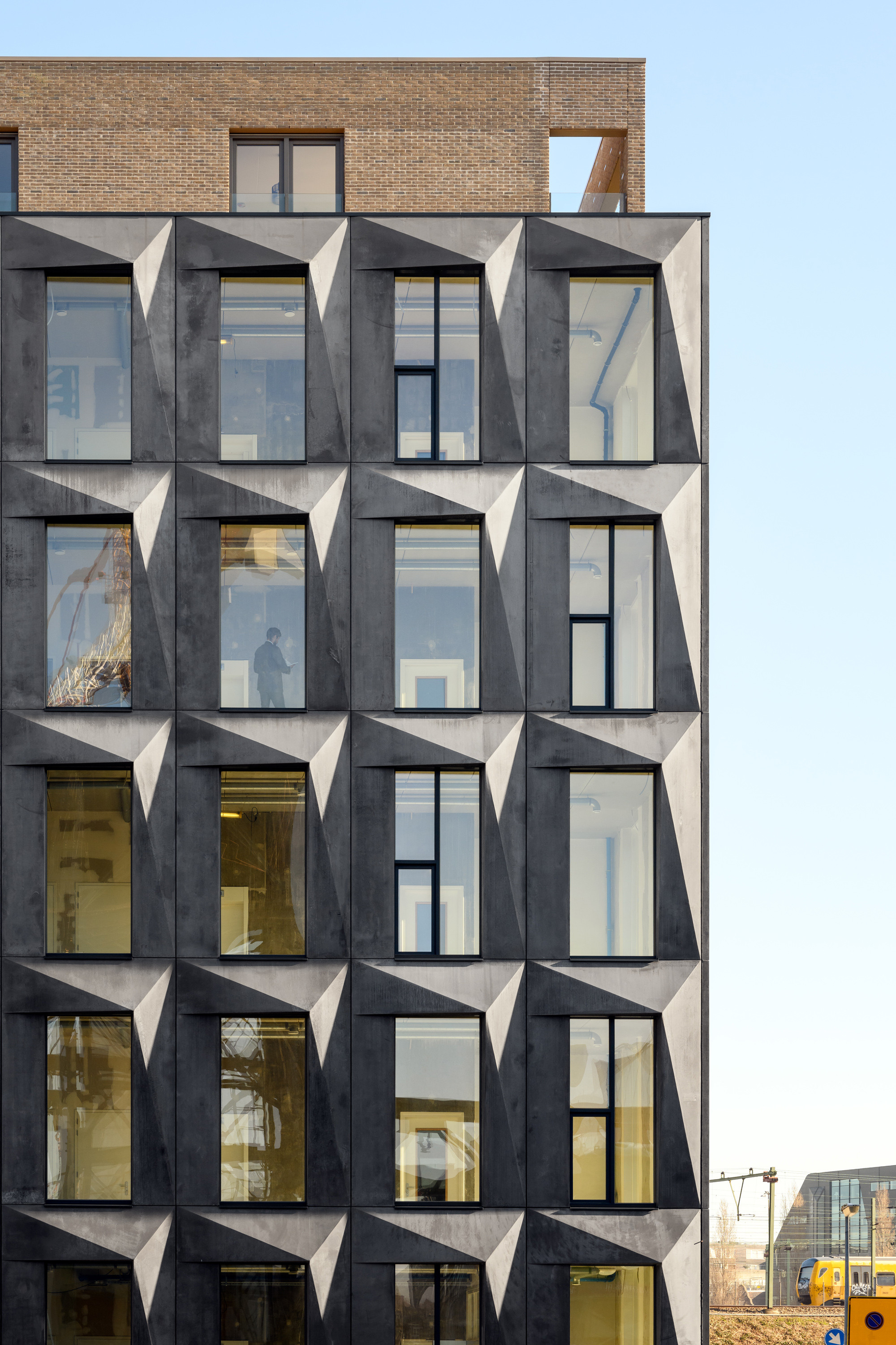 Het ontwerp van de robuuste iconische gevel kwam voort uit een gedegen onderzoek van de historie van het Oostenburger Eiland. Het masterplan vroeg daarnaast om contrasterende gebouwen met een sterke identiteit en een industrieel karakter dat voortborduurt op het ‘rijke’ industriële verleden van het eiland. In de 17e eeuw was op deze exacte locatie namelijk de scheepswerf van de Verenigde Oost-Indische Compagnie gelegen en in de daaropvolgende eeuwen werden in de nog bestaande Van Gendthallen vele locomotieven en machines gebouwd.