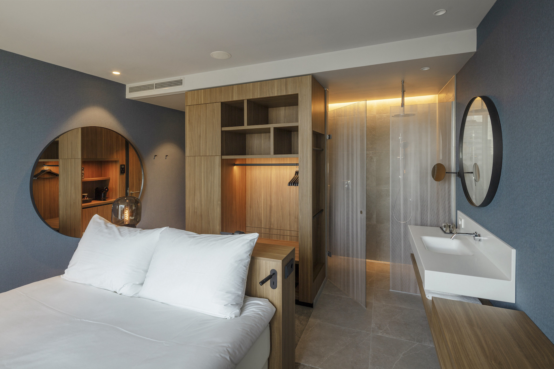 De gebouwvorm die hierdoor ontstaat voor het ‘beddenhuis’ geeft iedere kamer ‘a room with a view’. Vanuit het atriumachtige monumentale centrale trappenhuis vertakken drie gangen zich naar buiten, zodat de 240 kamers van het hotel in elke richting uitzicht hebben. De fitness- en wellnessruimte van het hotel bevindt zich in de punt van de bovenste verdieping, met een prachtig uitzicht over de hele stad.
