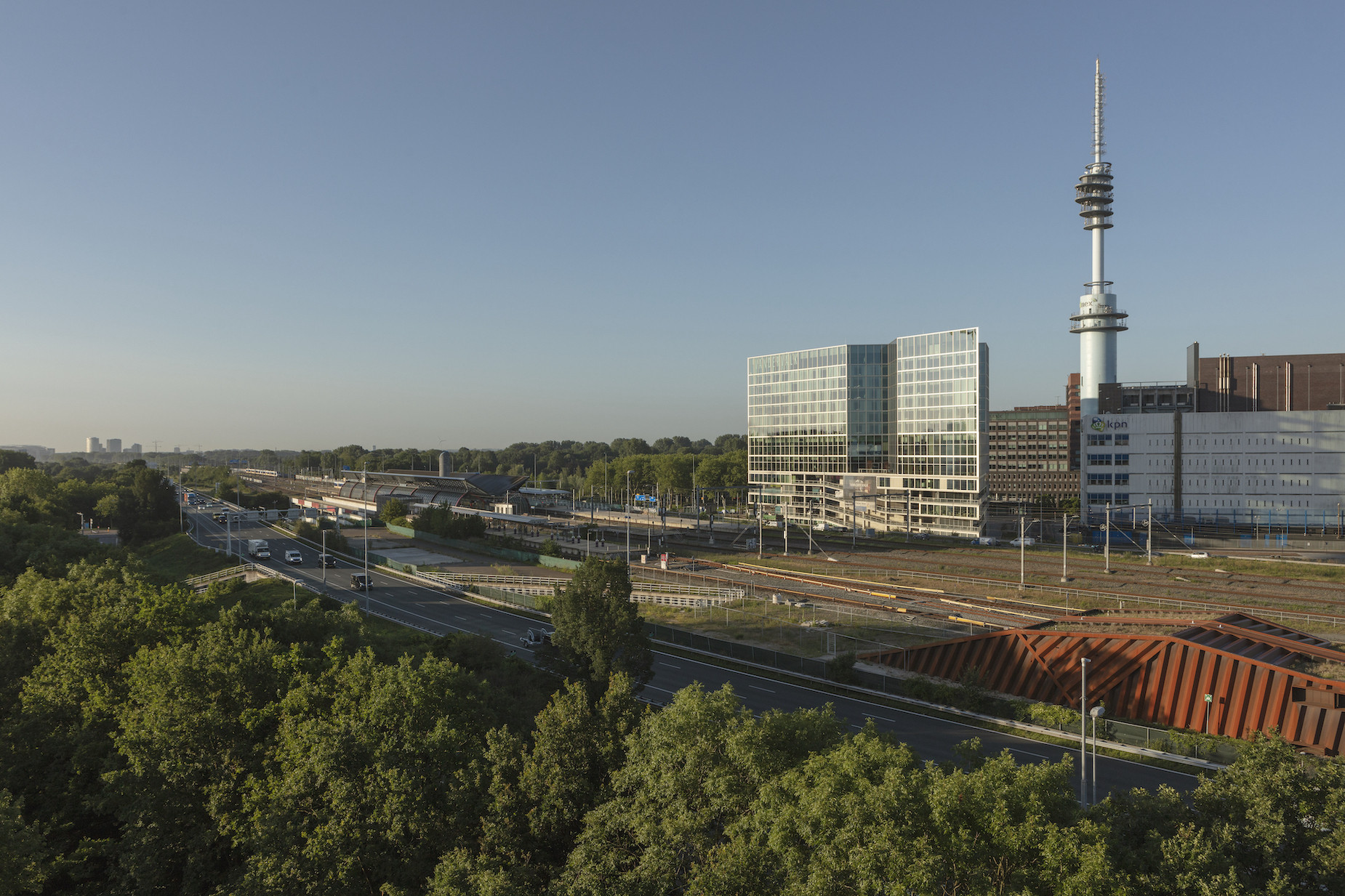 Op een driehoekige locatie, begrensd in breedte en hoogte door het talud van de snelweg, de tramlus van lijn 4, het Liander transformatorstation en de Alticom zendmast, ligt een nieuwe publieke plek van de stad. Middels de nieuwe voetgangersverbinding tussen Station RAI en de kantoren van de Zuidas komt de bezoeker binnen in de ontvangstlobby en de brasserie. Via een in het gebouw geïntegreerde route rijden de auto’s naar één van de vier daarboven gelegen parkeerlobbies waar ook een aantal ateliers voor jonge kunstenaars zijn ondergebracht. Hierboven, op de 5e laag kijkend over de Ring met zicht op de stad, bevinden zich de receptie, de bar en twee restaurants. Een groot terras uitgesneden in de noordgevel geeft de gasten een groene buitenruimte. Op de zesde verdieping, waar de zakelijke bijeenkomst- en congresruimtes zich bevinden, is een inkeping gemaakt in de zuidgevel, waardoor er een tweede terras ontstaat. Een grote monumentale trap brengt de congresbezoeker terug in het restaurant.