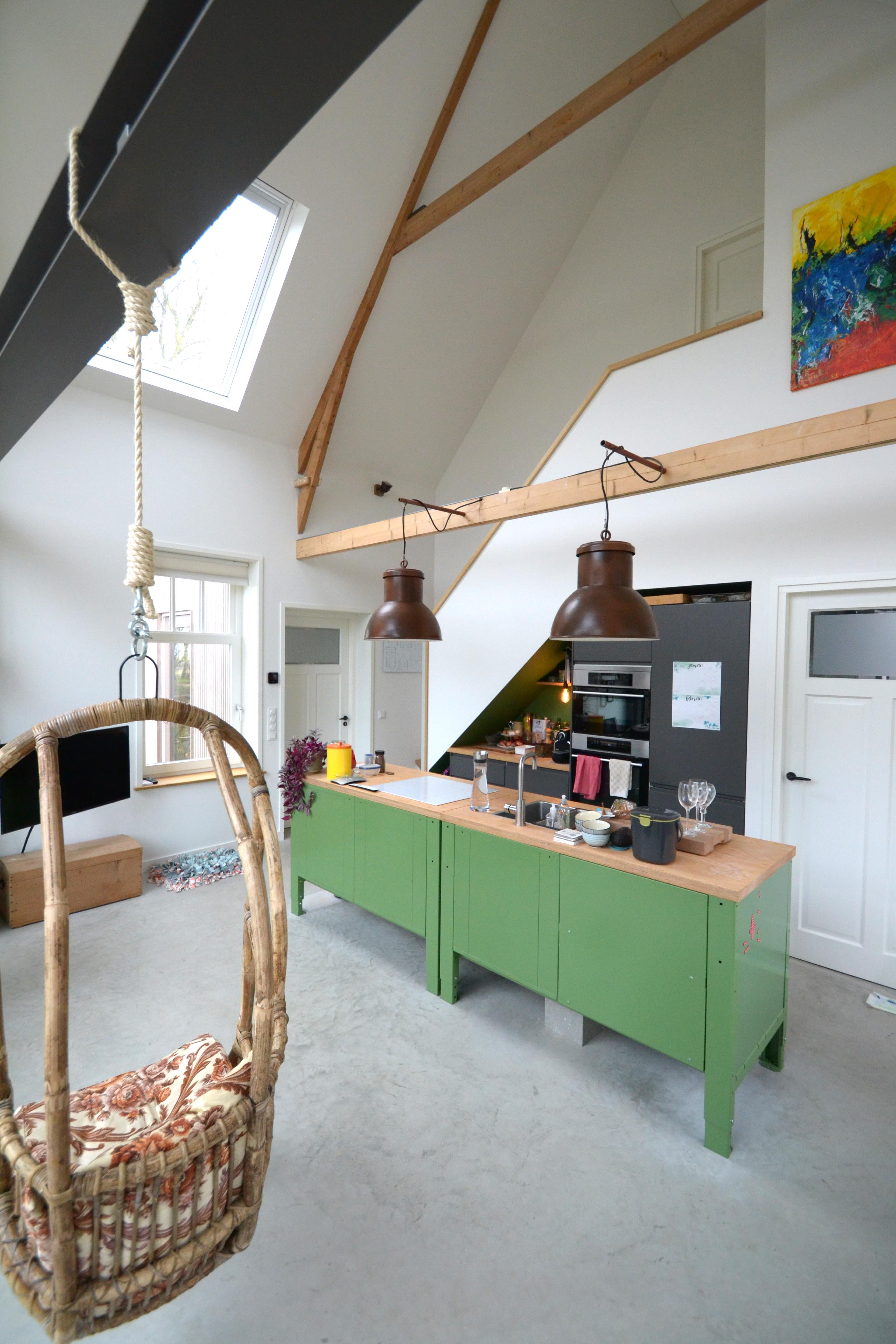 De woning moet uiteraard ook comfort bieden in de winter. Daarom werd overtuigend geïnvesteerd in duurzame maatregelen. Naast de nieuwe hoogwaardige isolatie van vloer, wanden en dak worden alle kozijnen vervangen met geïsoleerd glas. We kozen zo veel mogelijk natuurlijke materialen. Dus geen glaswol maar biologische isolatie. Er komt vloerverwarming in waarbij een warmtepomp voor een prettige temperatuur zorgt. En 21 zonnepanelen liggen nu al op het schuurdak hun werk te doen: schone energie leveren die ingezet wordt voor de kookplaat, de verlichting en verwarming van het douchewater.