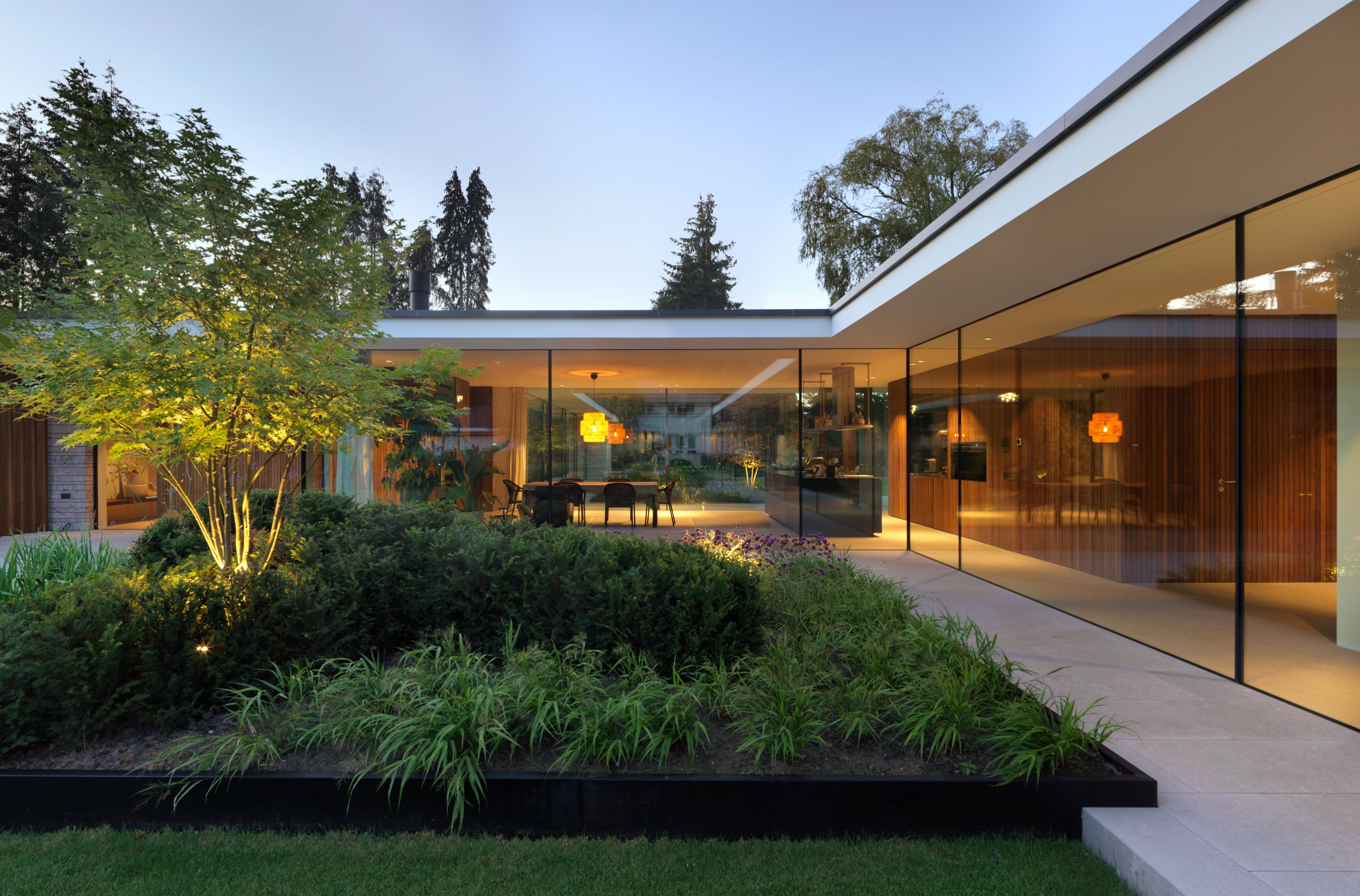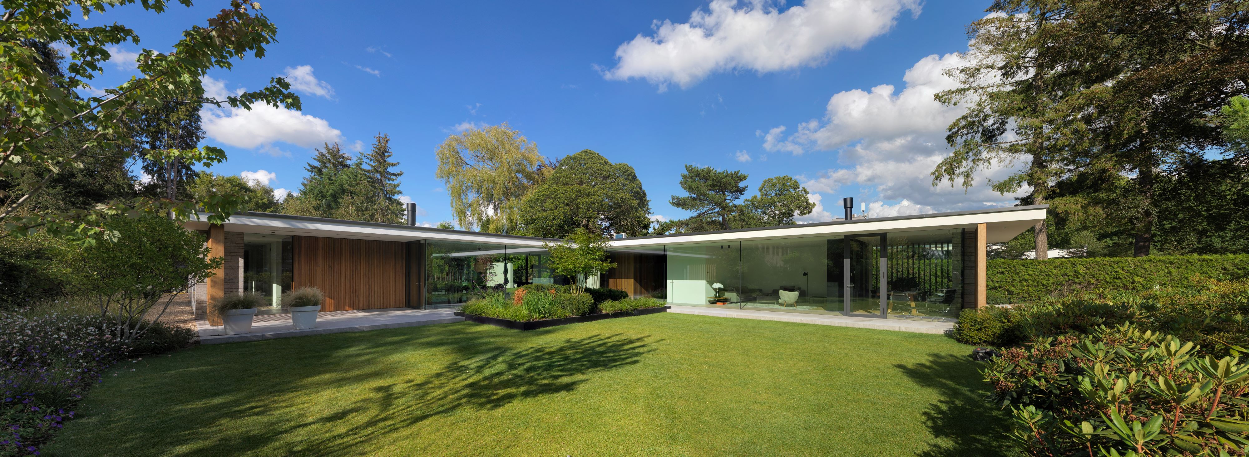 Een kritische opdrachtgever, een ingewikkeld bestemmingsplan en een prachtige context heeft geleid tot een verrassend woonconcept. In het onderzoek naar de ideale woonbeleving behorende bij het bijzondere wensenpakket van de opdrachtgever is er een thematische plattegrond ontwikkelt die zich laat lezen als een wandeling door de tuin en waar binnen en buiten als een integrale ervaring wordt gezien. Vanuit het centrale punt, de keuken lopen twee vleugels punt-symmetrisch naar de uiteinden van de kavel waardoor het gehele terrein ten volle wordt benut.