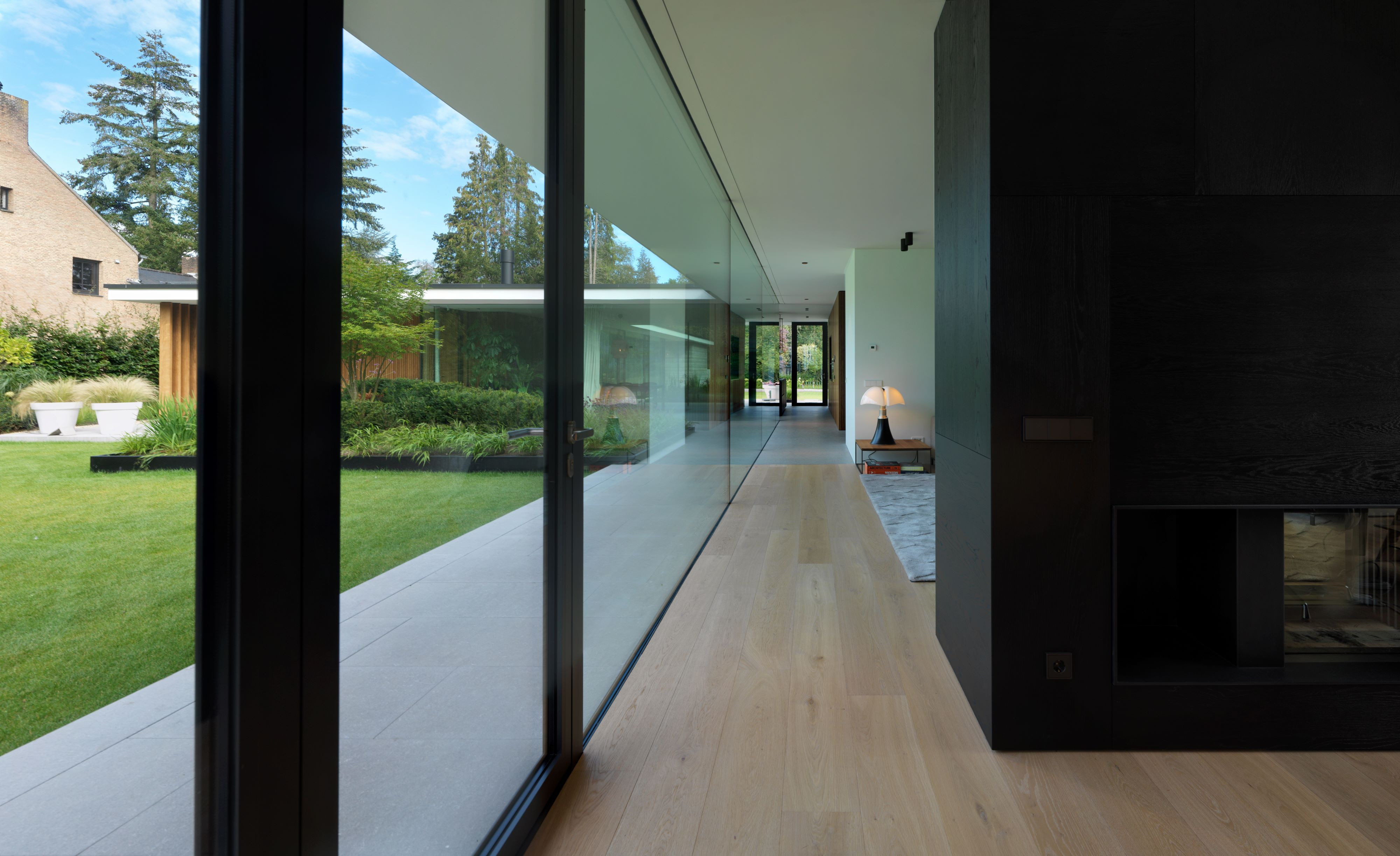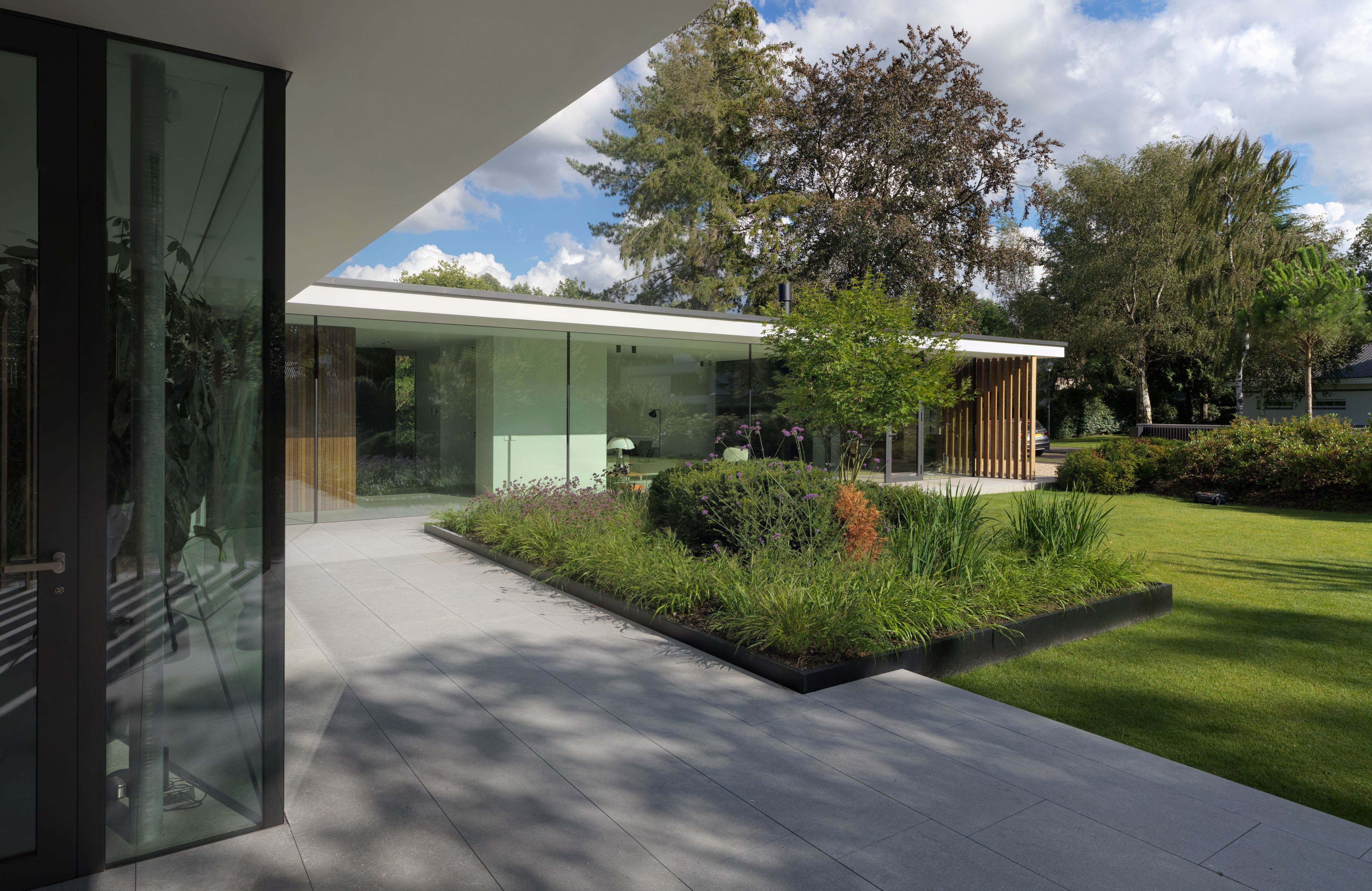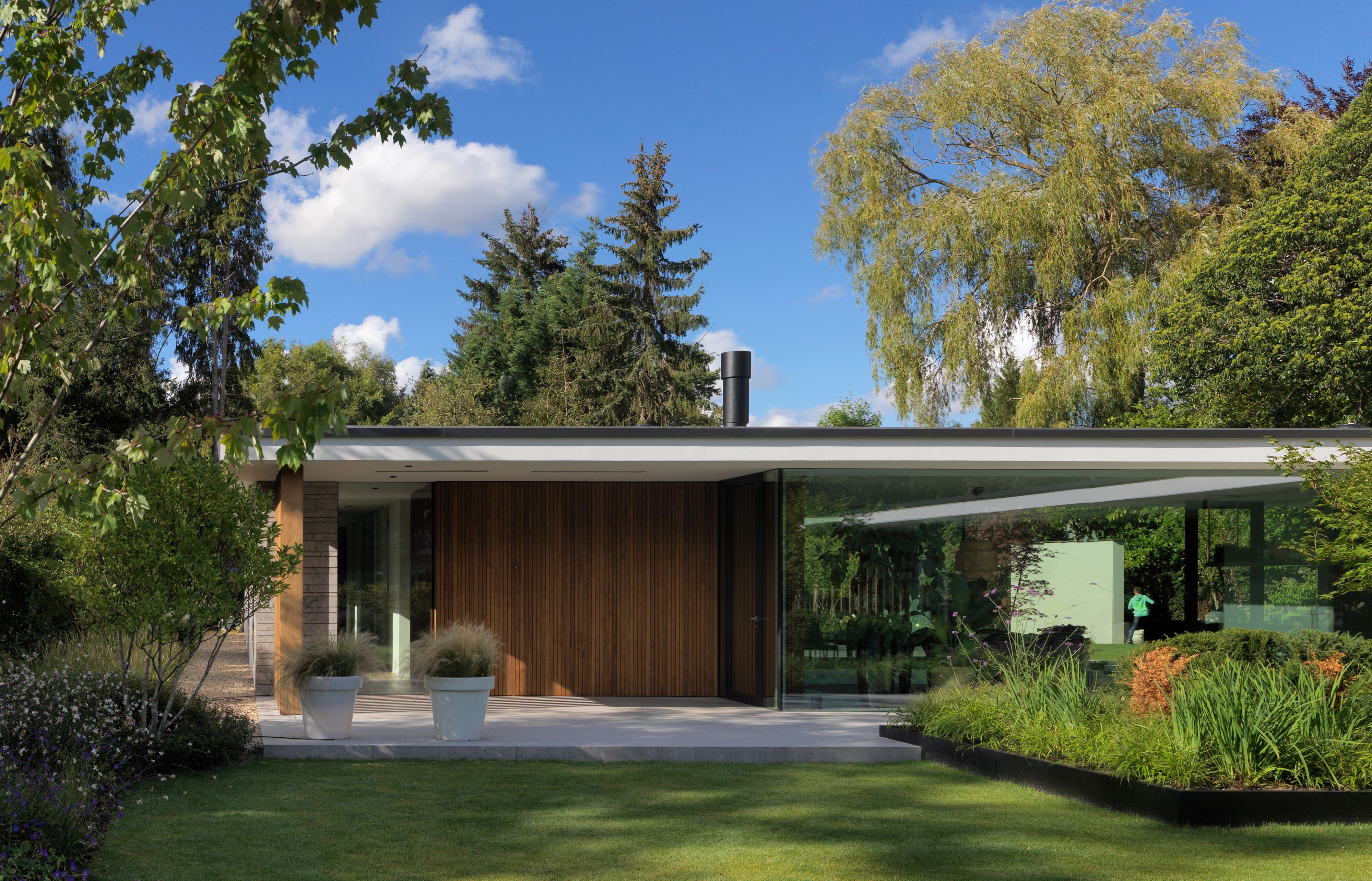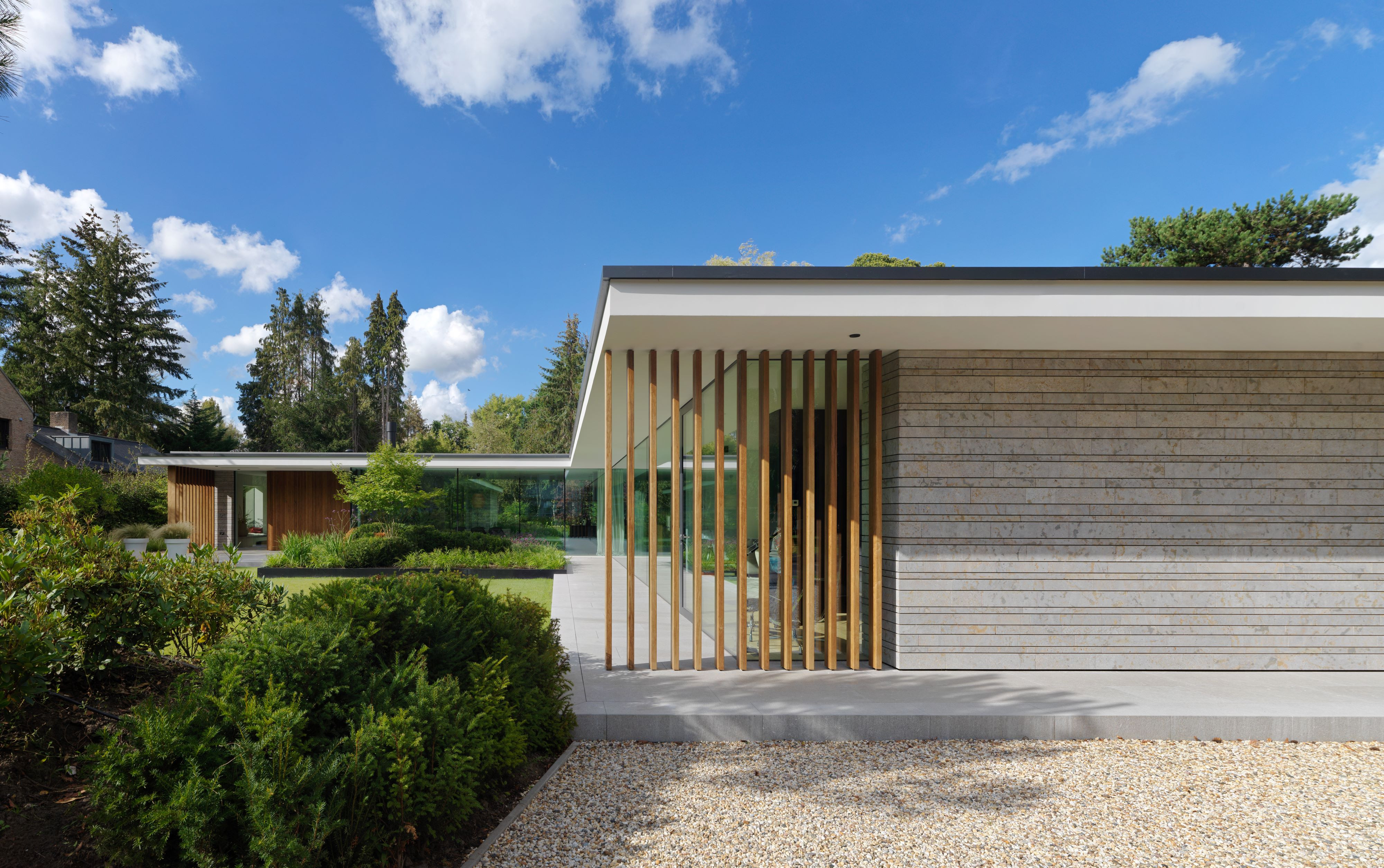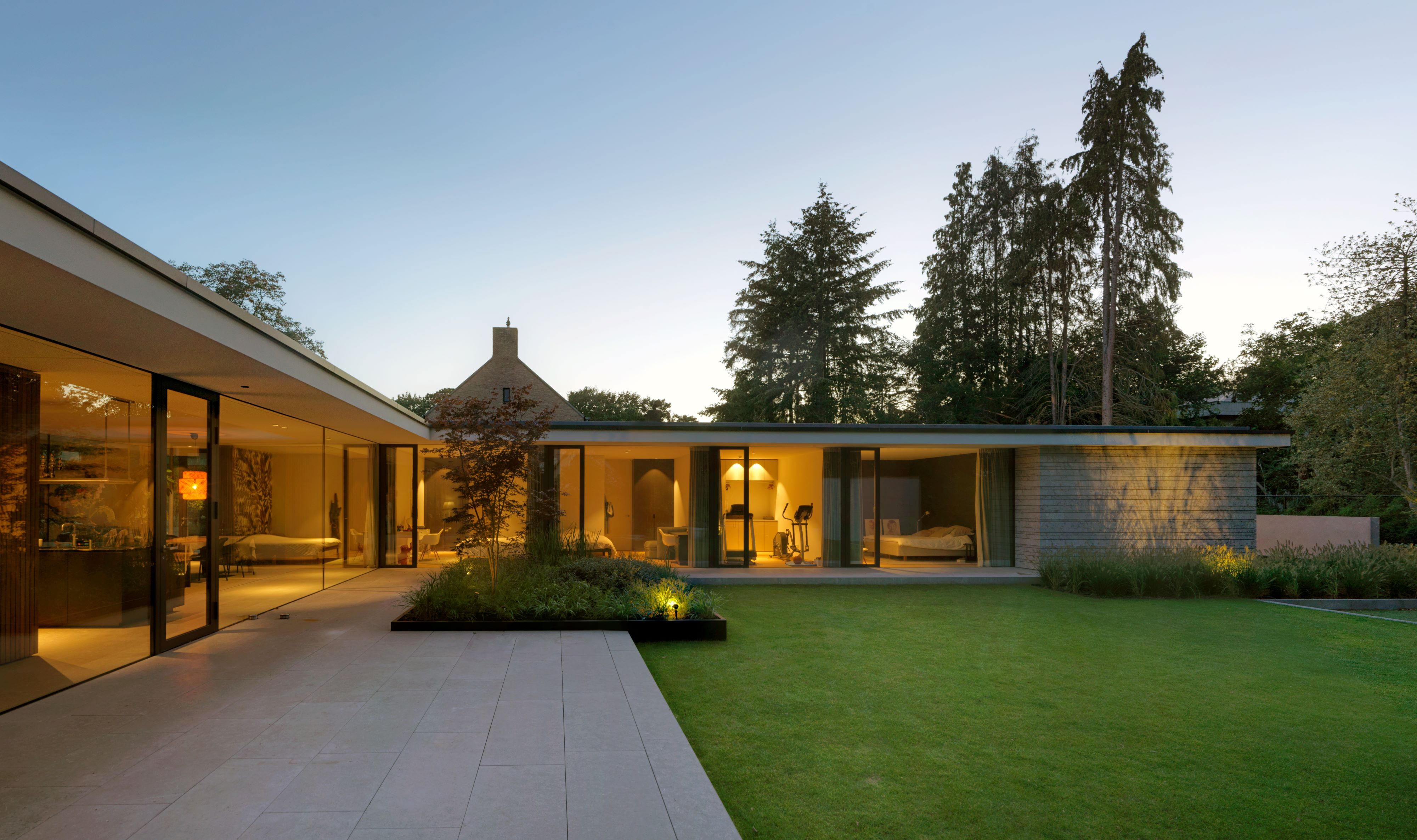 Een kritische opdrachtgever, een ingewikkeld bestemmingsplan en een prachtige context heeft geleid tot een verrassend woonconcept. In het onderzoek naar de ideale woonbeleving behorende bij het bijzondere wensenpakket van de opdrachtgever is er een thematische plattegrond ontwikkelt die zich laat lezen als een wandeling door de tuin. Vanuit het centrale punt, de keuken lopen twee vleugels punt-symmetrisch naar de uiteinden van de kavel waardoor het gehele terrein ten volle wordt benut.