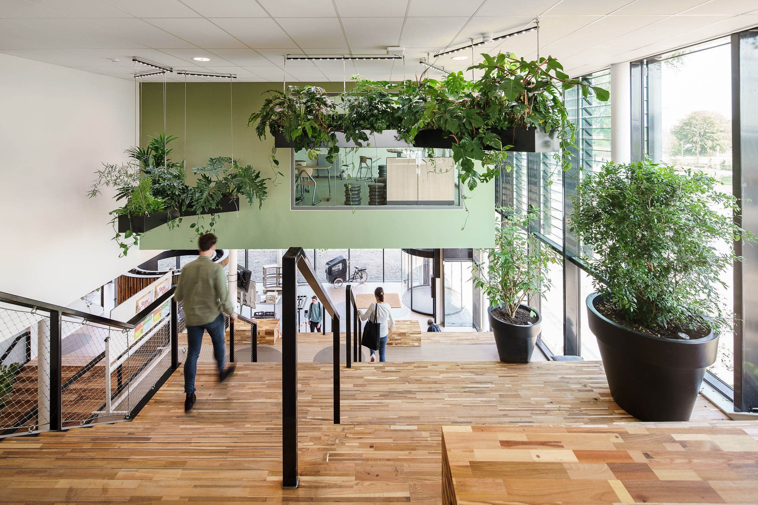 ‘Practice what you preach’ is hier echt toegepast. Aeres Hogeschool Almere leidt studenten op rondom thema's als natuur, leefbaarheid, voorziening van voedsel, water en energie. Kennis die nodig is om de groeiende steden wereldwijd leefbaar te houden. Het ontwerp weerspiegelt zowel de duurzame identiteit van het onderwijs als het centrale thema van Floriade Expo 2022: ‘Growing Green Cities’. ‘Groen’ is dan ook een belangrijke bouwsteen voor de nieuwbouw. Enerzijds als het gaat om duurzame, circulaire en zelfvoorzienende oplossingen. Anderzijds is het letterlijk een groene school. De ‘groene long’ met verschillende soorten groene wanden, planten en bomen, beweegt zich als een landschap door het gebouw, van entree tot dak, en is als living lab onderdeel van het praktijkonderzoek van verschillende lectoraten.