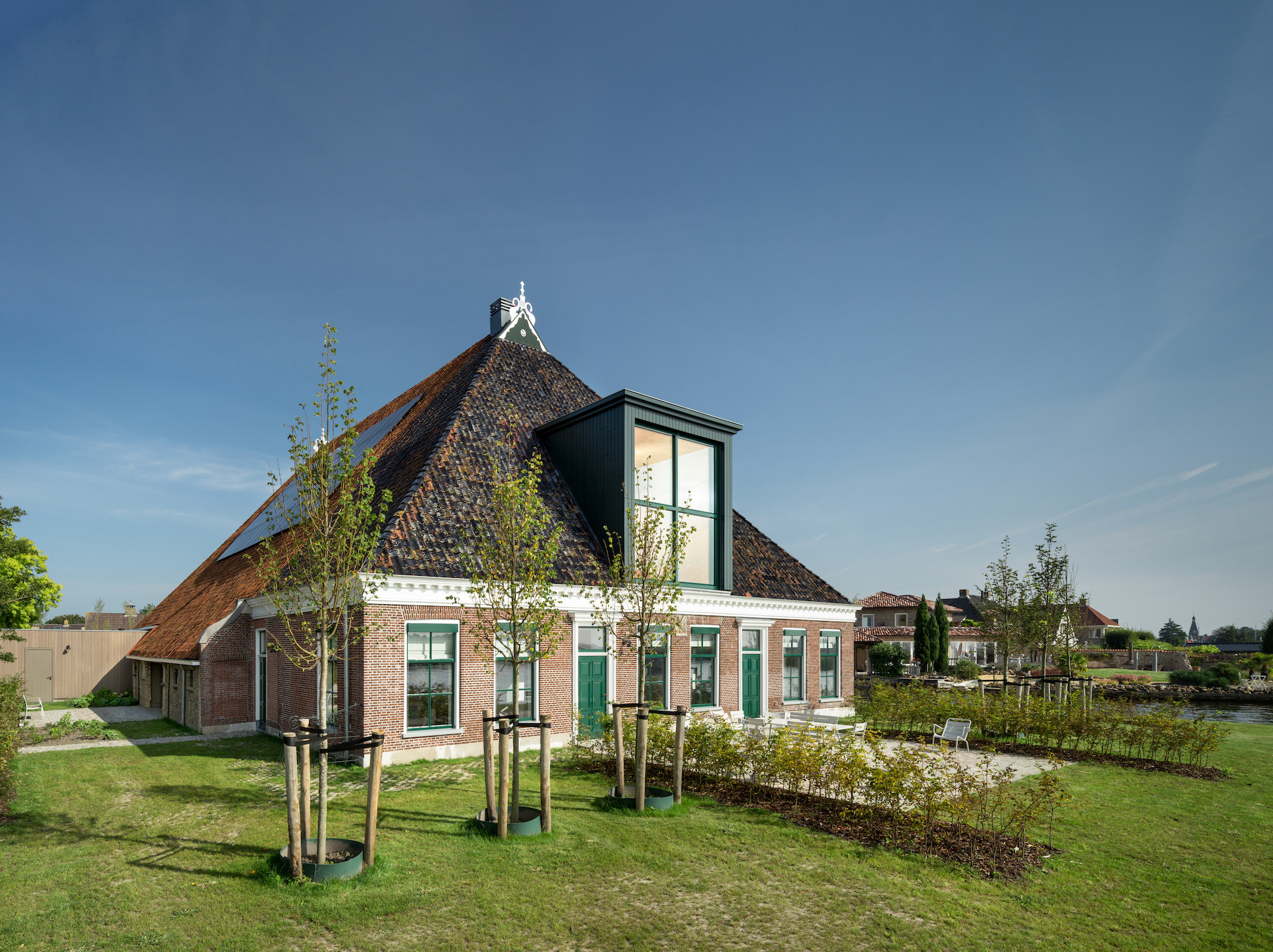 Wat is woongenot? Het is voor iedereen anders. Zeker is dat een Friese boerderij ruimte te over heeft om heel prettig te wonen. Plek zat voor hobby’s die veel ruimte vragen, elke dag een baantje zwemmen en thuis op een prettige manier werken, het is allemaal mogelijk. Als de kinderen met aanhang een lang weekend willen overkomen is dat geen probleem, er is altijd wel een bed beschikbaar. De locatie van de boerderij is perfect. Door het wijdse uitzicht liggen het landschap en de natuur aan je voeten. Het seizoen trekt aan je voorbij, elke dag is het anders. Het stadje heeft genoeg voorzieningen voor de belangrijkste levensbehoeftes. Te bereiken op de fiets, of lopend als je iets meer tijd hebt. Met het sloepje aan de steiger is heel Friesland over het water te bereiken. Het bewonen van een oude boerderij is ook op zichzelf genieten. Je mag de plek een tijdje bewonen, er goed op passen en hem nalaten aan een volgende generatie. In de balken, muren en gebinten zie je sporen van gebruik. De tand des tijds. Je voelt dat er vóór jou anderen waren. Er is geleefd en gewerkt. Dat kan je niet ontwerpen, maar je kunt het wel koesteren.