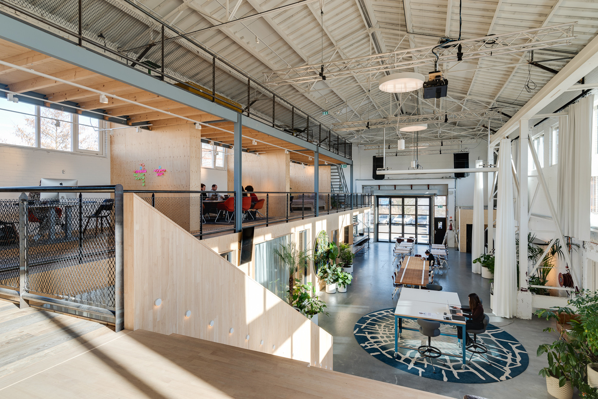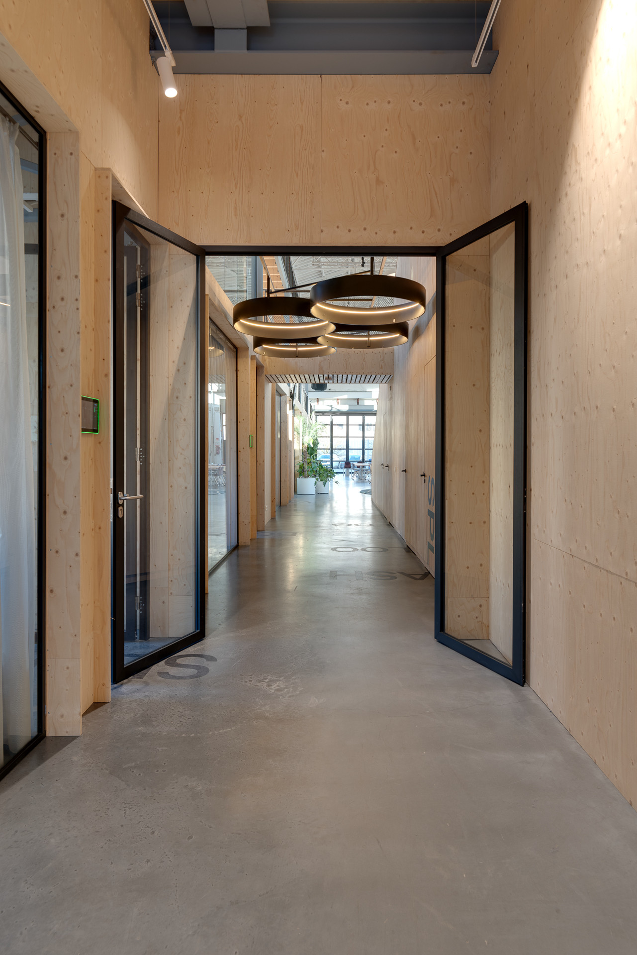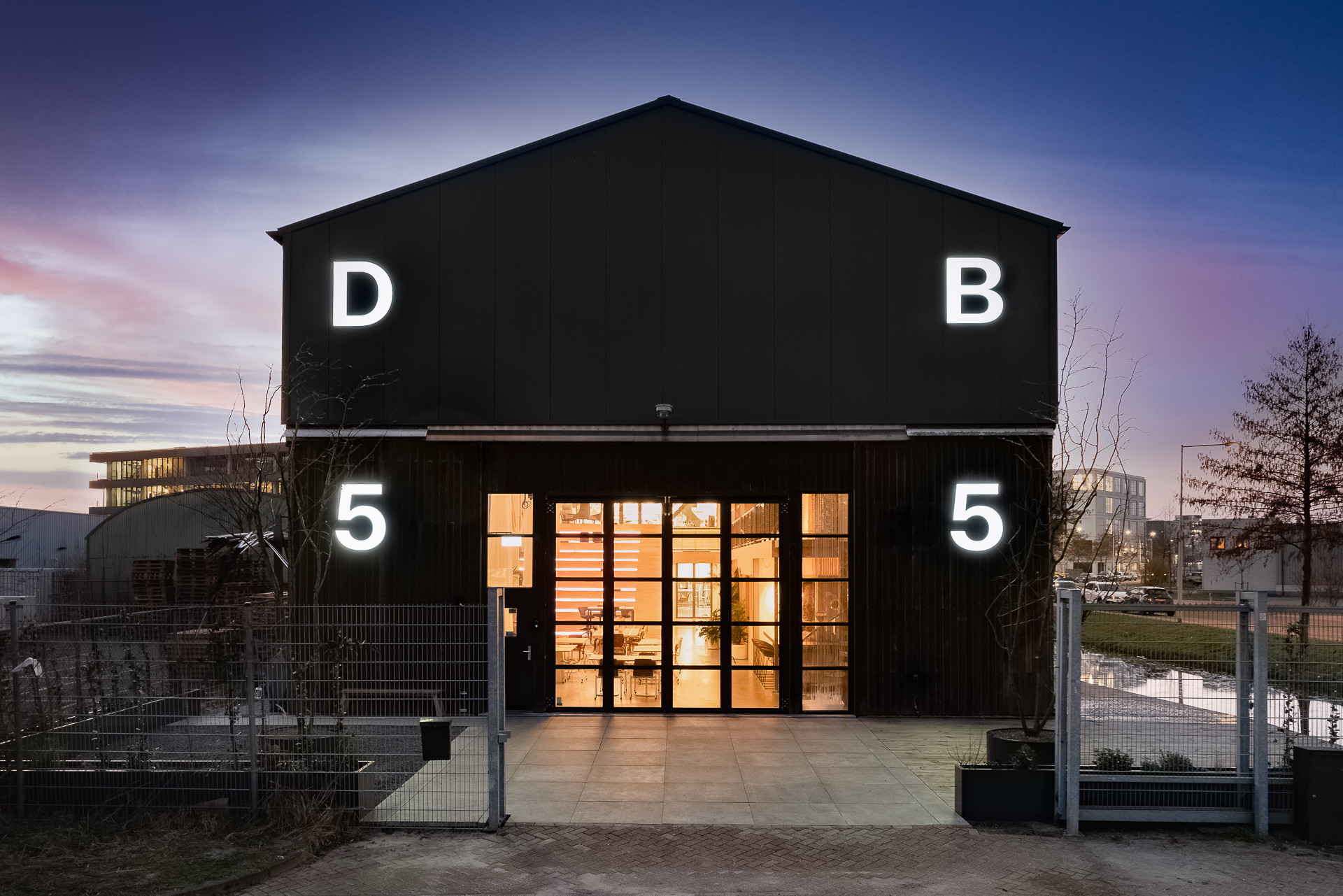 DB55 is een geheel nieuw archetype: blended-use. Een voormalige houtloods is getransformeerd tot een gebouw waarin elke vierkante meter vierdubbel gebruikt wordt.
