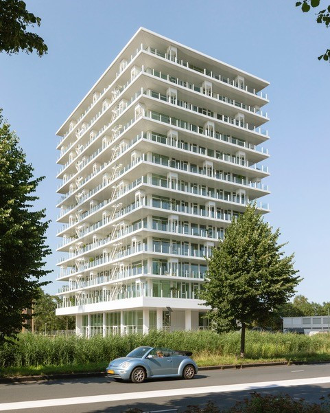 Het voormalige hoofdkantoor van de Postbank en later ING is getransformeerd en huisvest nu 94 appartementen variërend in grootte van studio’s van 30m2 tot en met riante appartementen van 360m2. Elk appartement heeft over zijn volledige breedte een privé terras dat functioneert als een klassieke voortuin met een diepte van maar liefst drie meter. Zo heeft een hoekwoning van bijvoorbeeld 75m2 een voortuin van 45m2, en kan daarmee ook concurreren met een klassieke grondgebonden woning.