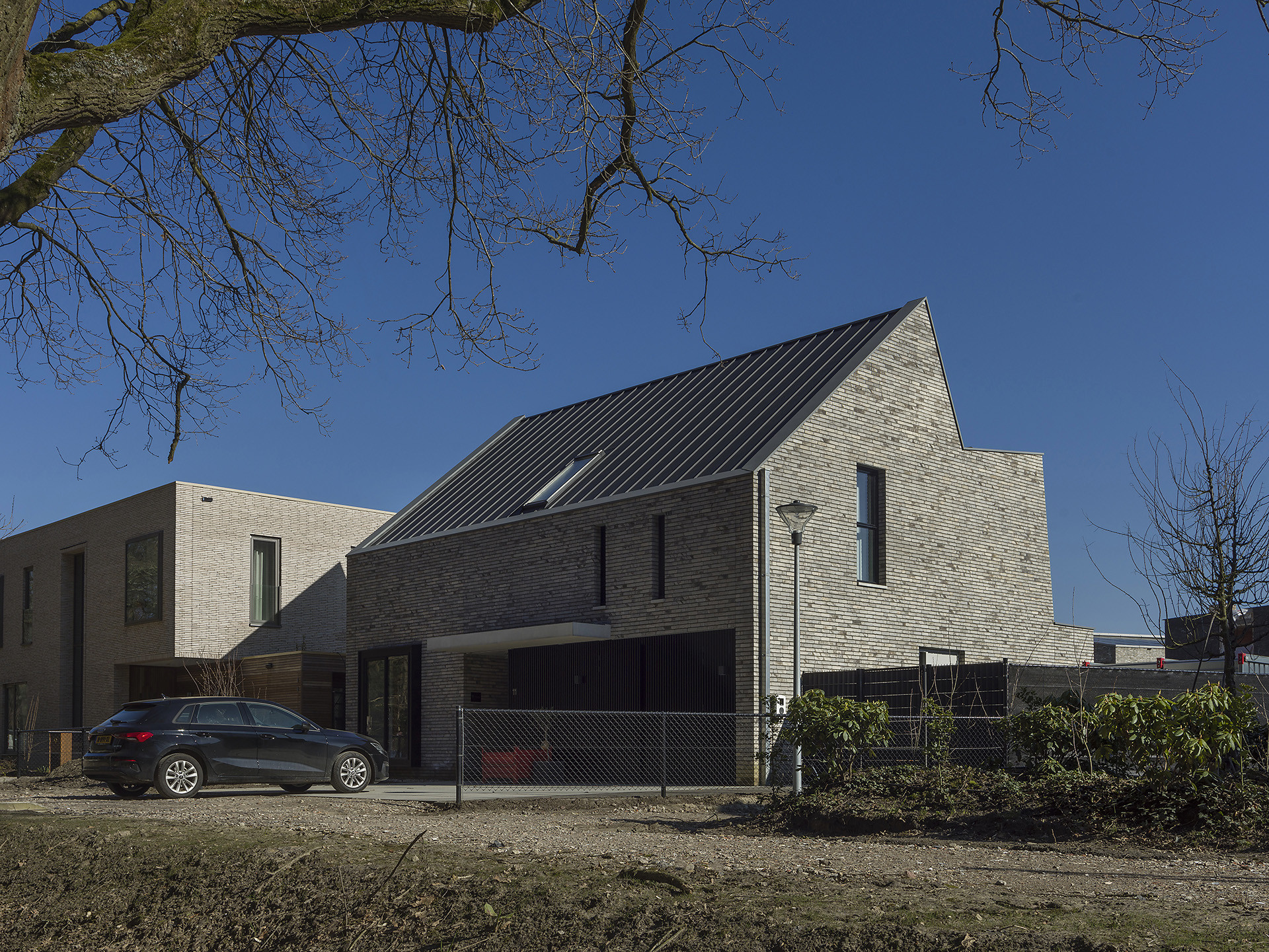 In een nieuwbouwwijk in Strijp, Eindhoven werd gevraagd een karakteristieke woning te ontwerpen met verwijzingen naar het industriële erfgoed van Philips.