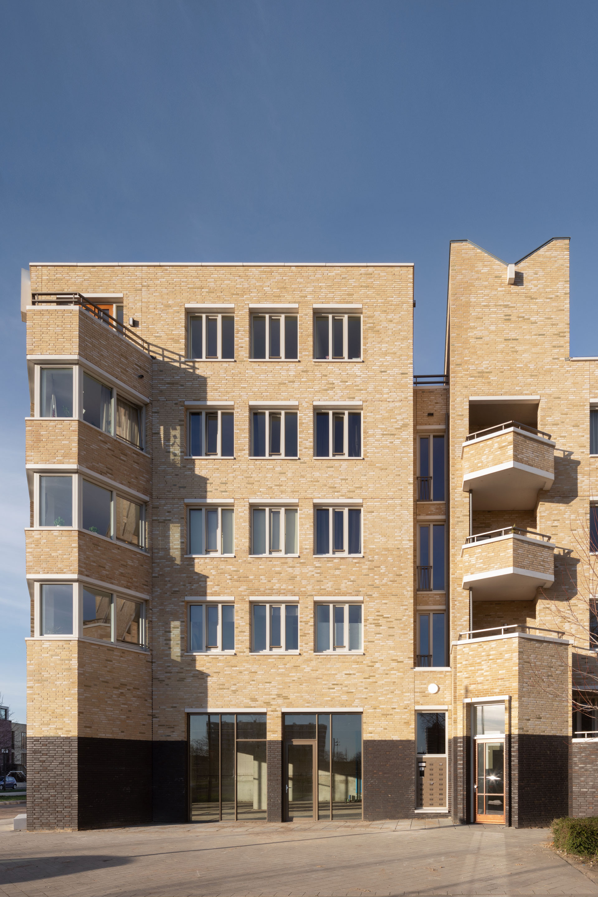 Het woongebouw bestaat uit 23 appartementen van 57, tot 75m2, 6 grondgebonden woningen en een commerciële ruimte. In de uitvraag van deze beperkte VO+ opdracht werd al meteen een handreiking voor de gewenste opzet meegegeven: Slechts de gevel moest nog gemaakt worden!