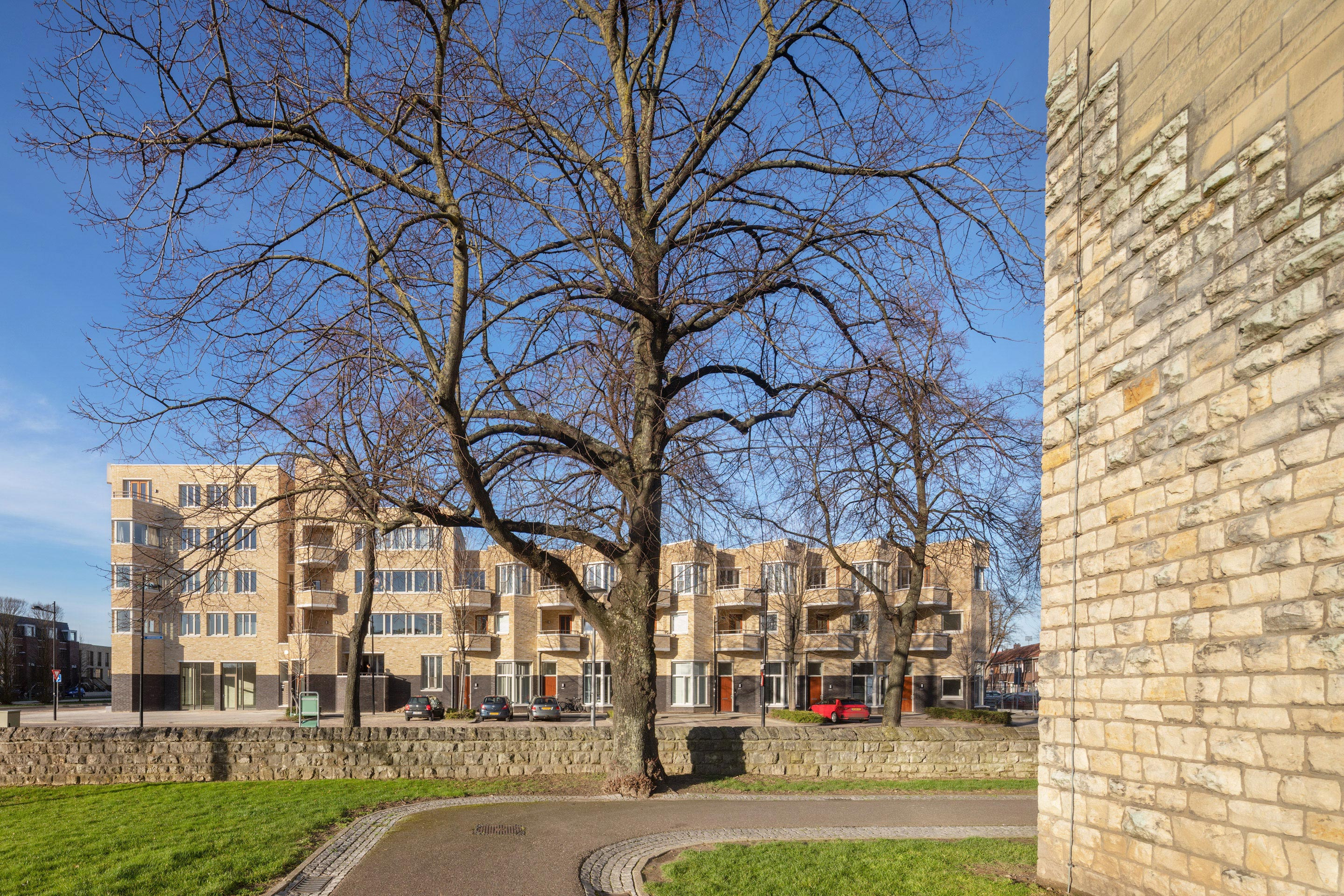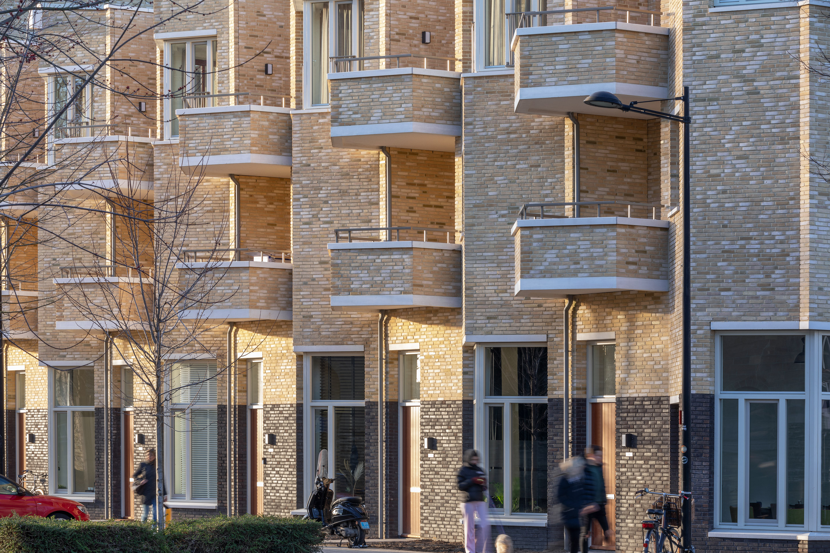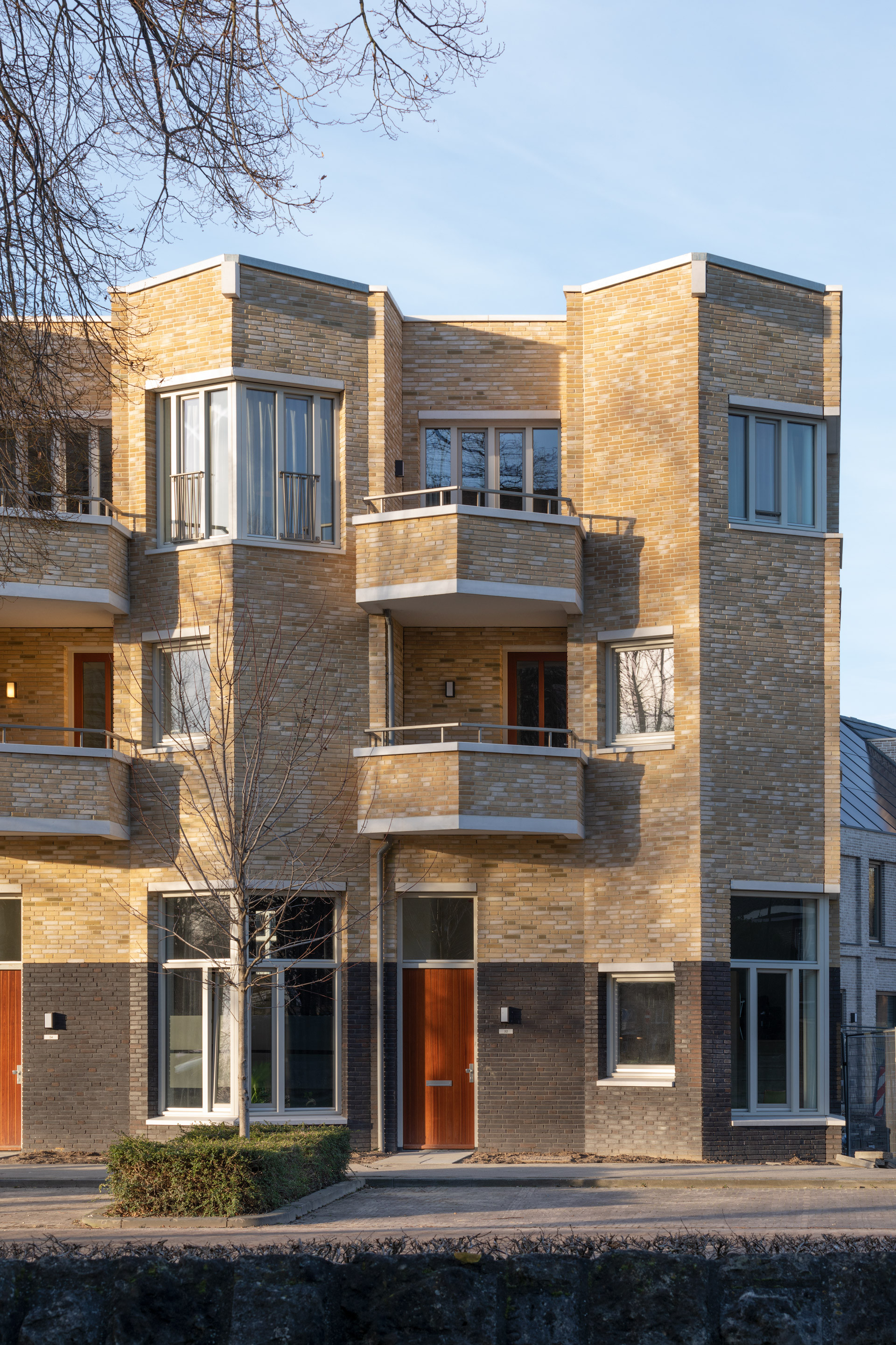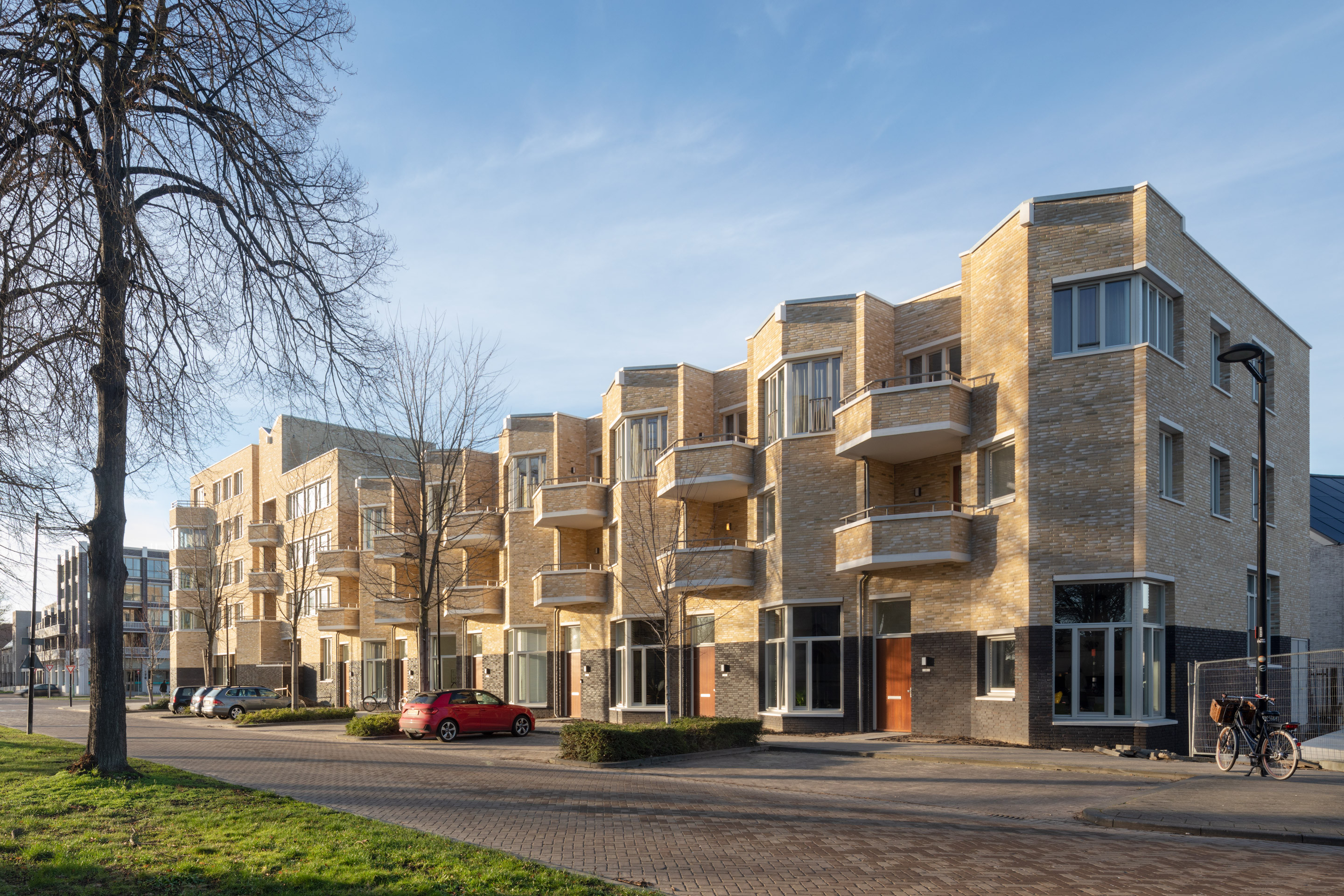 In de tenderfase onderzochten we de architectonische kenmerken en een woningtypologie die geschikt zouden zijn voor de invulling van de bouwkavels langs de Laan. Geïnspireerd op het wonen aan de Singels uit de 19e eeuw in Maastricht, Aachen, Luik en Antwerpen. De woonvorm, de architectonische elementen en het formeren van verschillende programma’s tot een stedelijke straatwand werden onder de loep genomen. Bij de grondgebonden woningen worden niet de individuele woningen als pandjes naast elkaar uitgedrukt, maar ze worden samengesteld tot kleine ensembles om een juiste schaal te bereiken. De ensembles worden aaneengeregen tot een gevarieerde straatwand. Het verticale ritme van de gevelwand wordt niet alleen bepaald door de opeenvolgende percelen maar door een korter ritme van raamopeningen, penaten, erkers en entrees. Het wordt één geheel. De appartementengebouwen drukken niet het gebruikelijke rijgen en stapelen van plattegronden uit, maar zoeken eveneens naar een eigen ‘ritme’. Tussen de aaneengeregen appartementenblokjes en woningensembles kunnen incidenteel wel breuken, variaties en contrasten ontstaan. We leerden dat van de Maastrichtse architect Boosten (1893-1951), wiens gevels we eerder als referentie opgevoerd hadden. Dat de plasticiteit in de gevel, waar de erker het contact met de straat maakt, in de laatste meter tot stand komt. Met deze principes probeerden we in dit project een eigen plastische gevelopbouw te maken, die niet direct de achterliggende functie van woonkamer en balkon uitdrukt.En natuurlijk het moeilijkste van deze opgave: Een passende toon te vinden ten opzichte van de prachtige kerk (Arch. F. Peutz 1936) uit Kunrader- en Sibbermergel aan de overkant in schaal en in kleur.
