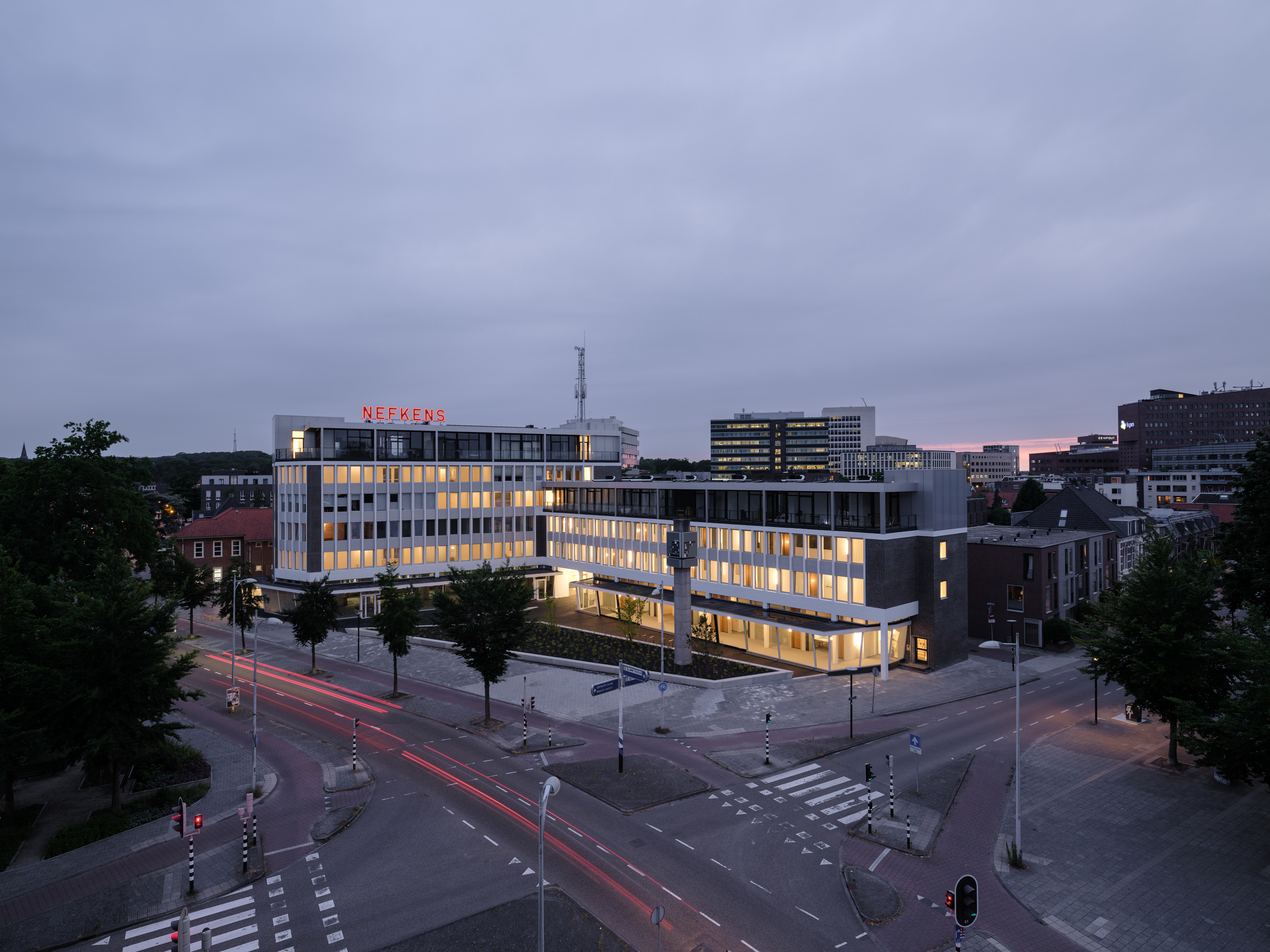 Het Nefkens gebouw in Amersfoort is getransformeerd tot woongebouw. Daarbij is de leefbaarheid van het gebouw en zijn omgeving aanzienlijk verbeterd. Met een onderdoorgang en vergroening is het gebouw beter verbonden met zijn omgeving. Royale balkons en terrassen laten de voorheen inactieve achterzijde tot leven komen.