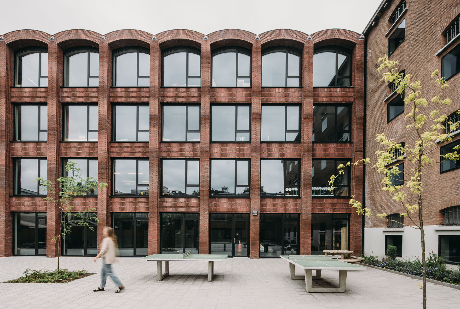 • Ook het iconische gebouw zelf werd hersteld door de restauratie. Daarbij is voor de nieuwe functie gebruik gemaakt van de eigenheid van het gebouwtype (kruisgevangenis waarbij elke vleugel een school werd) met haar routing en stedelijk morfologie. Verflagen en slordige reparaties zijn weggehaald en de zachtgele steen in de gevangenis geven een aangename sfeer. Ook de glaskoepel is hersteld. Tijdens de kerst stond er een enorme kerstboom en galmde liederen in de vernieuwde gaanderijen.