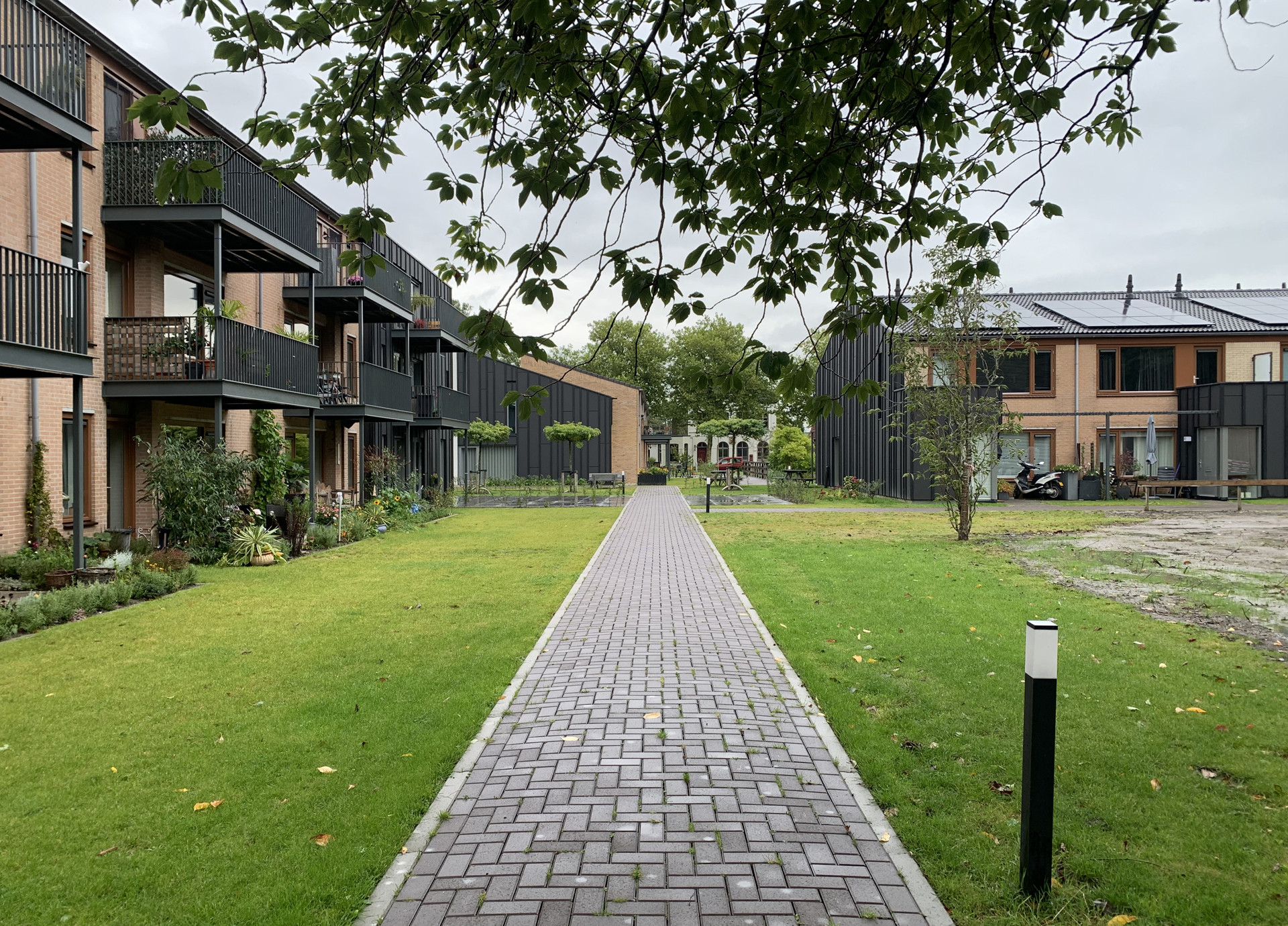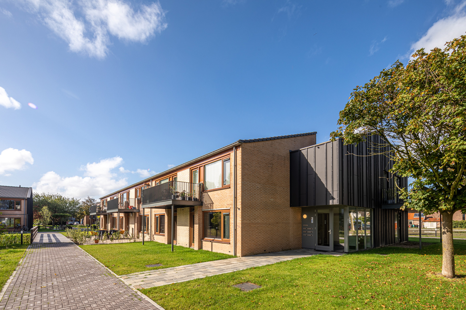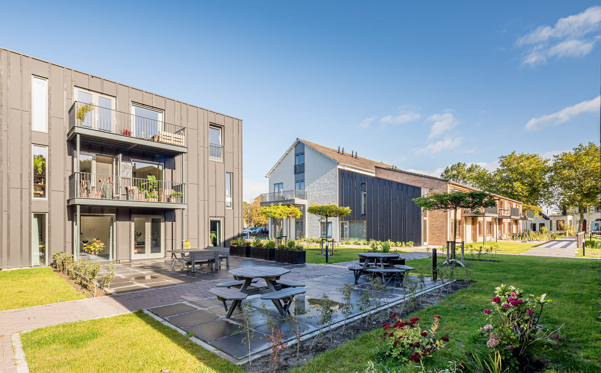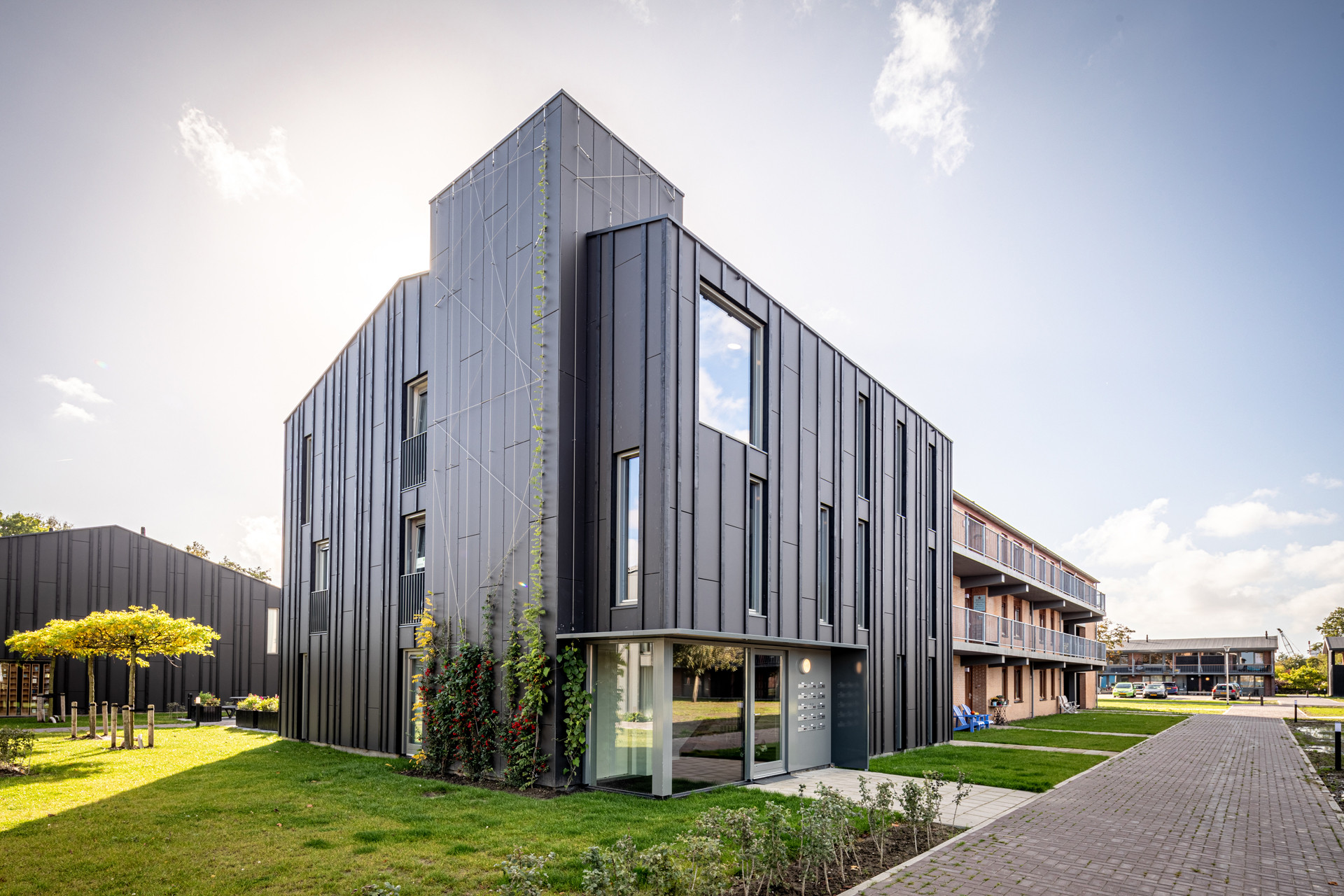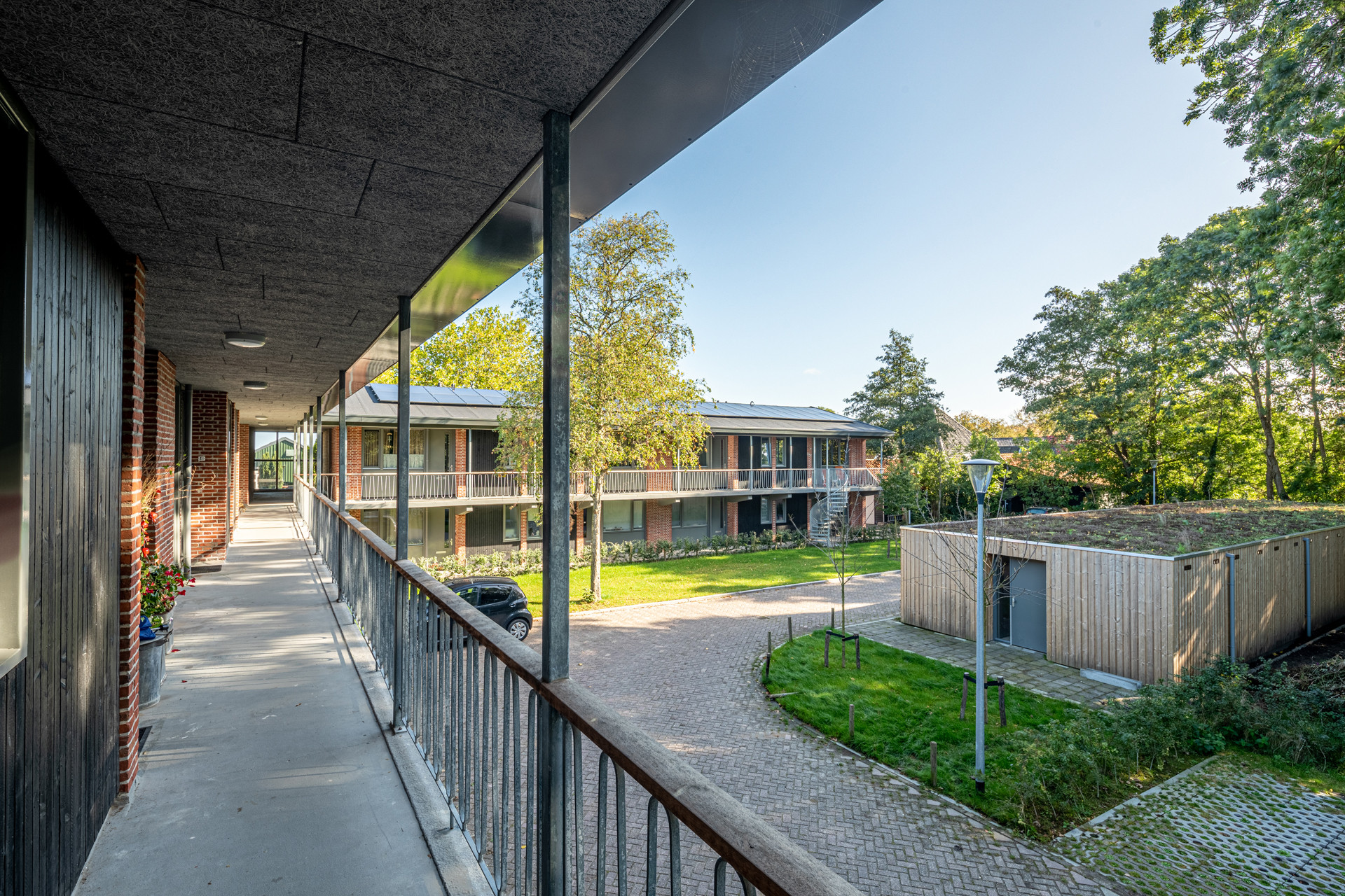 Met de Wooncompagnie is onderzocht of de bestaande gebouwen en het park behouden konden blijven. Die keuze heeft zowel sociaal als qua circulariteit een grote impact gehad. Door te waarderen welke kwaliteiten er al waren, werd het mogelijk om te zoeken naar kleine en grotere verbeteringen. Zo was het voldoende om op strategische plekken iets weg te laten om het institutionele zorgkarakter te doorbreken.