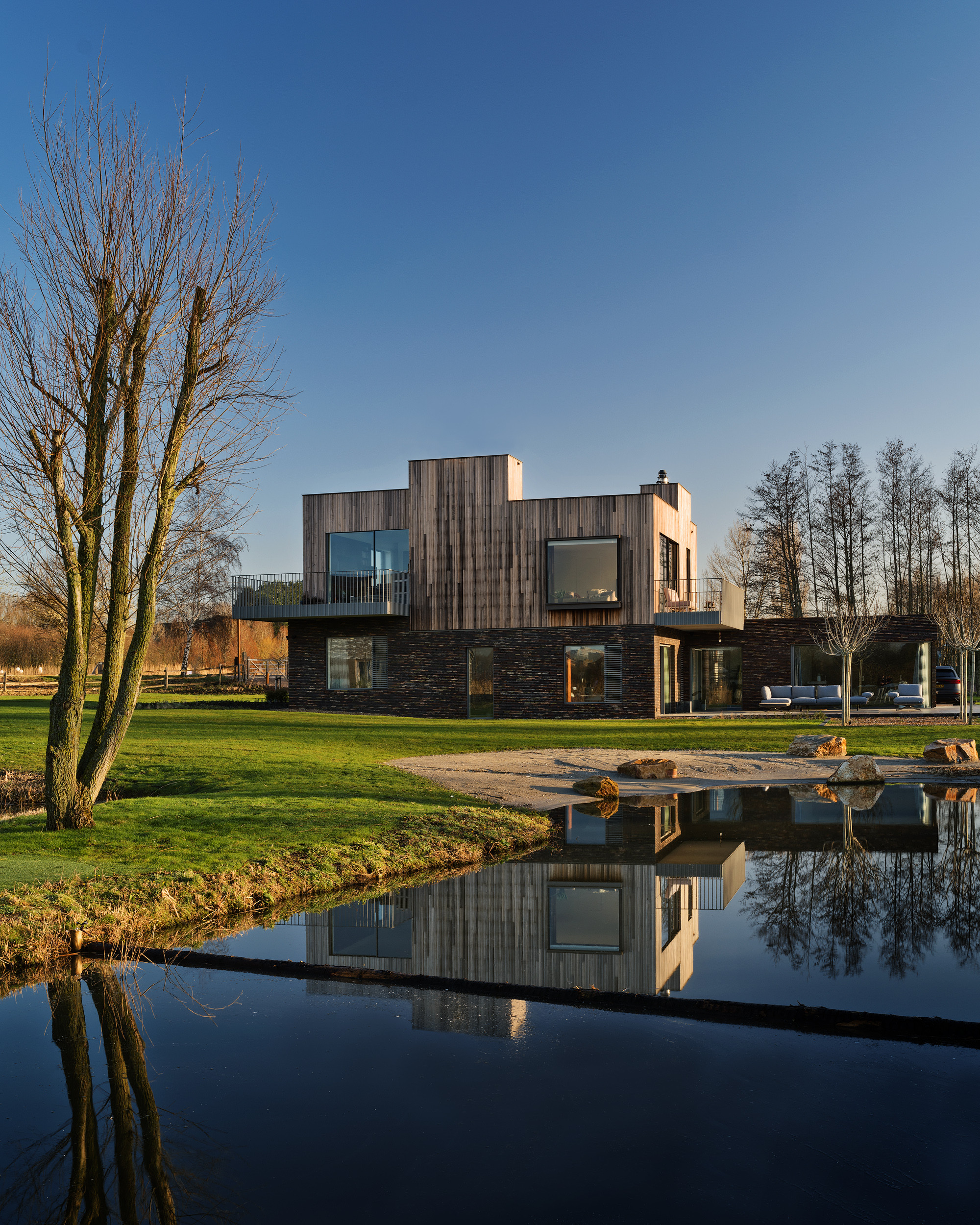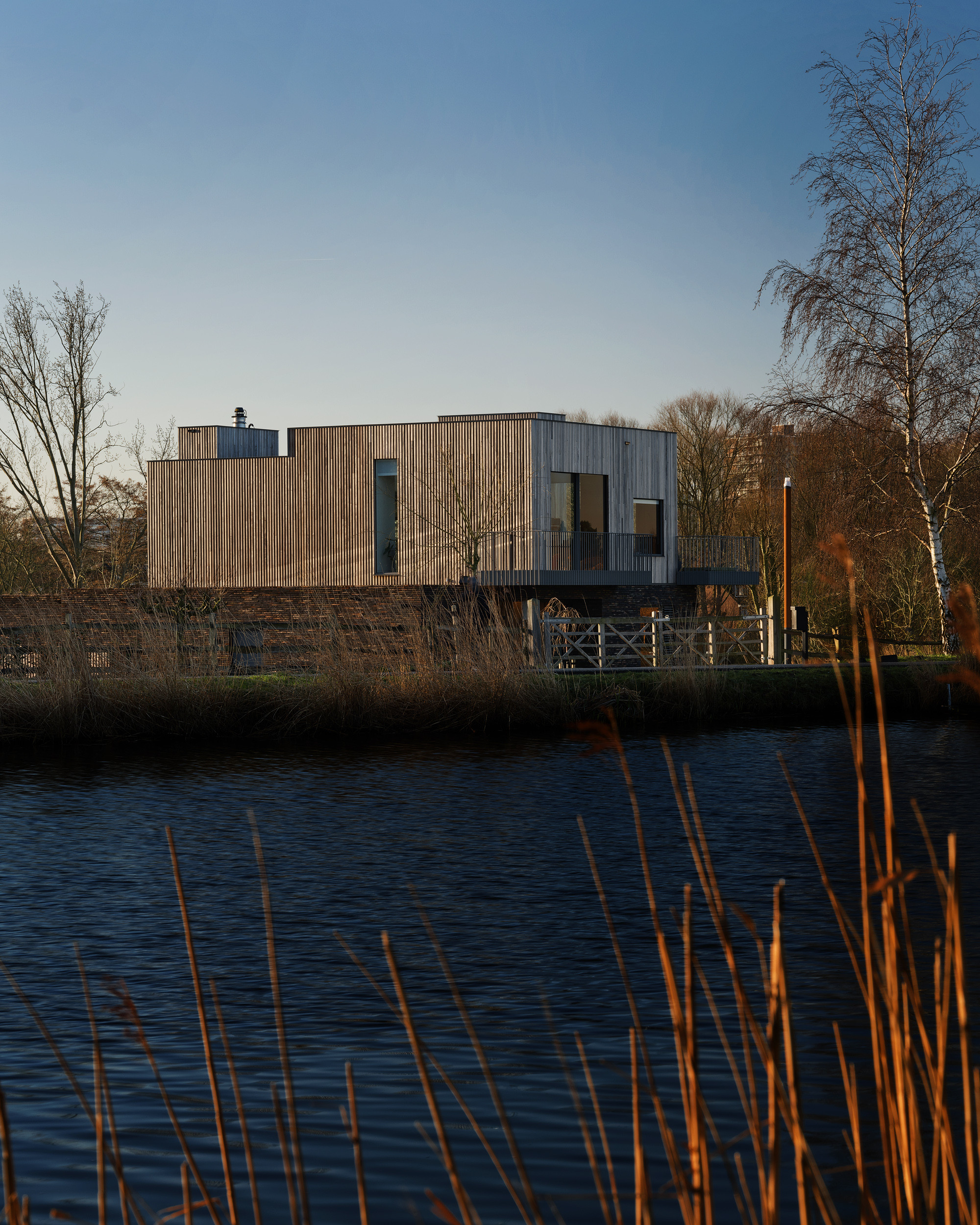 Aan de prachtige Rotterdamse veenrivier de Rotte heeft Bureau Ha Architecten in samenwerking met Paul van den Heuvel een krachtig en puur woonhuis gerealiseerd. De omgeving presenteert elke dag een ander schilderij in de grote raamkaders van het woonhuis. De natuur komt met al haar kleuren, vormen en activiteit subtiel binnen. Puur natuur beleven.