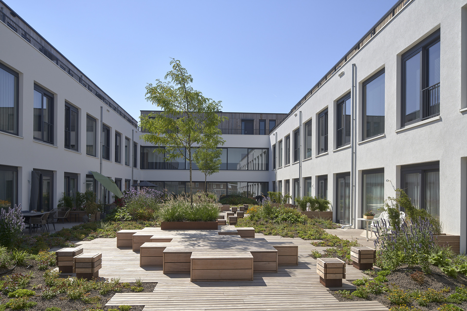 Voor Grosfeld Bekkers van der Velde was het belangrijk dat er een associatie moest komen met het gebouw dat in de jaren ‘50 gebouwd is en in het collectieve geheugen van veel Bergenaren is blijven ‘hangen’. Ook in dat van de nieuwe bewoners. Uitdaging was dat het oude pand naar binnen gericht was, vrij gesloten en een sterke focus op de plint kende. De oplossing moest zijn dat het gebouw enerzijds tegemoet zou komen aan het kloeke en stevige V&D gebouw van toen en anderzijds de nieuwe woonfunctie goed zou laten doorklinken. Daarom is besloten het hart uit het gebouw te halen om zo voldoende daglicht in de kern te creëren. Hiermee kon de structuur gehandhaaft blijven en kon er een stevig programma gemaakt worden, waarbij het niet alleen gaat om gebouw wonen aan de buitenkant (publieke ruimte), maar ook om wonen aan de binnenkant en op het dak.
