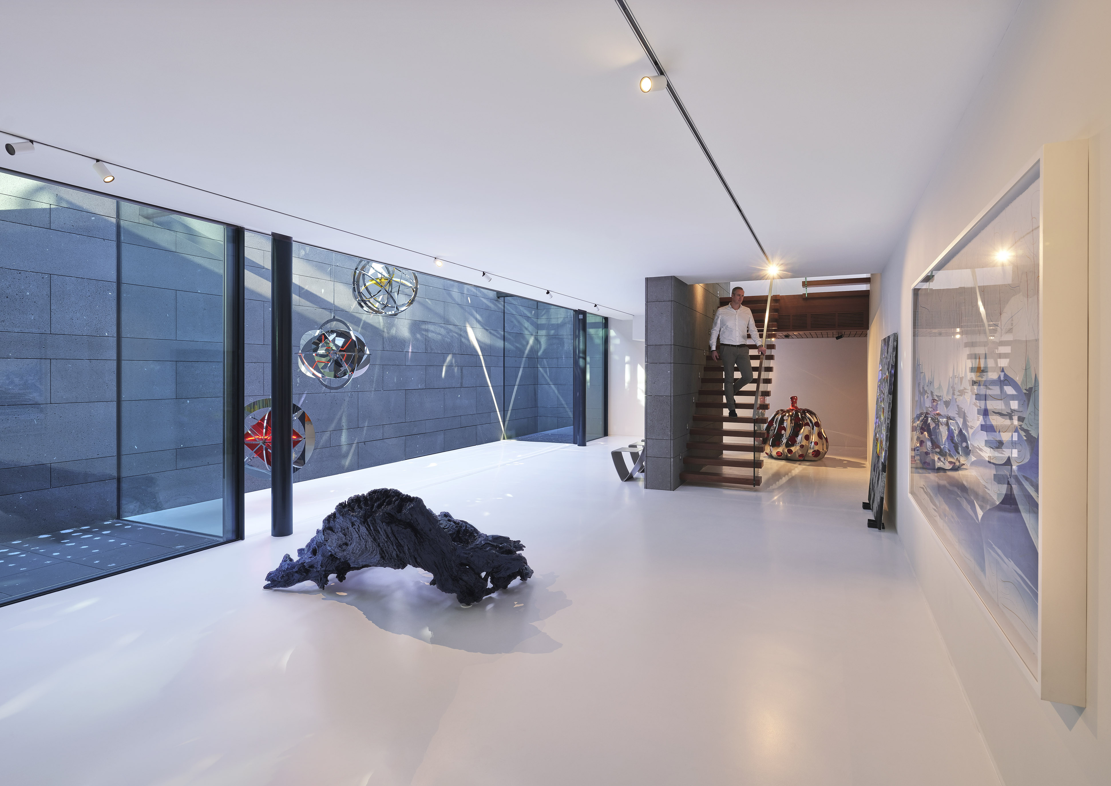 Ondergrondse complexiteit: een artist-in-residence combineert een ondergrondse tentoonstellingsruimte voor kunstobjecten en videokunst met een tijdelijke woonlocatie voor een kunstenaar. Alleen de geheel gerenoveerde historische villa en een glazen volume geven een zichtbare serene uiting aan een technisch complexe opgave.