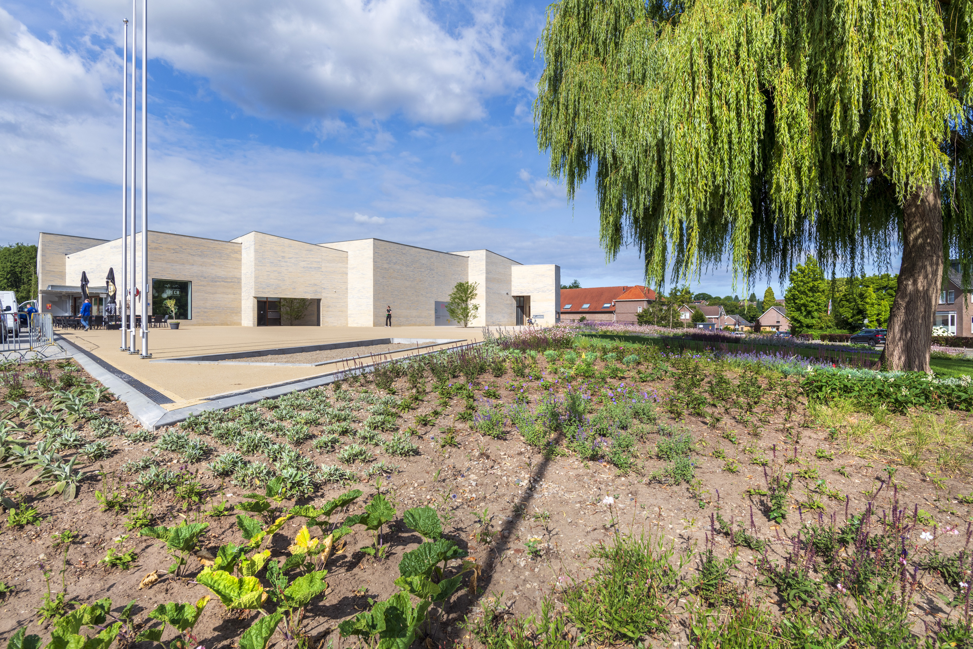 De BMV ligt langs de sportvelden midden in een nieuwe ecologische bloementuin met hoge diversiteit aan bloeiende vaste planten, en een speelbos voor de school aan het Plateau. Parkeren vindt uit het zicht plaats in een nieuwe parkeerstraat met veilige kiss & ride zone voor sport en onderwijs. Waterbuffering in een wadi en kratten onder de halfopen van de parkeervakken behoeden voor overlast bij felle buien. Nestkasten, bijenhotels en kikkerpoel versterken de biodiversiteit en brengen de jonge generatie op speelse wijze in contact met de natuur. Het buurtplein met entreepatio en gezondheidscentrum ligt herkenbaar aan de straat pal tegenover het zorgcentrum dat zo wordt geïntegreerd in de BMV. Zo versterkt de BMV niet alleen de leefbaarheid van de directe omgeving maar van het hele dorp Spaubeek.