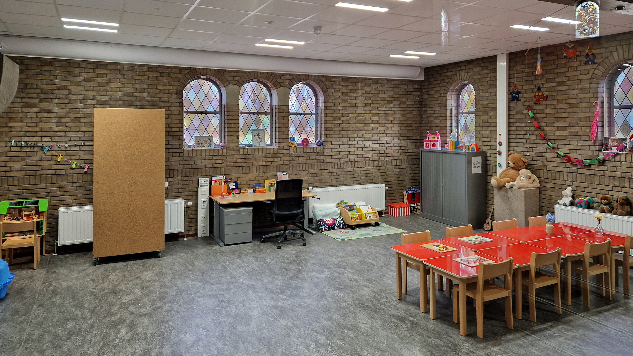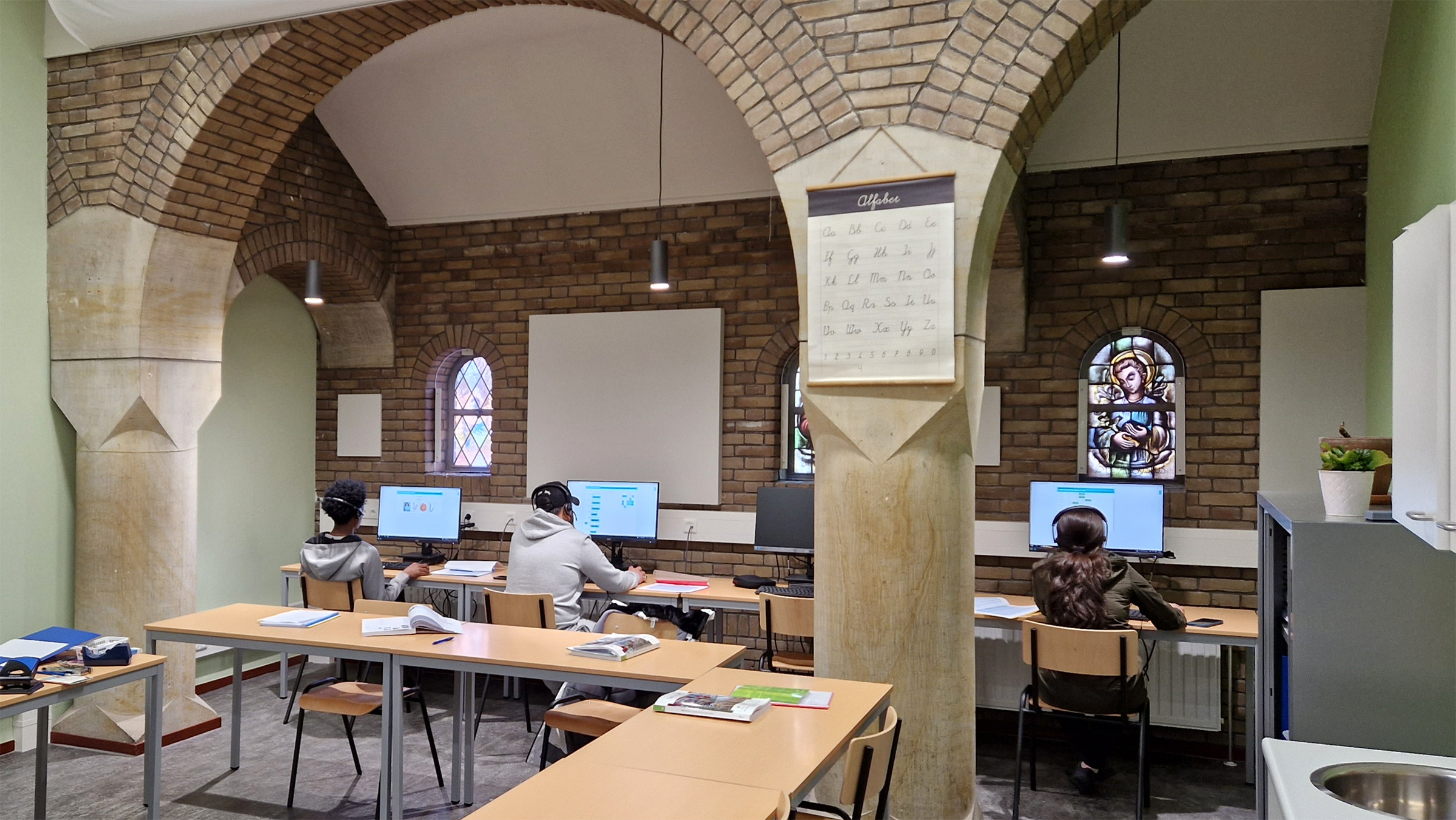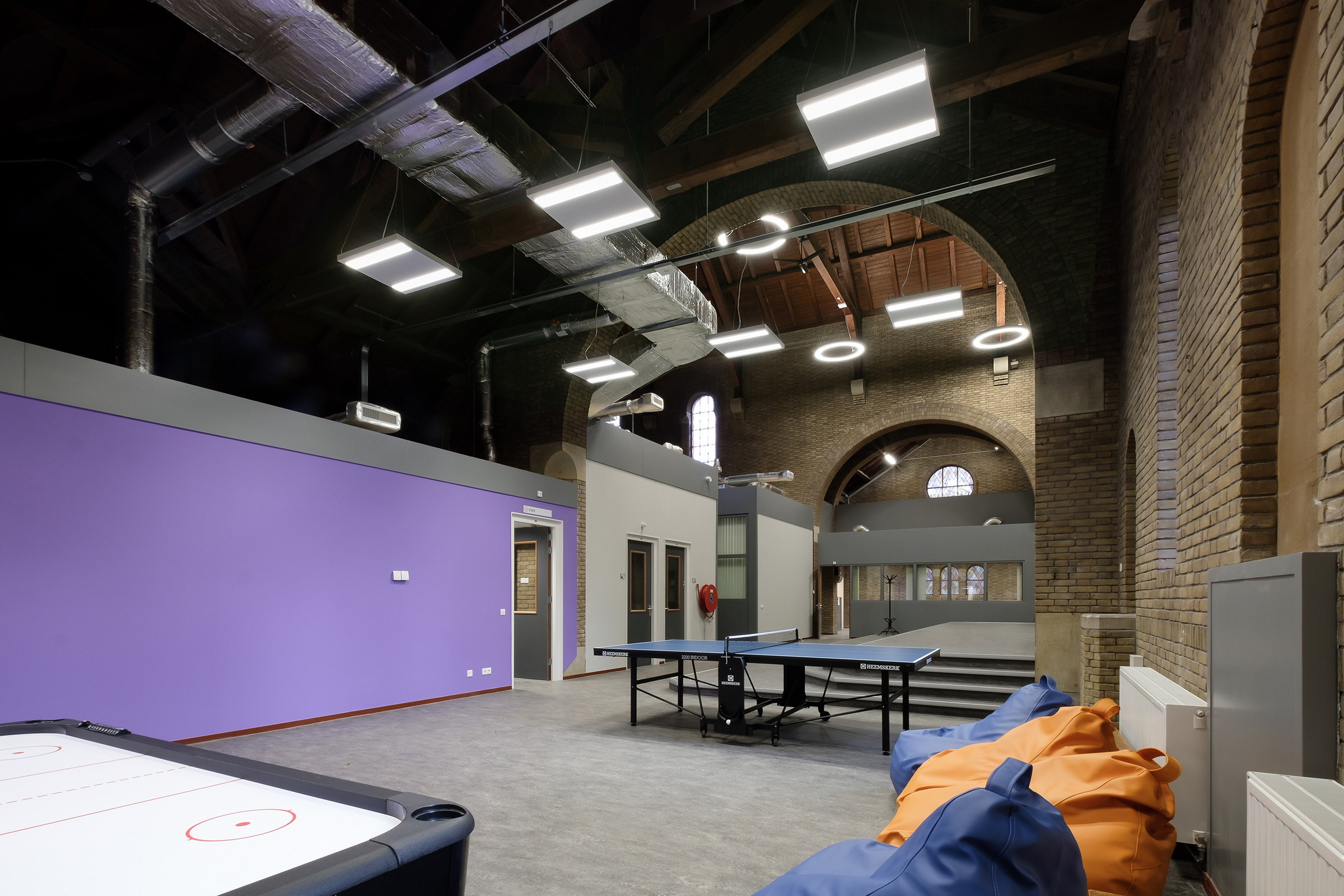 De Kapel op het terrein is ingericht als gemeenschappelijke ruimte, met een rijke mix van functies. Overdags is er een kinderopvang en wordt er Nederlands gedoceerd. Ook is er een loket van Vluchtelingenwerk Nederland. ‘s Avonds kun je naast het voormalige altaar tafeltennissen of loungen.