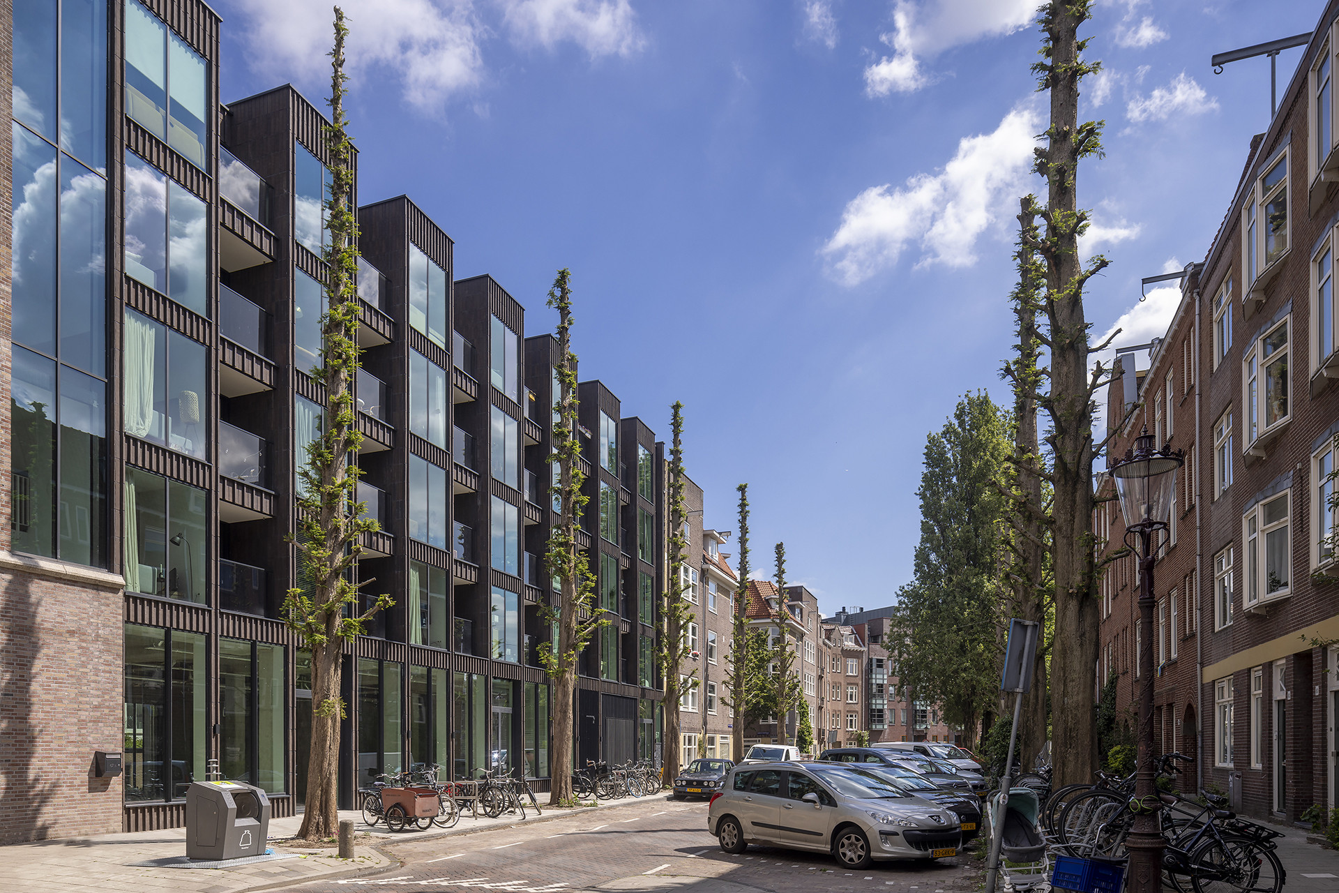 Het woongebouw aan de Karel du Jardinstraat wordt gekenmerkt door twee fases: transformatie van het oude stadsdeelkantoor naar woningen (De Karel 1.0) en een nieuwbouwgedeelte waarmee de straatwand opgevuld is (De Karel 2.0). De woningen zijn transparant en worden gekenmerkt door veel licht. Er is een prachtig collectief dakterras gemaakt waarmee uitzicht wordt geboden over De Pijp. Het dakterras is voor alle bewoners van het complex, hiermee wordt de sociale cohesie tussen de bewoners versterkt. Door de transformatie van kantoor naar woningen en de wandinvulling van de straat wordt de binnenstad op een natuurlijke manier verdicht, iets waar in deze tijd veel vraag naar is. De woningen in De Karel 2.0 zijn ontworpen volgens een 'schaarprincipe', op deze manier zijn alle woningen voorzien van een gevel aan de straat- én aan de tuinzijde. Aan de straatzijde wordt geleefd, hier bevinden zich alle woonkamers en met aangrenzende buitenruimtes. Aan de tuinzijde heerst er rust en zijn de slaapkamers gesitueerd. Op deze manier is er ondanks de beperkte woninggrootte van de appartementen toch een luxe woning gecreëerd waarbij de woonbeleving centraal staat.